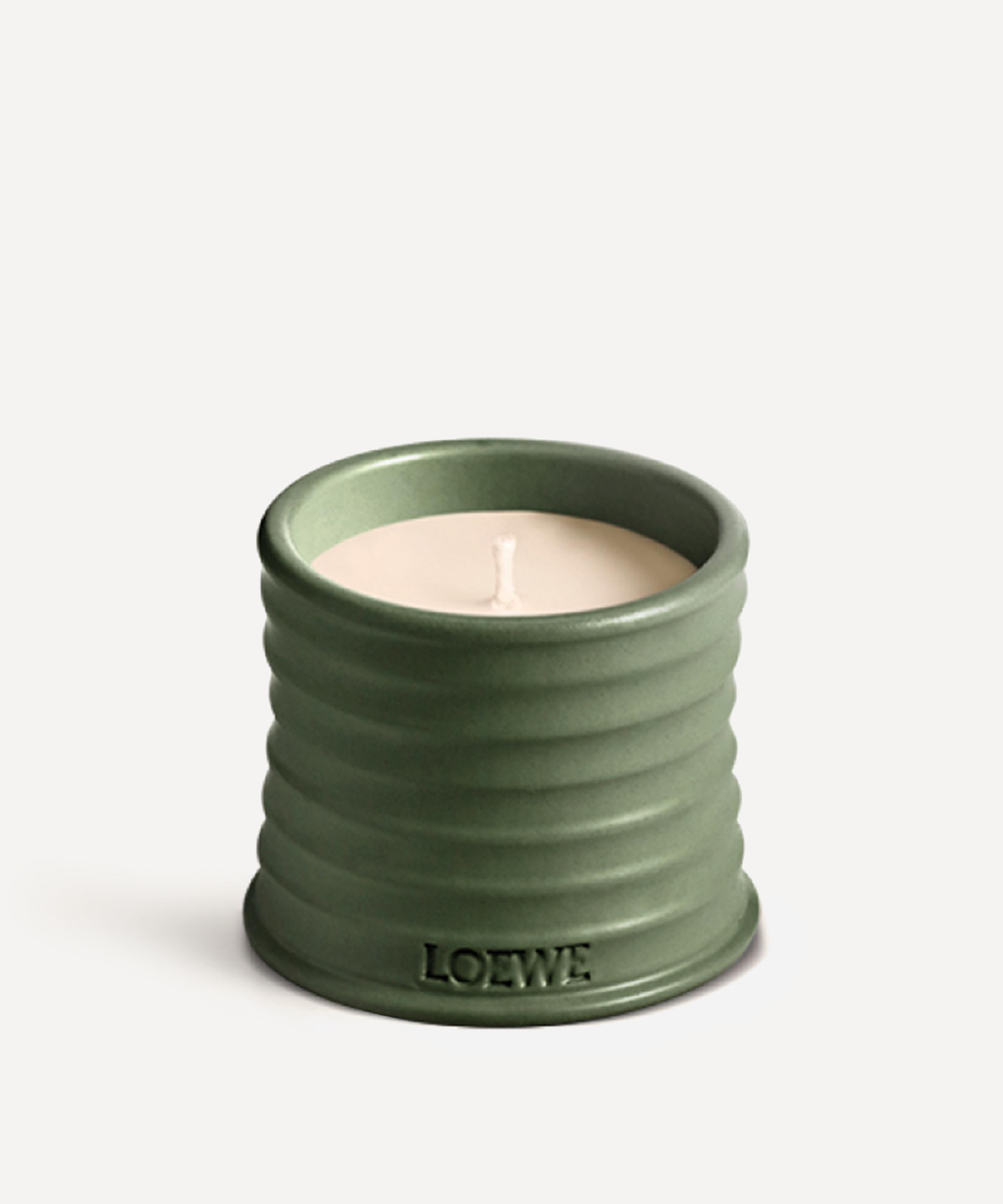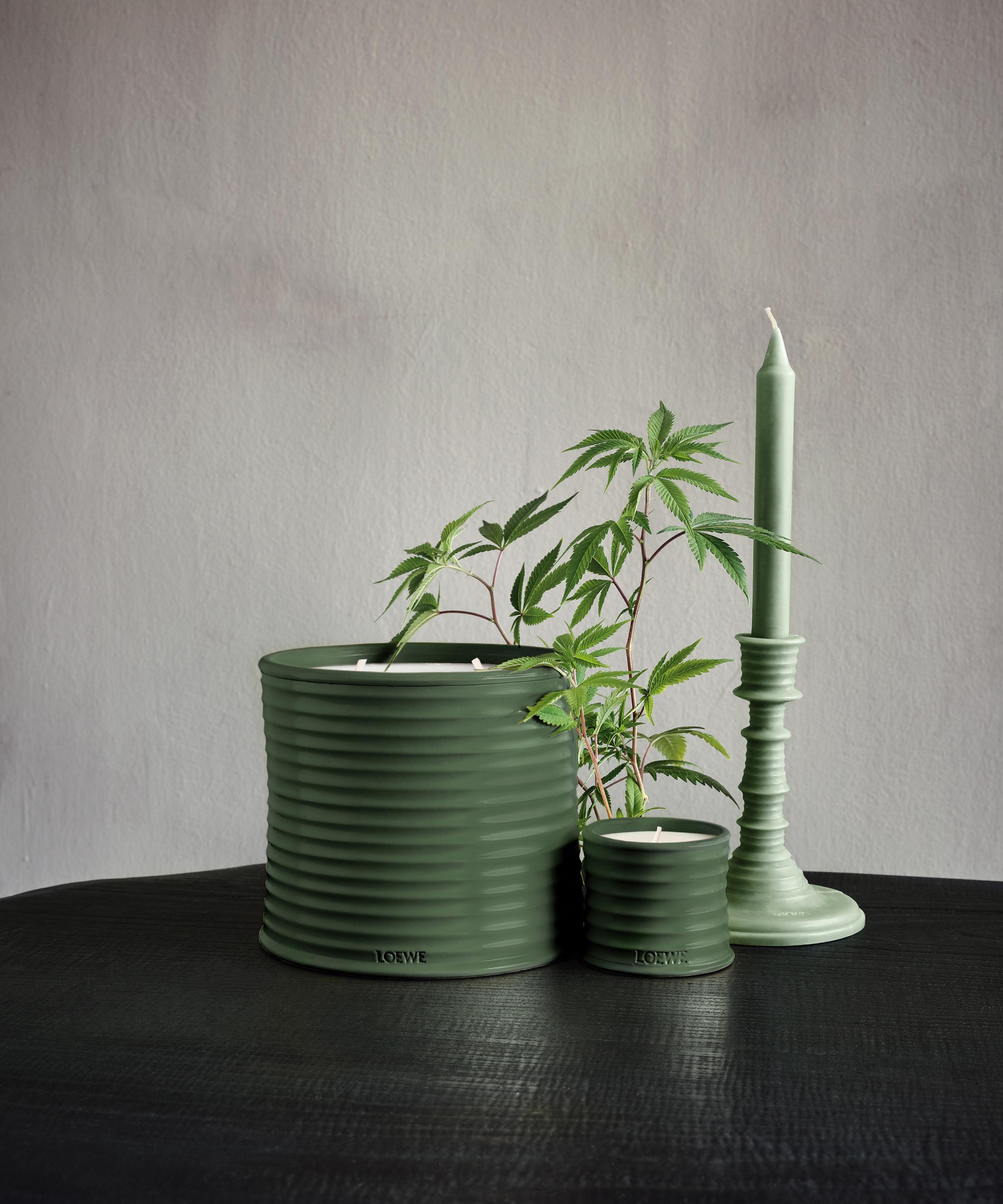 This small Scent of Marihuana Candle from Loewe is crafted from natural vegetable wax, and presented in an olive green-glazed, ribbed terracotta earthenware vessel.