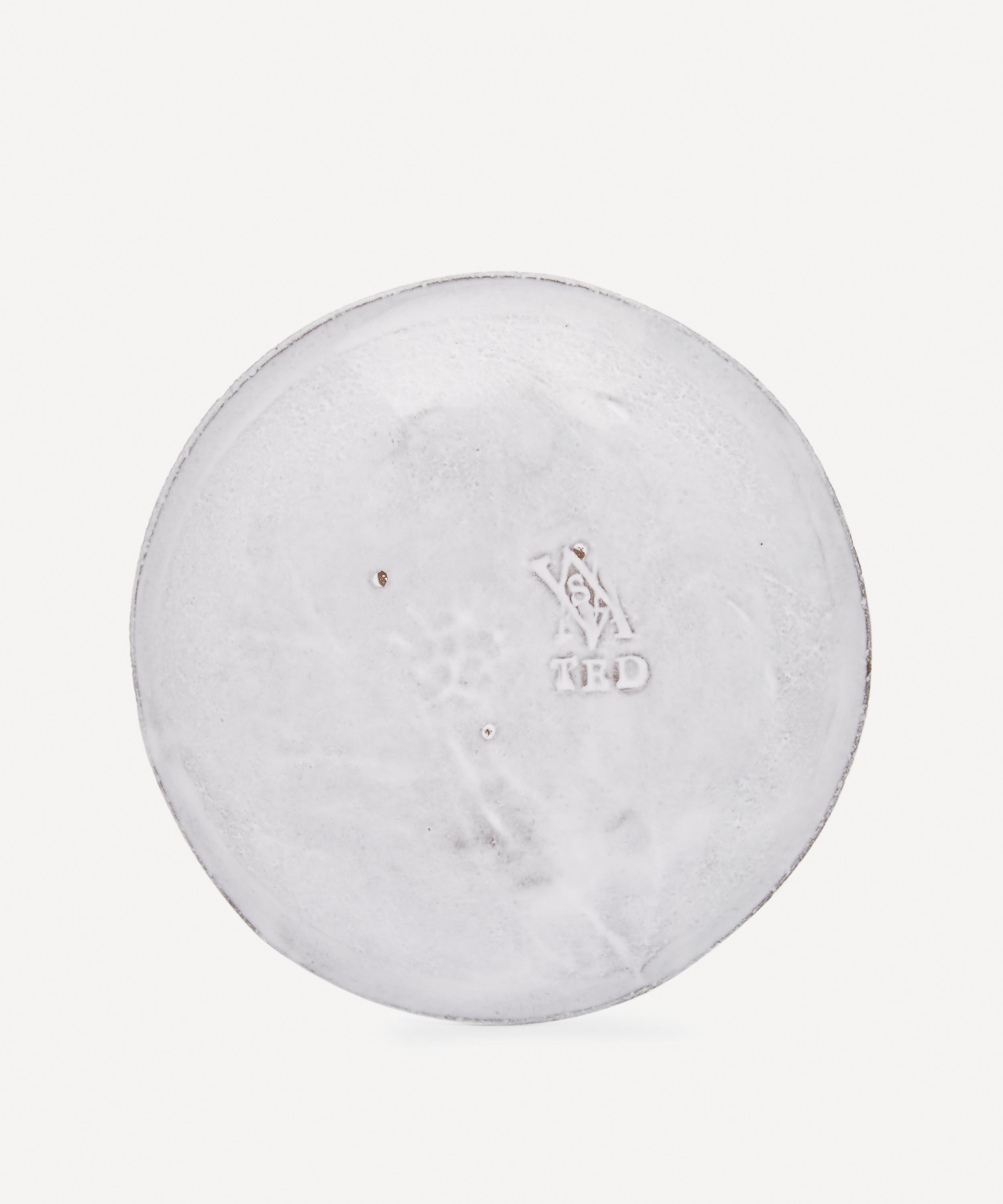 Votary of pre-industrial fabrication, Astier de Villatte is celebrated for being the one and only studio in Paris to hold and harbour the traditions of artisanal ceramic production. Restoring the ancestral systems of moulding and stamping, the Setsuko plate is made using handcrafting techniques from the Middle Ages which involve moulding a handmade sheet of clay, double firing the ‘biscuit’ piece and glazing the product in white enamel – a lengthy process that involves a drying time of up to one month. Characterised by subtle indentations and a motif by Japanese painter, Setsuko Klossowska de Rola, the plate is engraved with the brand’s signature crest - depicting an interlacing A & V - alongside the initials of one of the 40 master artisans who created it. Each handmade piece tells a beautiful story, it romances and imparts a sense of nostalgia into its owner. Arrange with other glazed bowls and plates in the collection to breathe an air of authenticity into your dining collection.