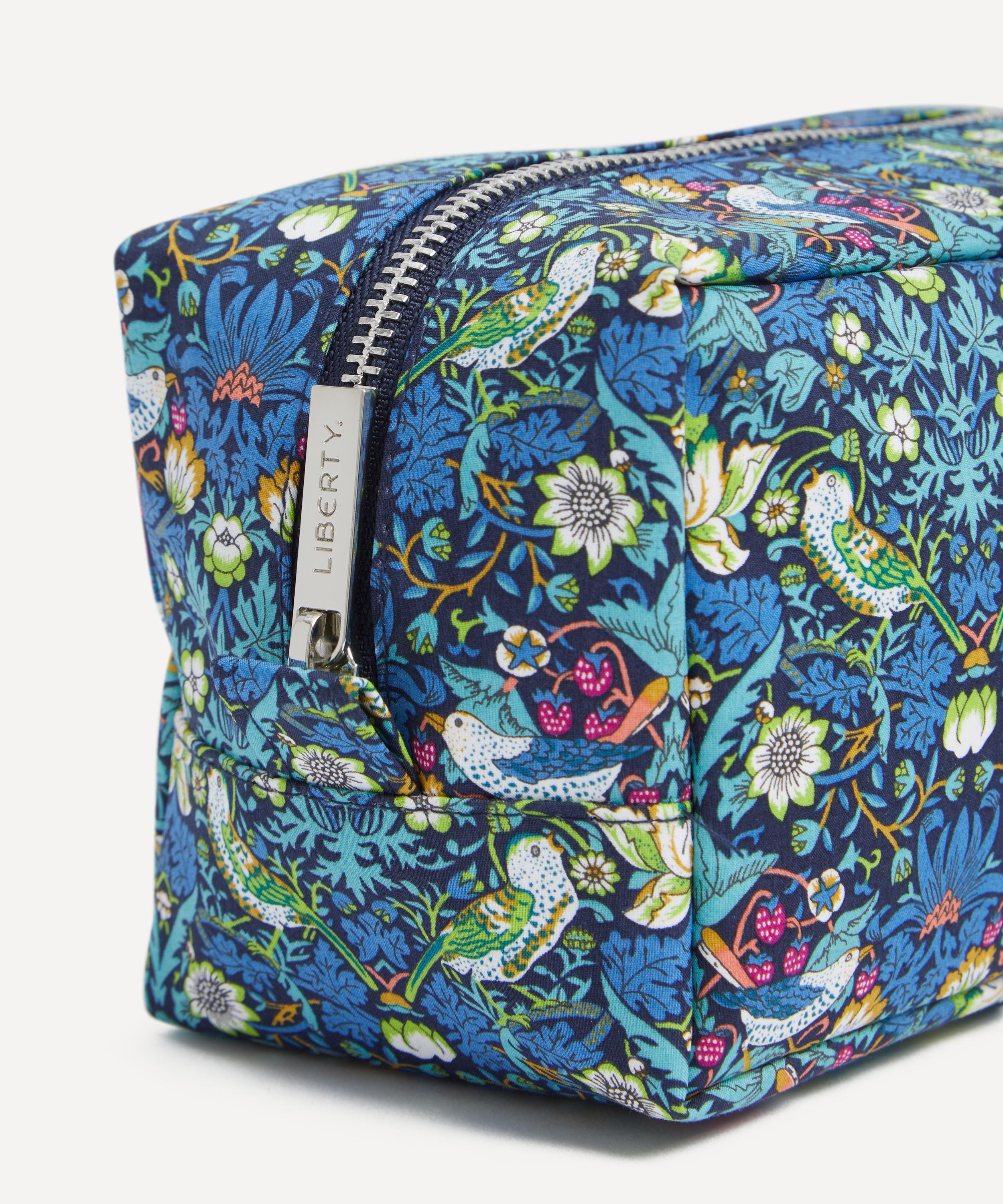 Elevate your beauty regimen and keep cosmetics in check with our Liberty small wash bag in Strawberry Thief print – a must-have for seasoned travellers and beauty buffs alike.