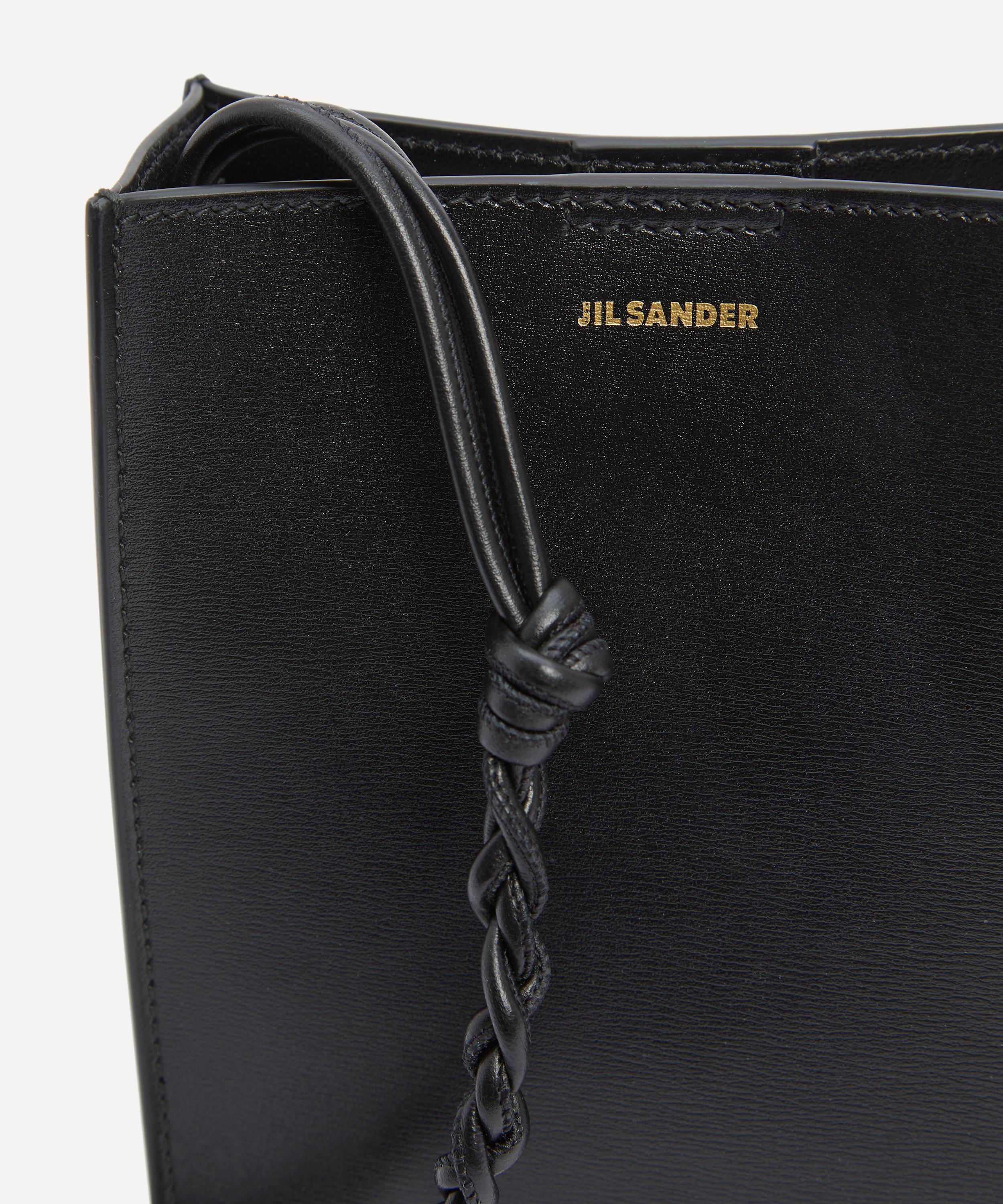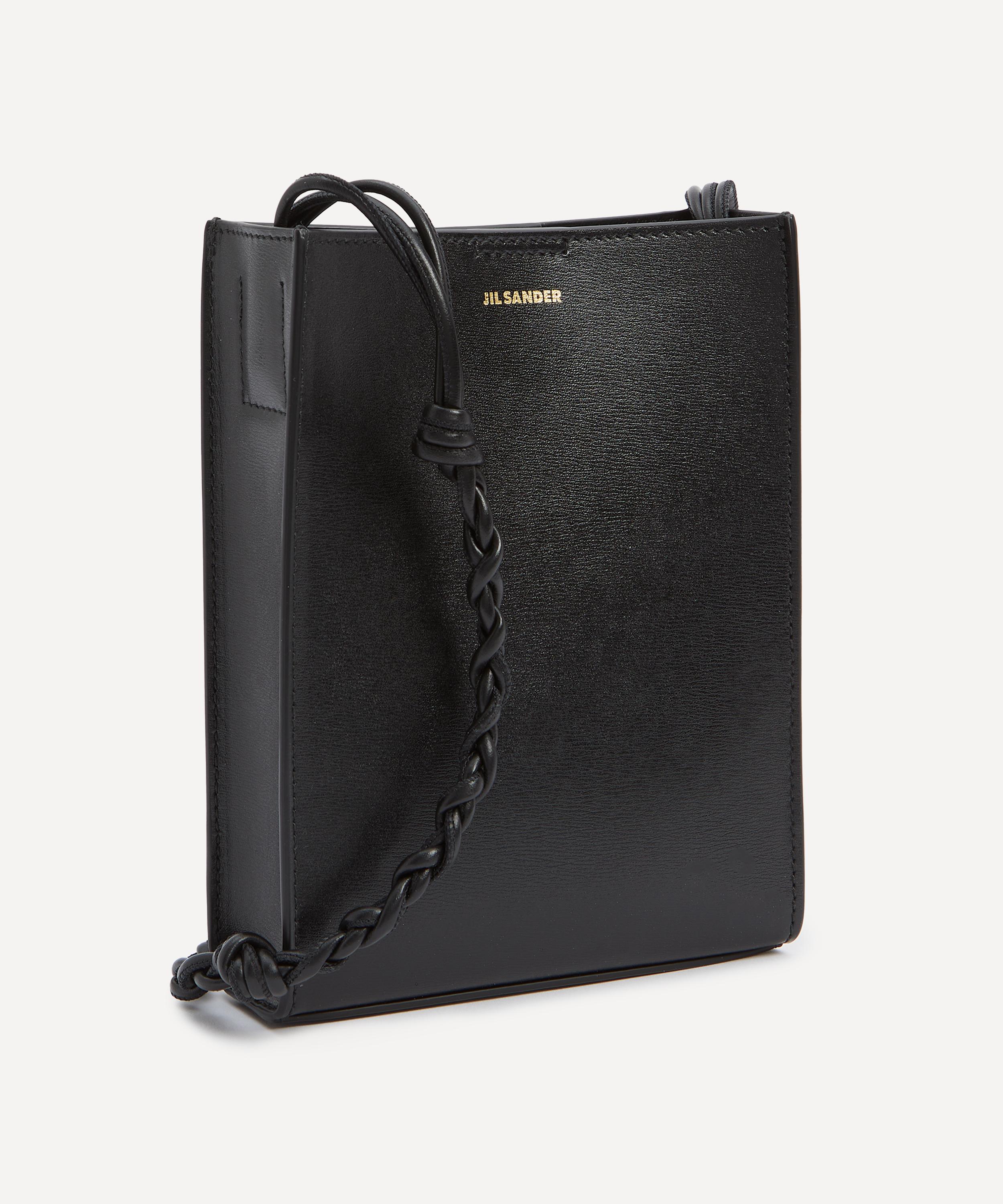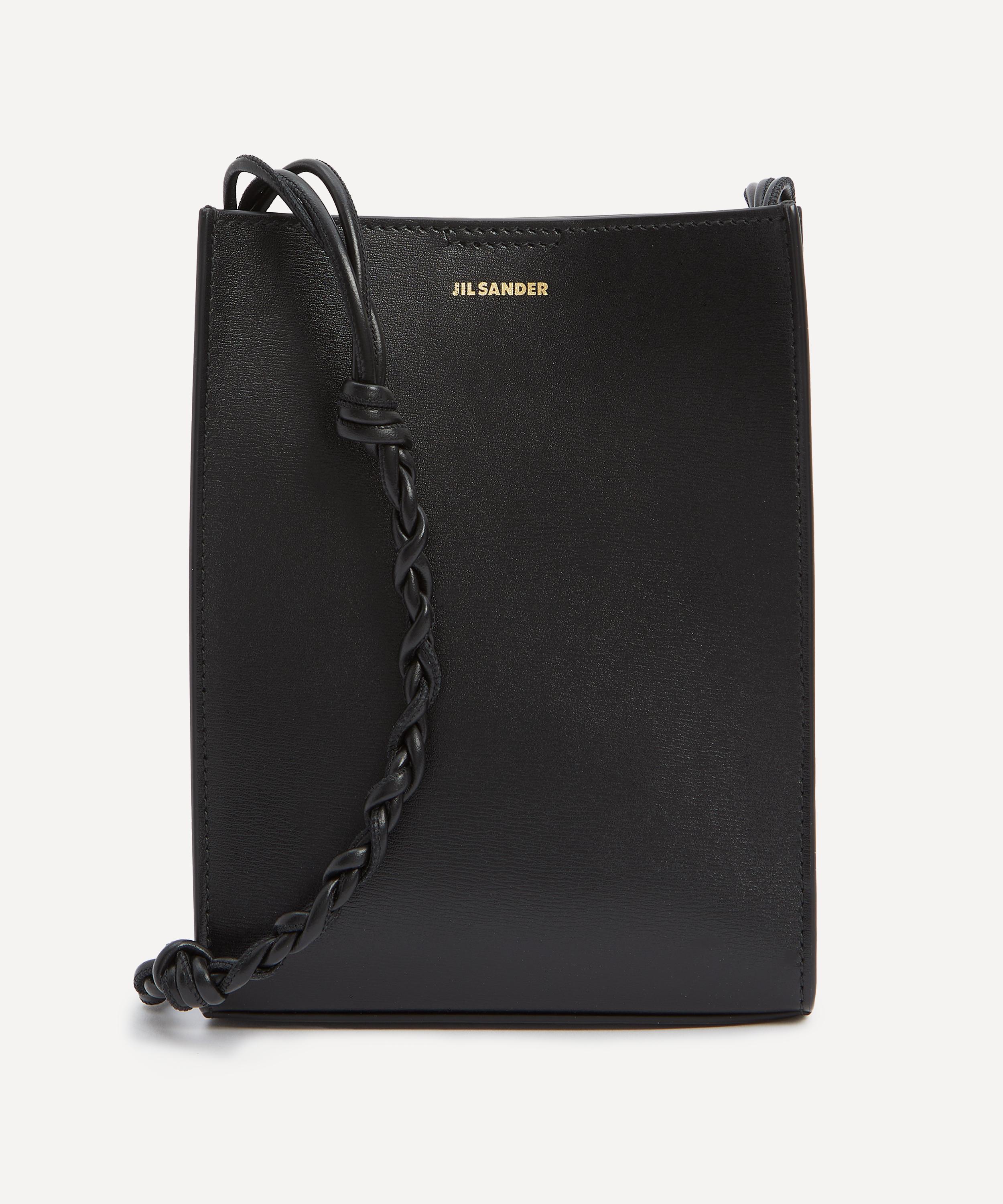 Master sophisticated minimalism with the Tangle Crossbody Bag from Jil Sander. Crafted from smooth calf leather with a nappa lining, it features a rectangular silhouette in a sleek, black colourway. Equipped with a spacious main compartment and magnetic closure, it fits small essentials like your phone, keys, and wallet. It’s finished with foil embossed branding to the front and a hand-knotted strap to be worn over the shoulder, or crossbody.