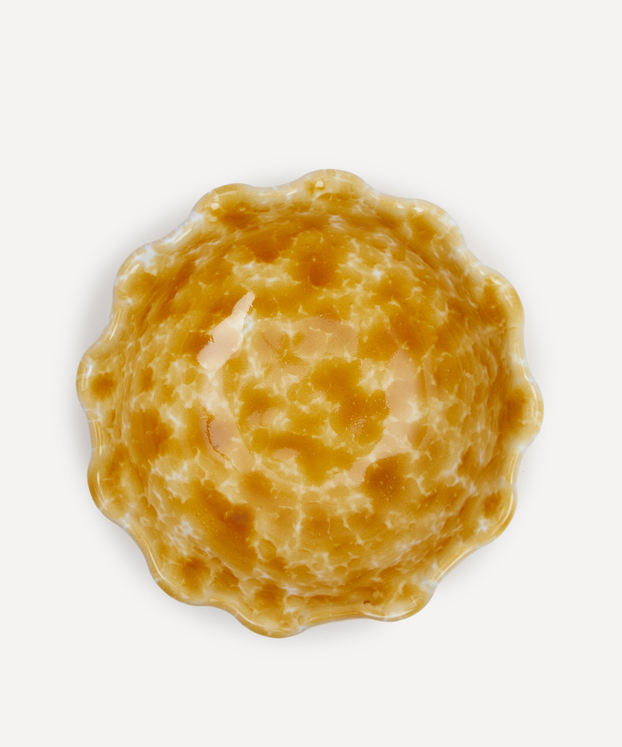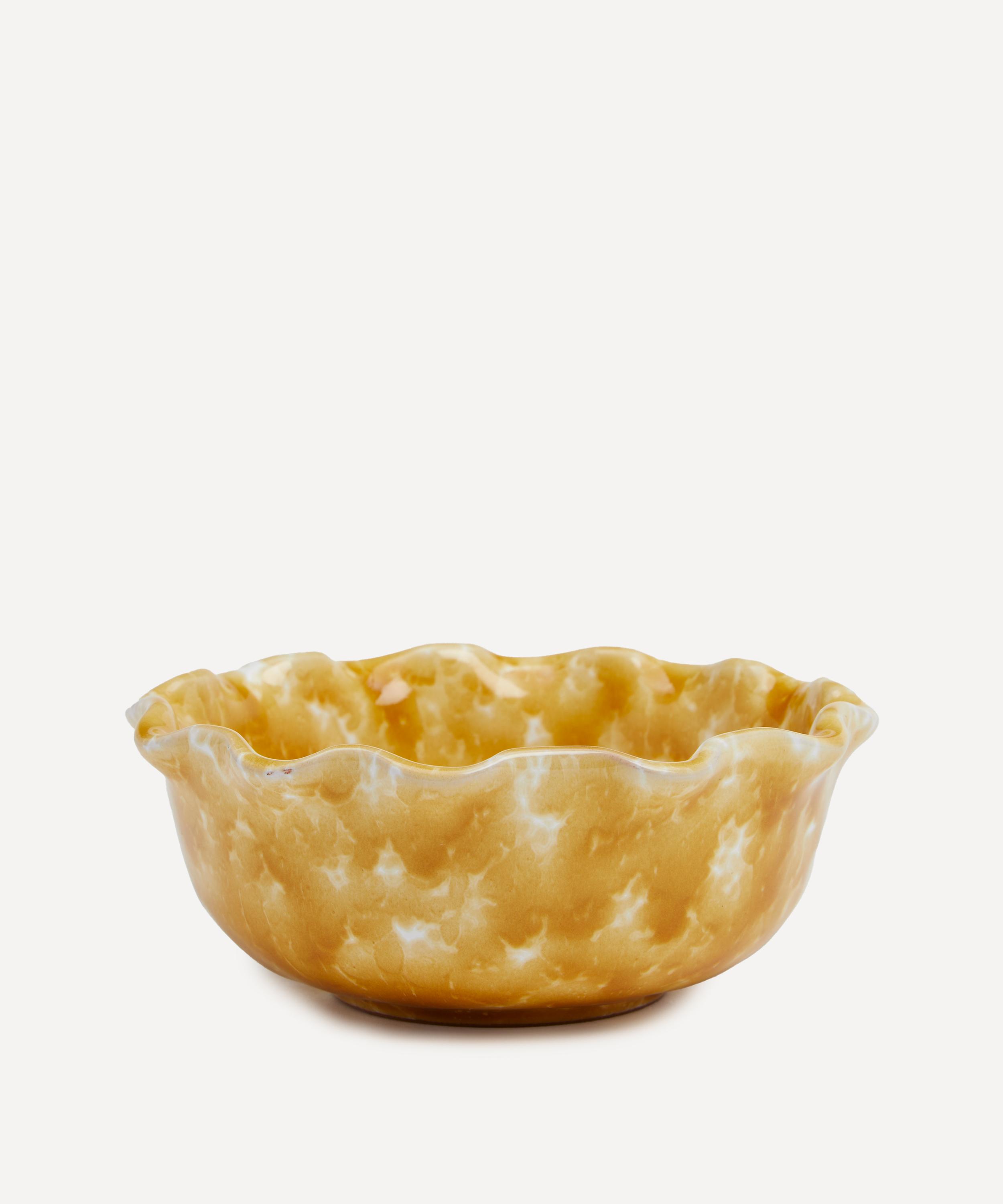 Reflecting the sun-soaked palette of the southern Italian region where it was crafted, this bowl presents an abstract splatter design in a bright, bold hue, spanning its silhouette. Traditionally handmade and glazed in a nod to classic ceramic artistry, its waved edges will ensure it stands out as the focal point of your kitchen countertop.