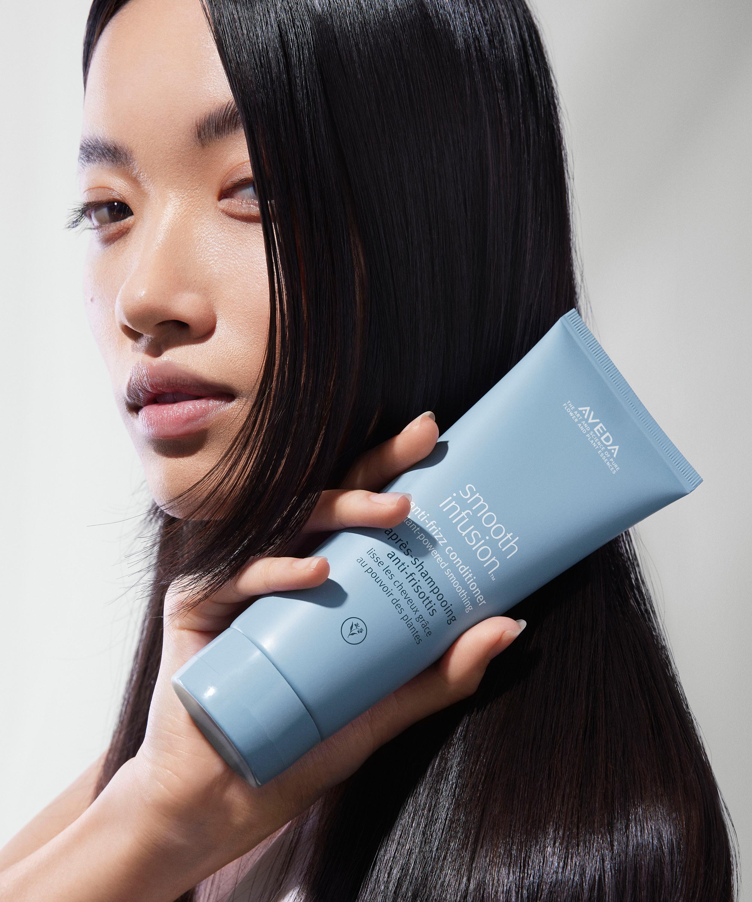 Aveda’s Smooth Infusion™ Anti-Frizz Conditioner is formulated to gently condition, moisturise and boost shine while defending against humidity.