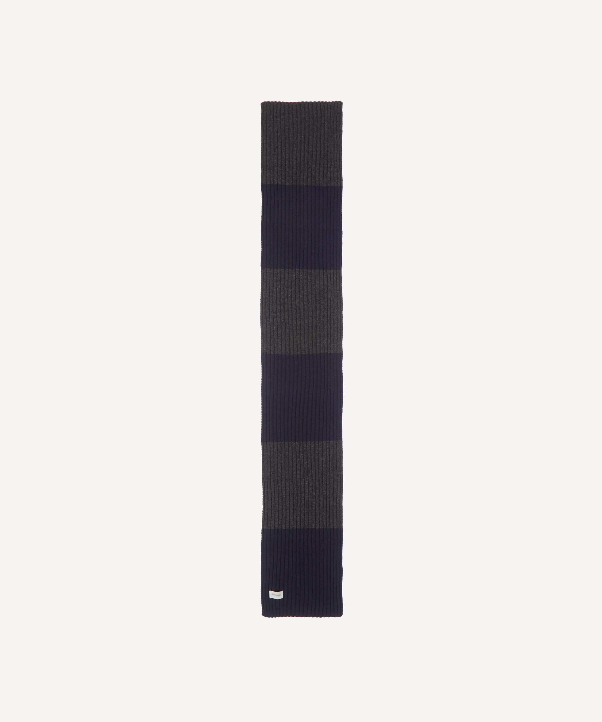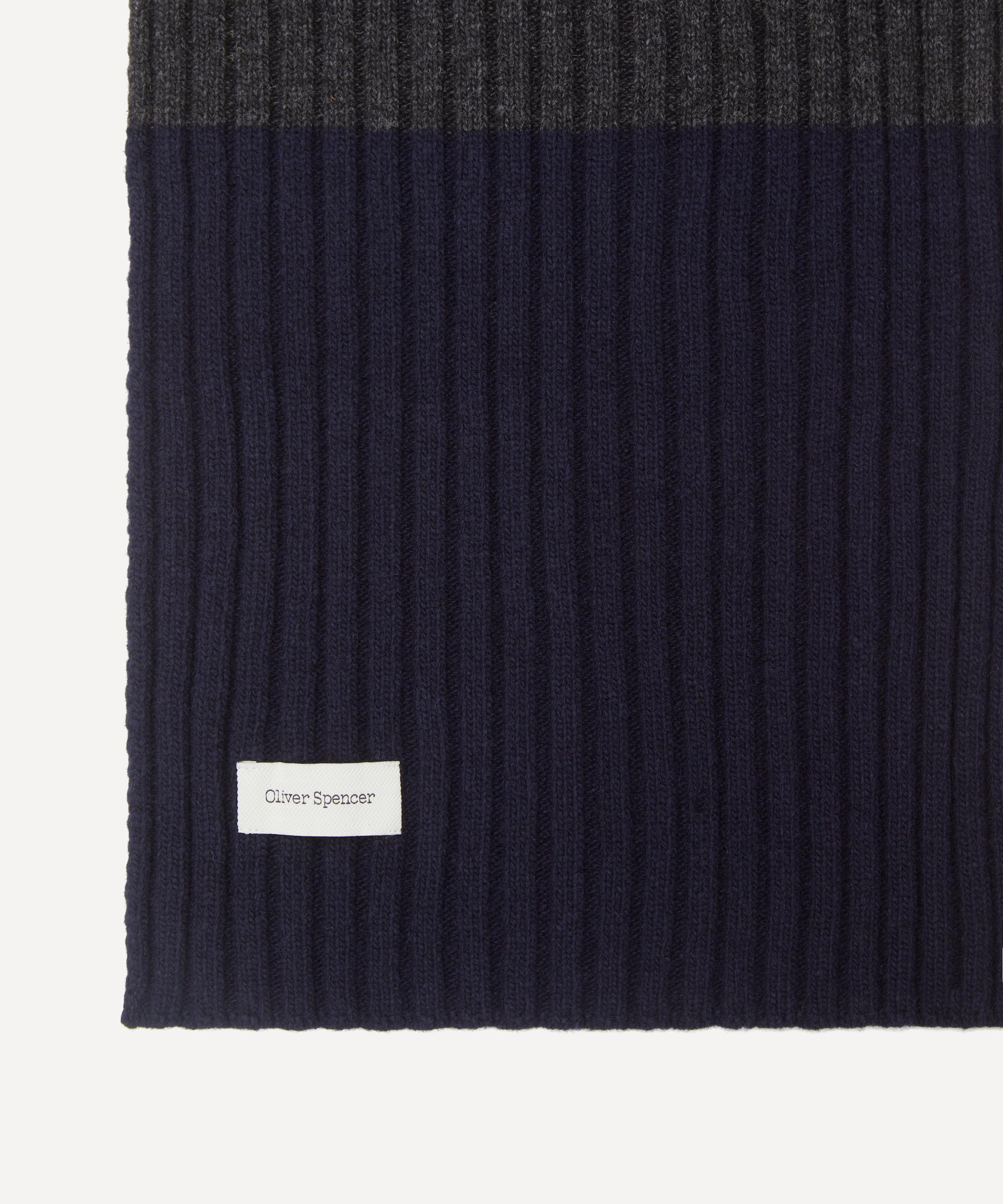 Crafted from a luxurious and extra fine heavy-gauge wool, this two-tone striped scarf features a double-layer ribbed construction with an Oliver Spencer logo in the bottom corner. Wrap it around the neck to lock in warmth this winter.