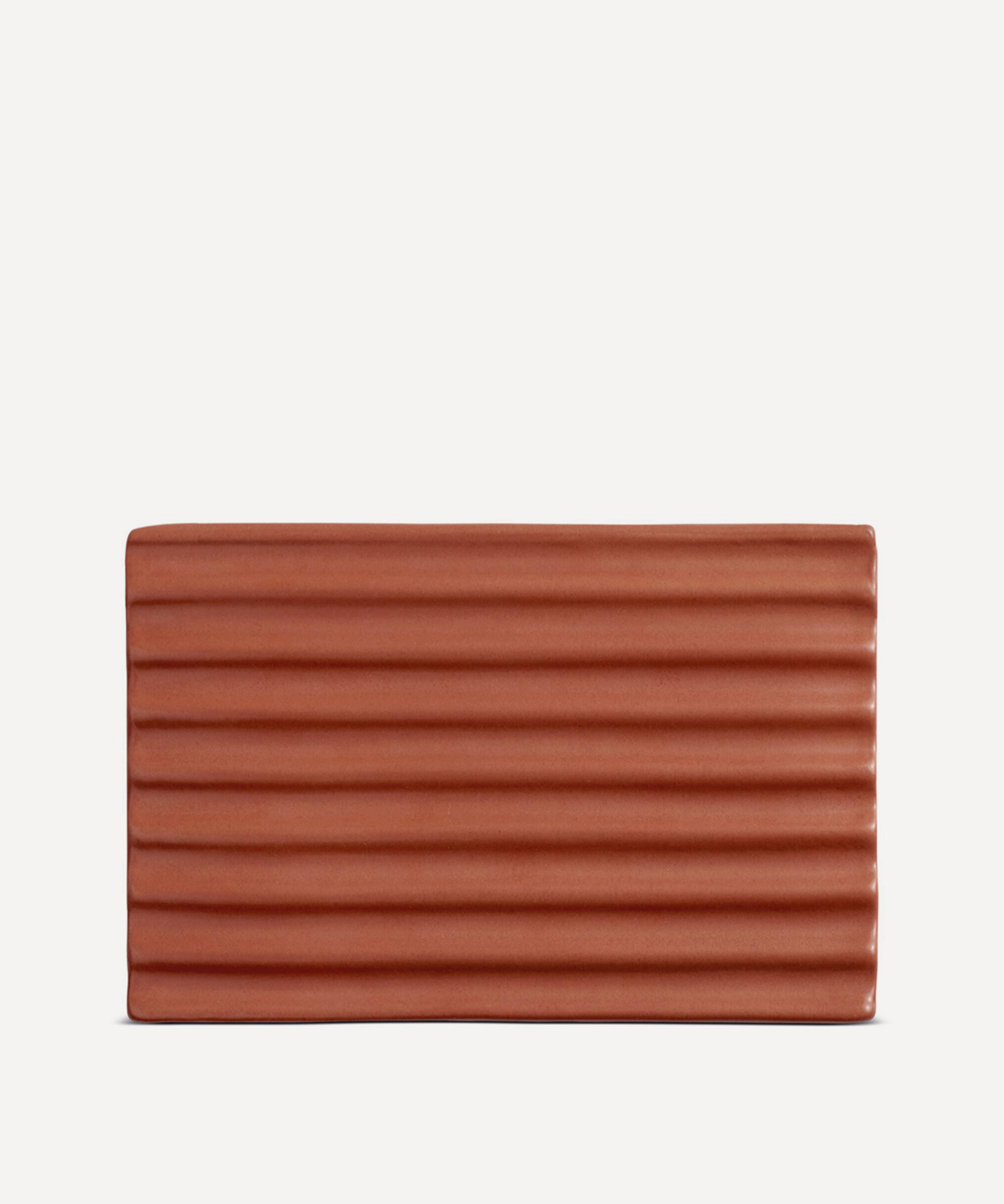 Featuring a terracotta ceramic silhouette, this soap base provides the ideal foundation to hold Loewe’s Home Scents Soap. With its ribbed design, it delivers water drainage whilst echoing the appearance of classic washboards – elevating any living space with timeless charm.