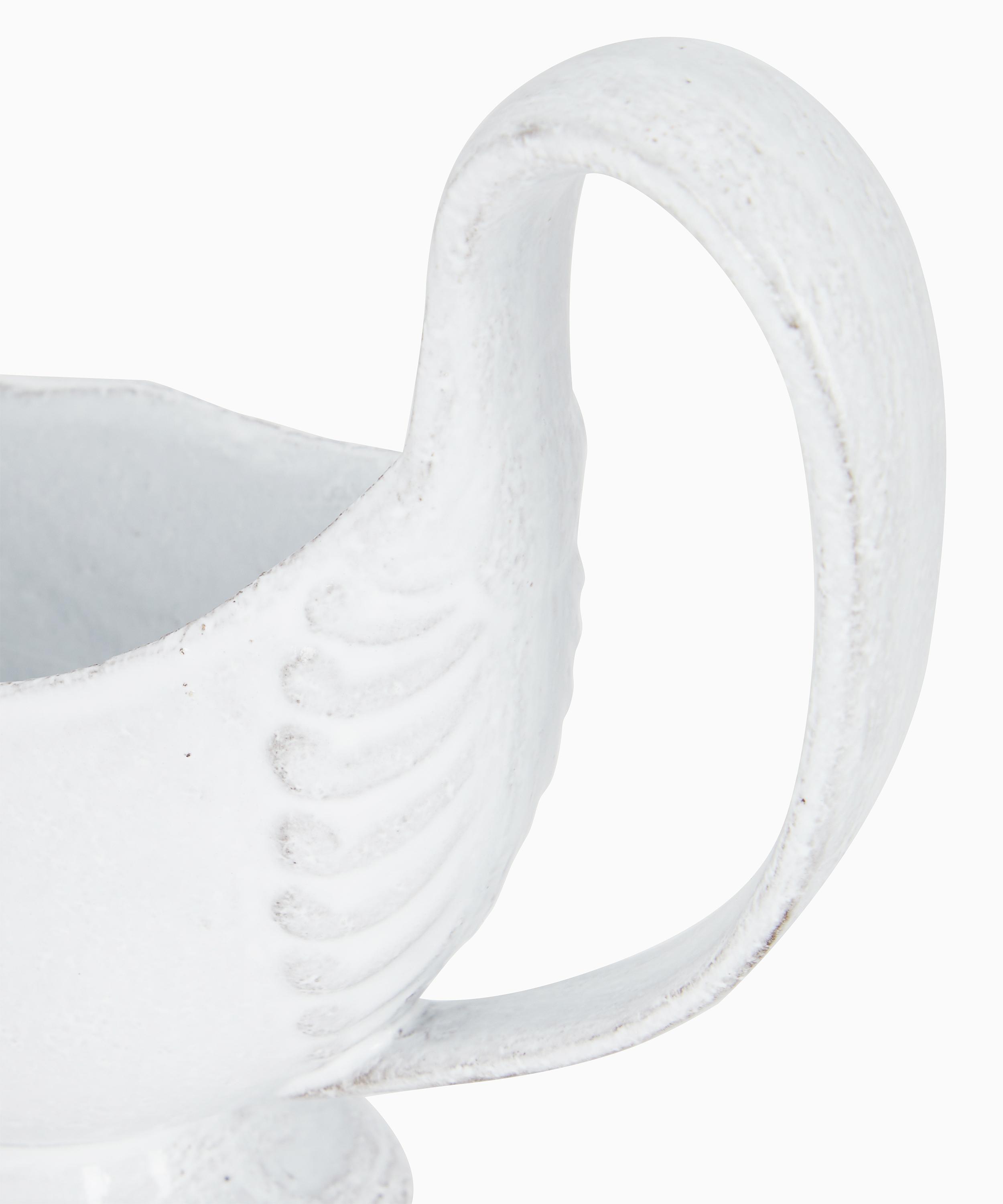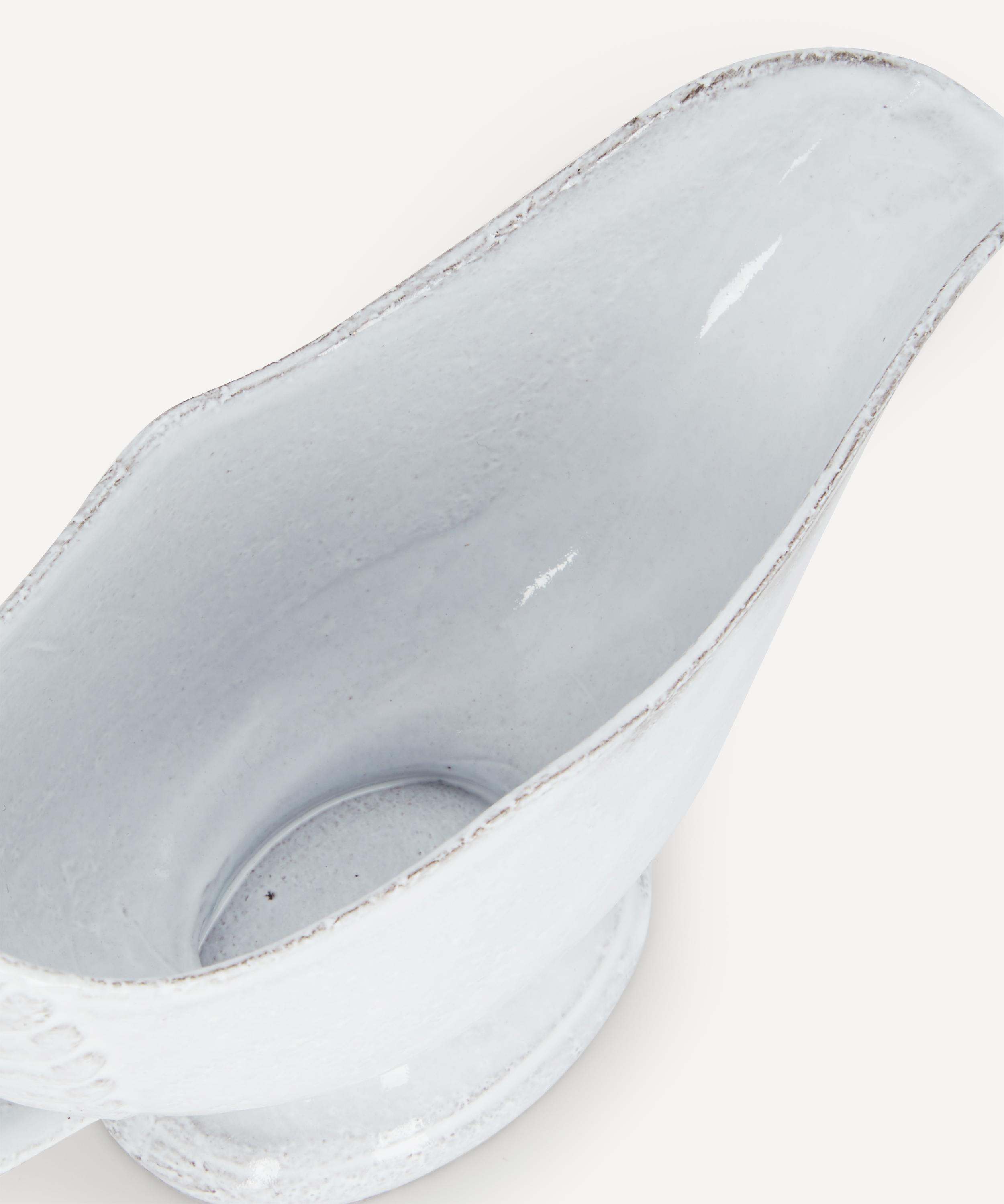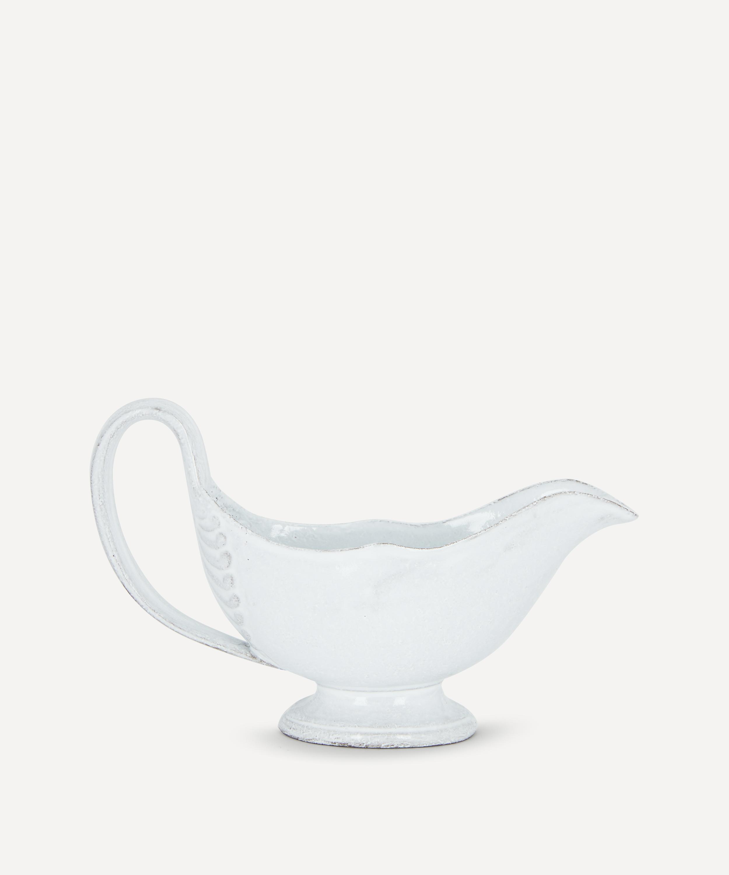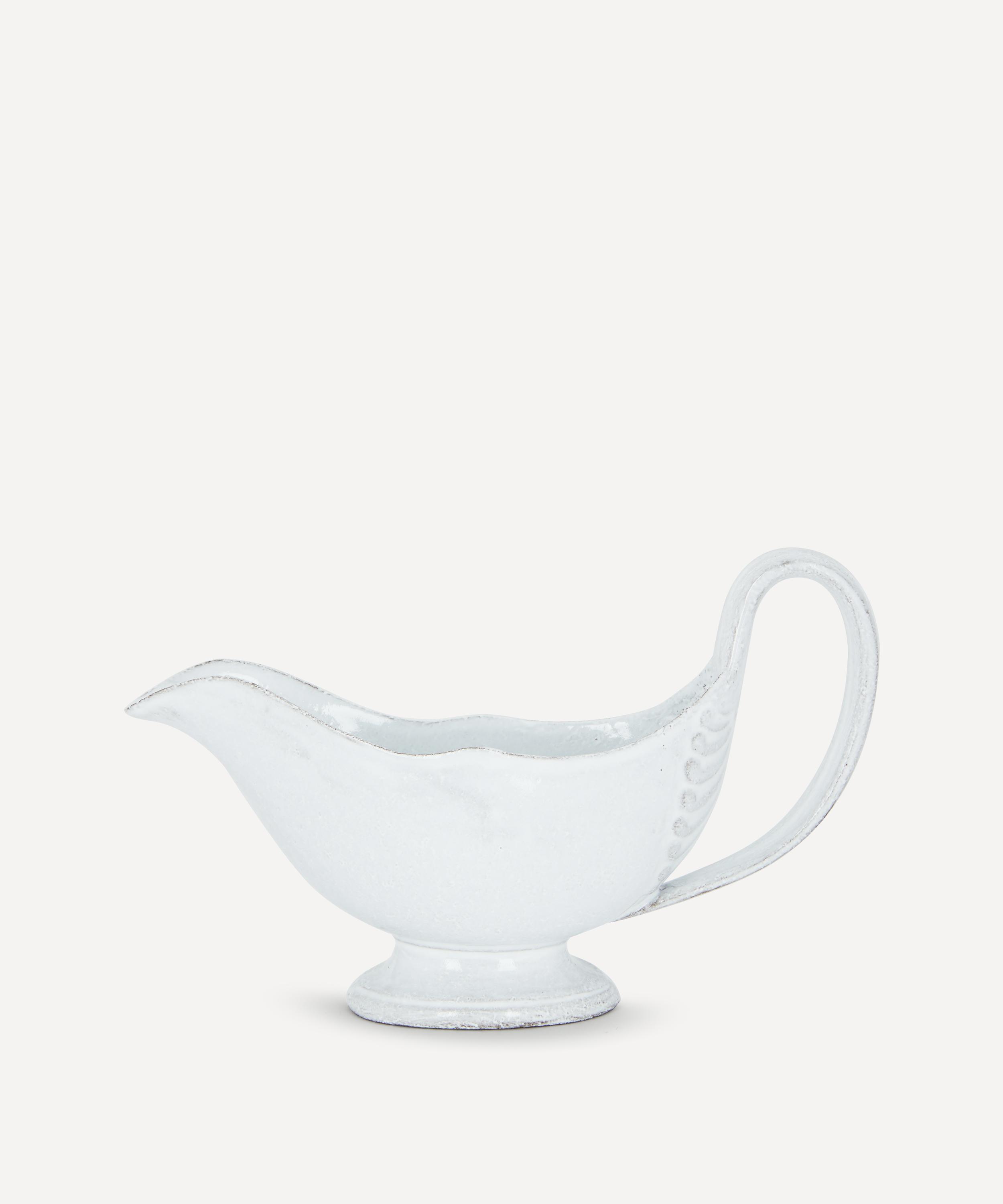 Votary of pre-industrial fabrication, Astier de Villatte is celebrated for being the one and only studio in Paris to hold and harbour the traditions of artisanal ceramic production. Restoring the ancestral systems of moulding and stamping, this sauce boat is made using techniques from the Middle Ages which involve moulding a sheet of handmade clay, double firing the ‘biscuit’ piece and glazing the product in white enamel – a lengthy process that requires a drying time of up to one month. Characterised by an opulently curved handle with an elegant base, the sauce boat is engraved with the brand’s signature crest - depicting an interlacing A & V - alongside the initials of one of the 40 master artisans who created it. Arrange with other serveware from the Sobre collection to breathe an air of authenticity into your table setting.