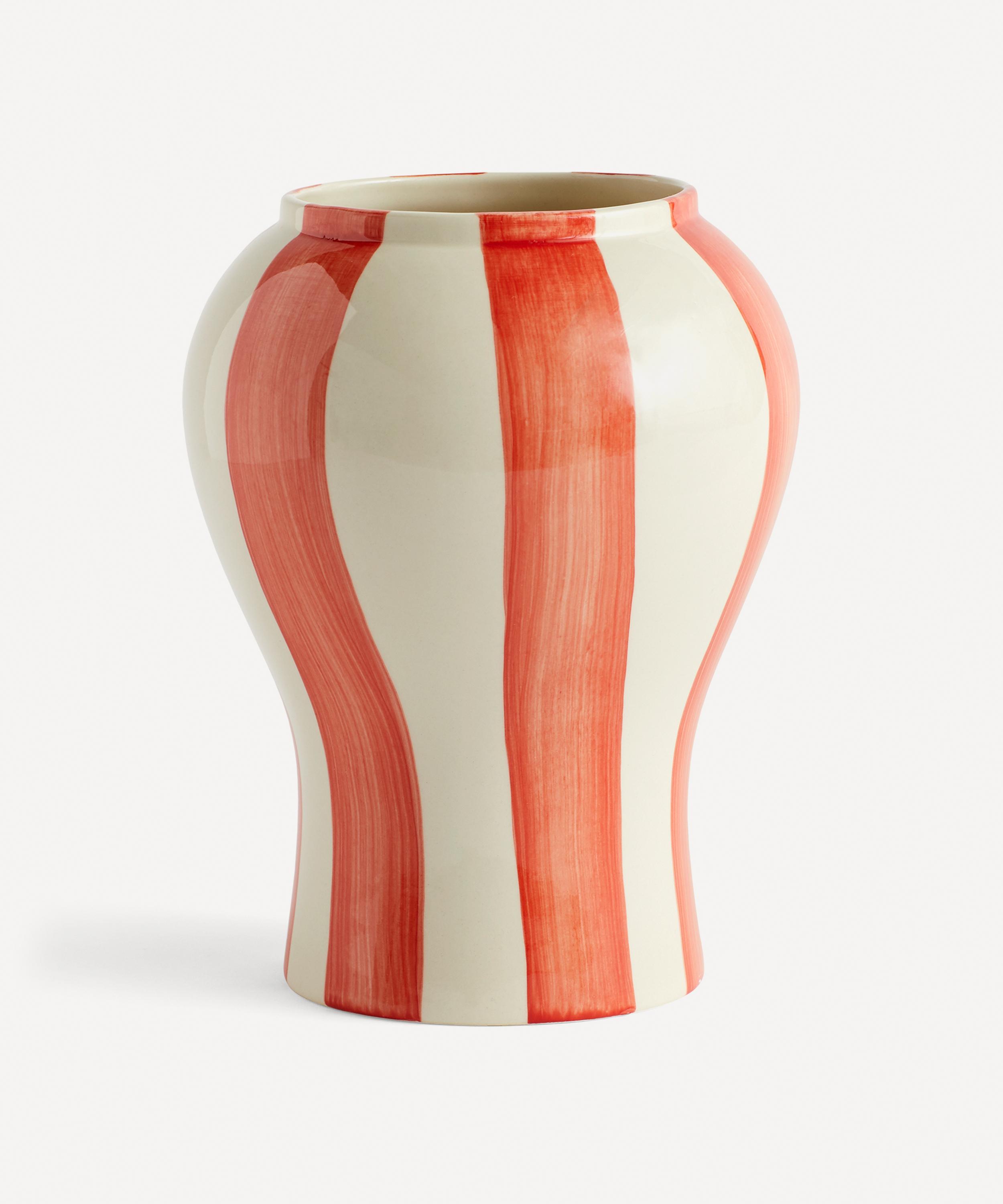 Designed in collaboration with artist Laila Gohar, this small stoneware piece has a curved silhouette with plenty of space to display flowers or store kitchen utensils. The cheerful red stripes are hand-painted, giving each vase a bespoke feel.