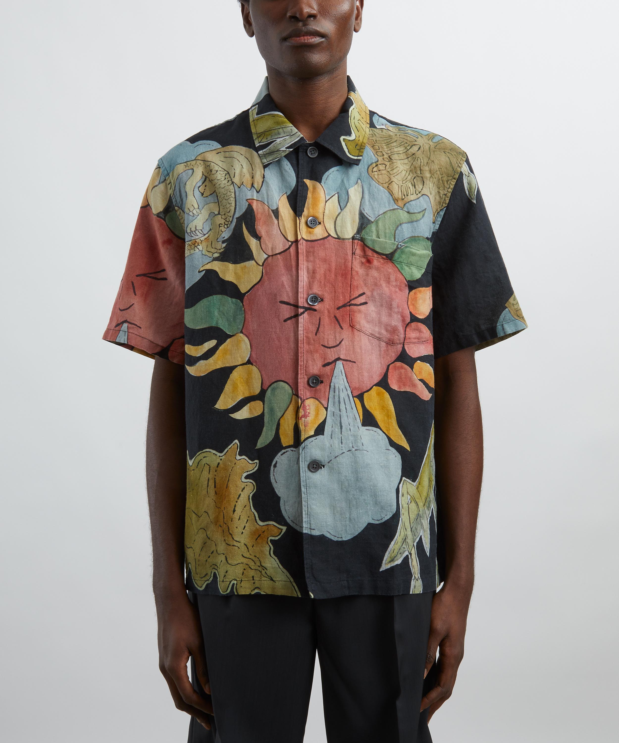 Crafted from a lightweight linen and cotton blend, this statement shirt is brought to life with the vibrant Solar Power print, adding a burst of energy to your wardrobe. Designed for a relaxed, boxy fit with short sleeves and a classic collar, a single patch pocket to the chest completes the piece.