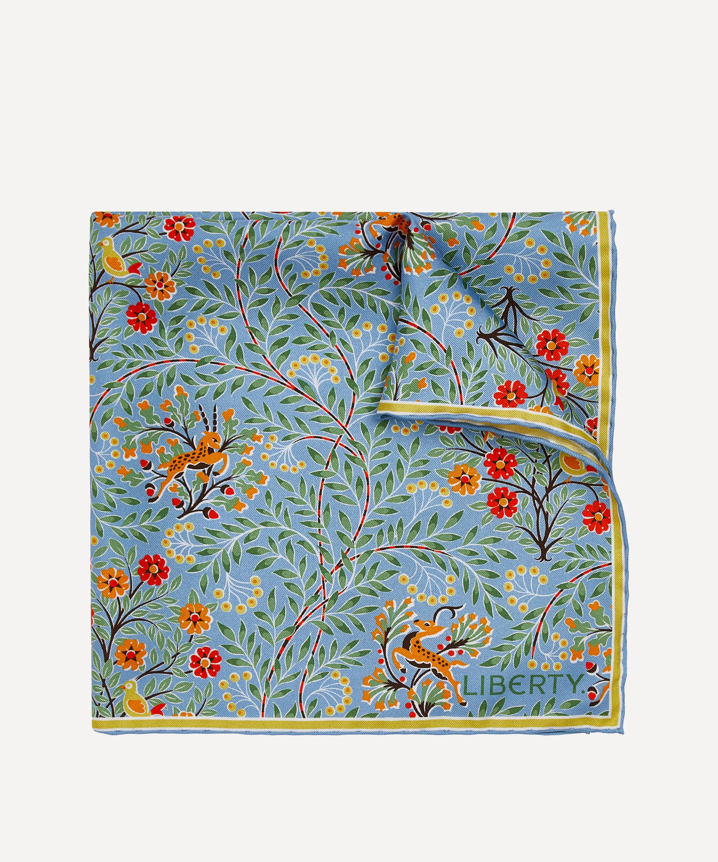 The Sonny's Tree pocket square features an archival Liberty design, made and printed on silk by experts in England – a celebration of our long-standing love affair with British talent and style.
