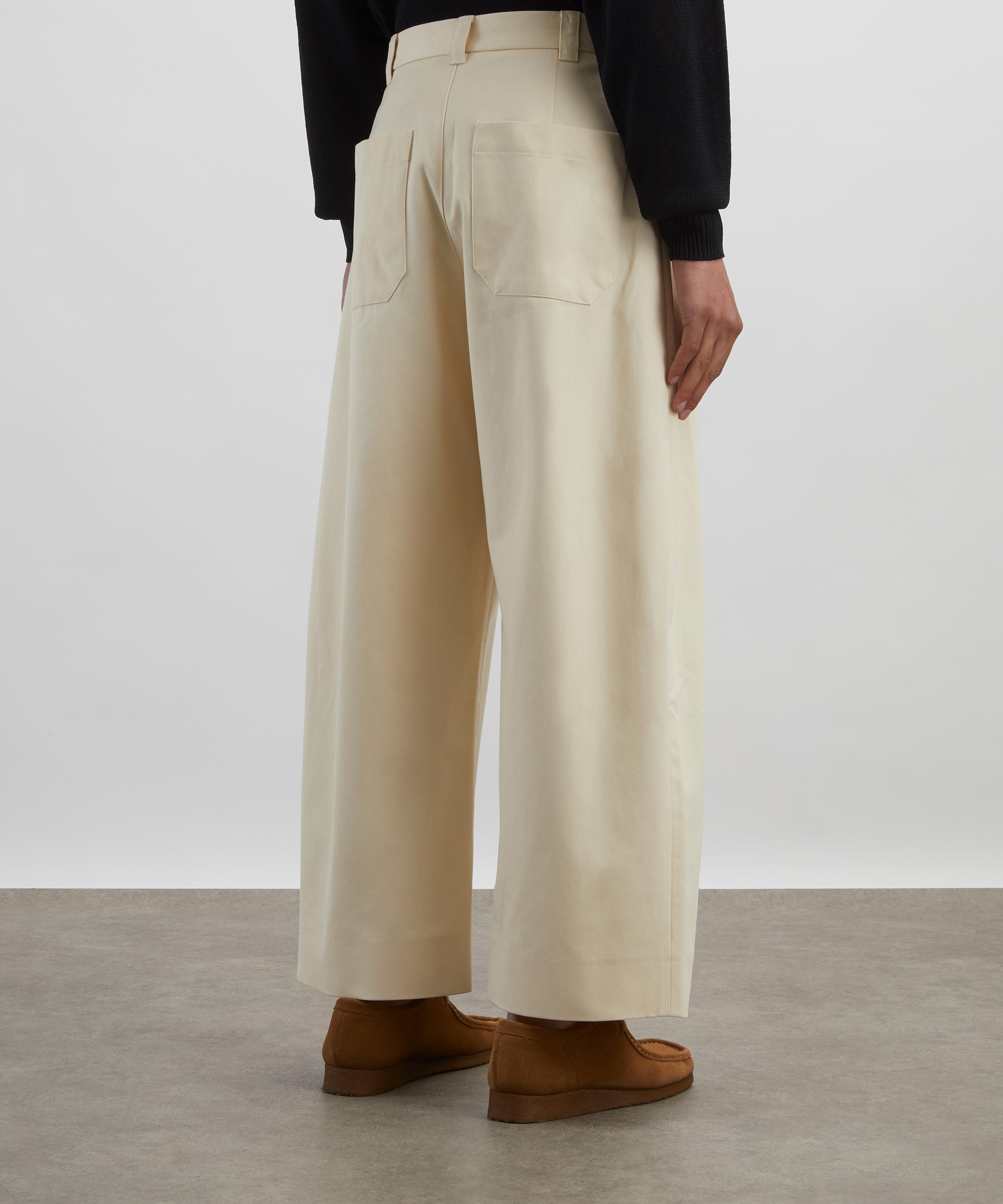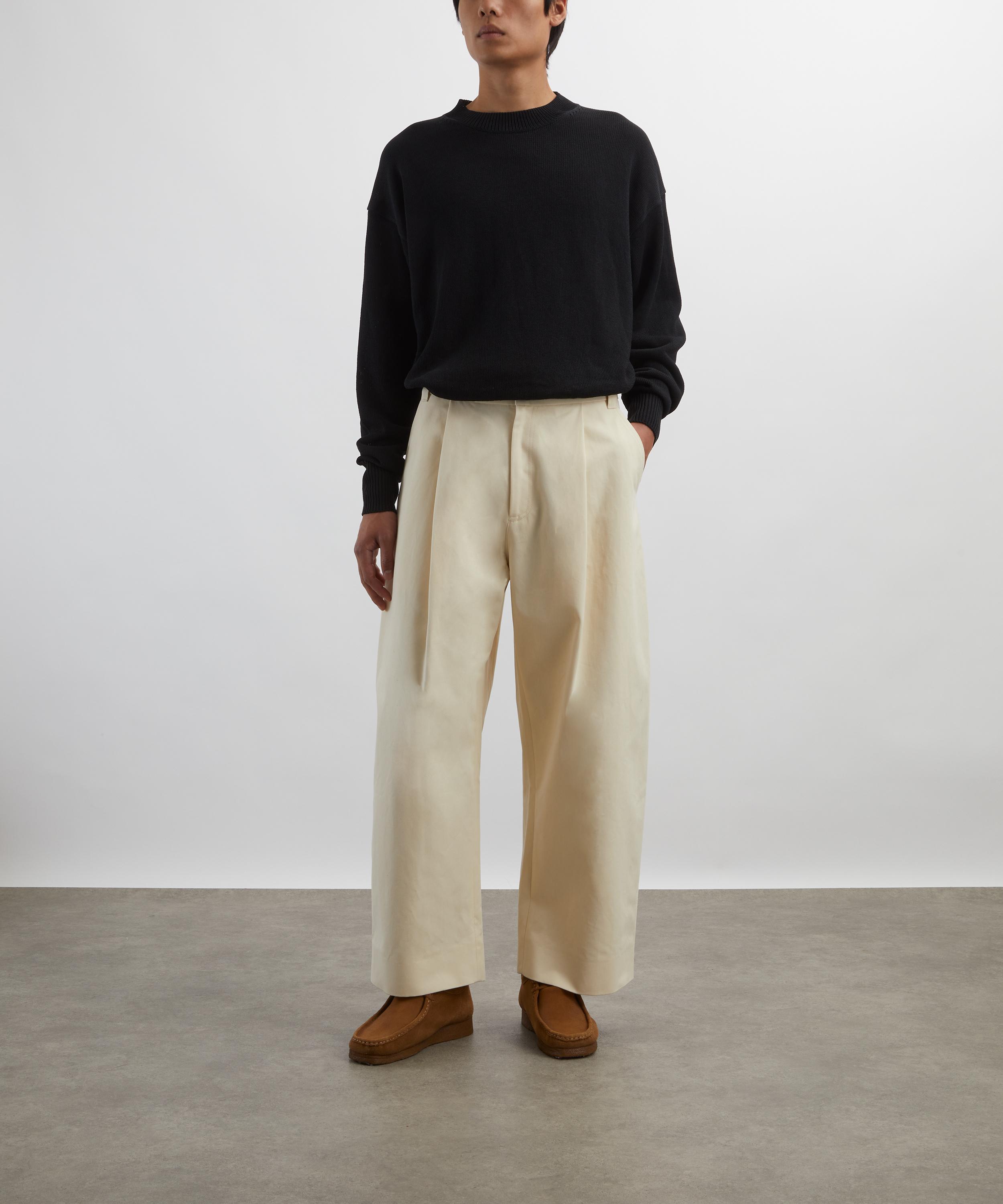 Crafted from Studio Nicholson’s signature Italian peached cotton, the Sorte Trouser features a voluminous, high-waisted silhouette with single front pleats - merging everyday comfort with the brand’s hallmark refined ease.