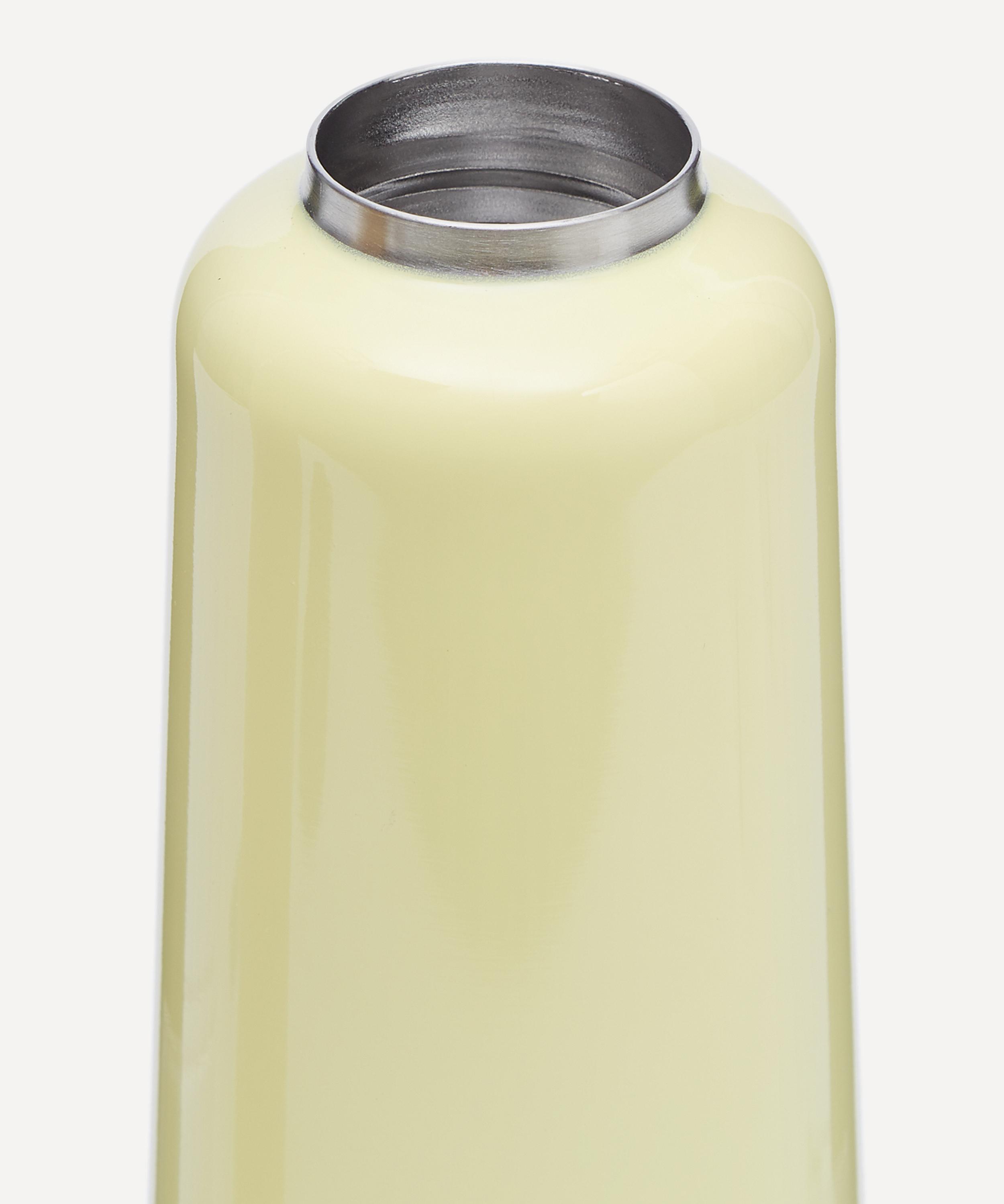 Designed by George Sowden, this sleek bottle is crafted from stainless steel and flaunts a glossy exterior. The epitome of functional art, it features a reworked cylindrical form and distinctive, plastic screw lid. Use yours to contain fresh water or your go-to hot drink.