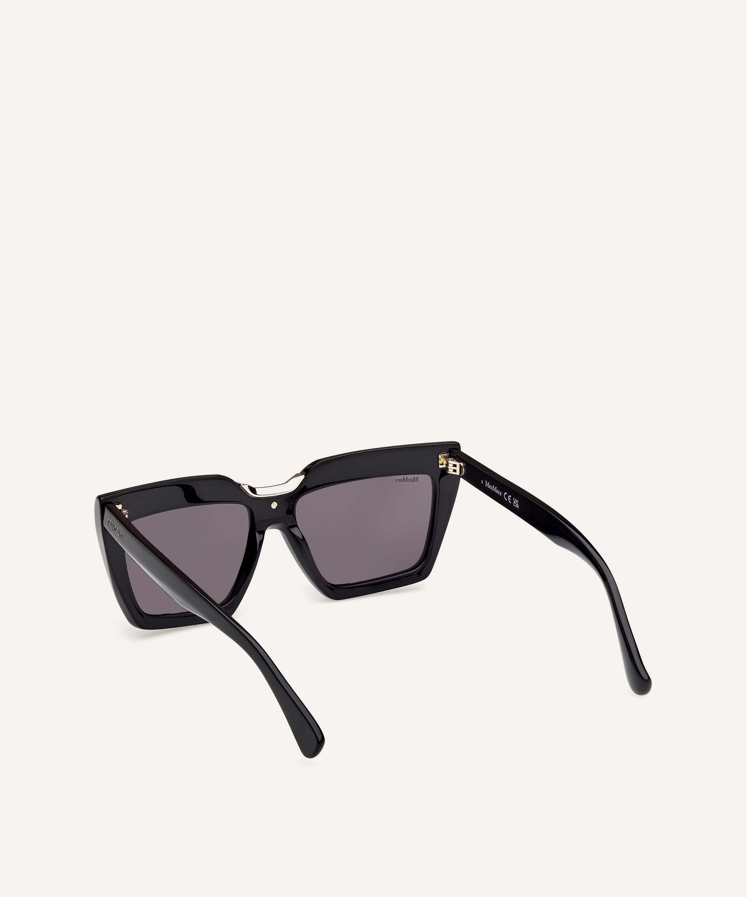 Crafted in Italy from black acetate, this pair features thick, exaggerated cat-eye frames inspired by the strong personality of American photographer and model Lee Miller. Finished with a gold-tone Maxim metal detail on the bridge and a logo engraving on the arm for an authentic touch, they bring a sophisticated edge to your everyday outfit.