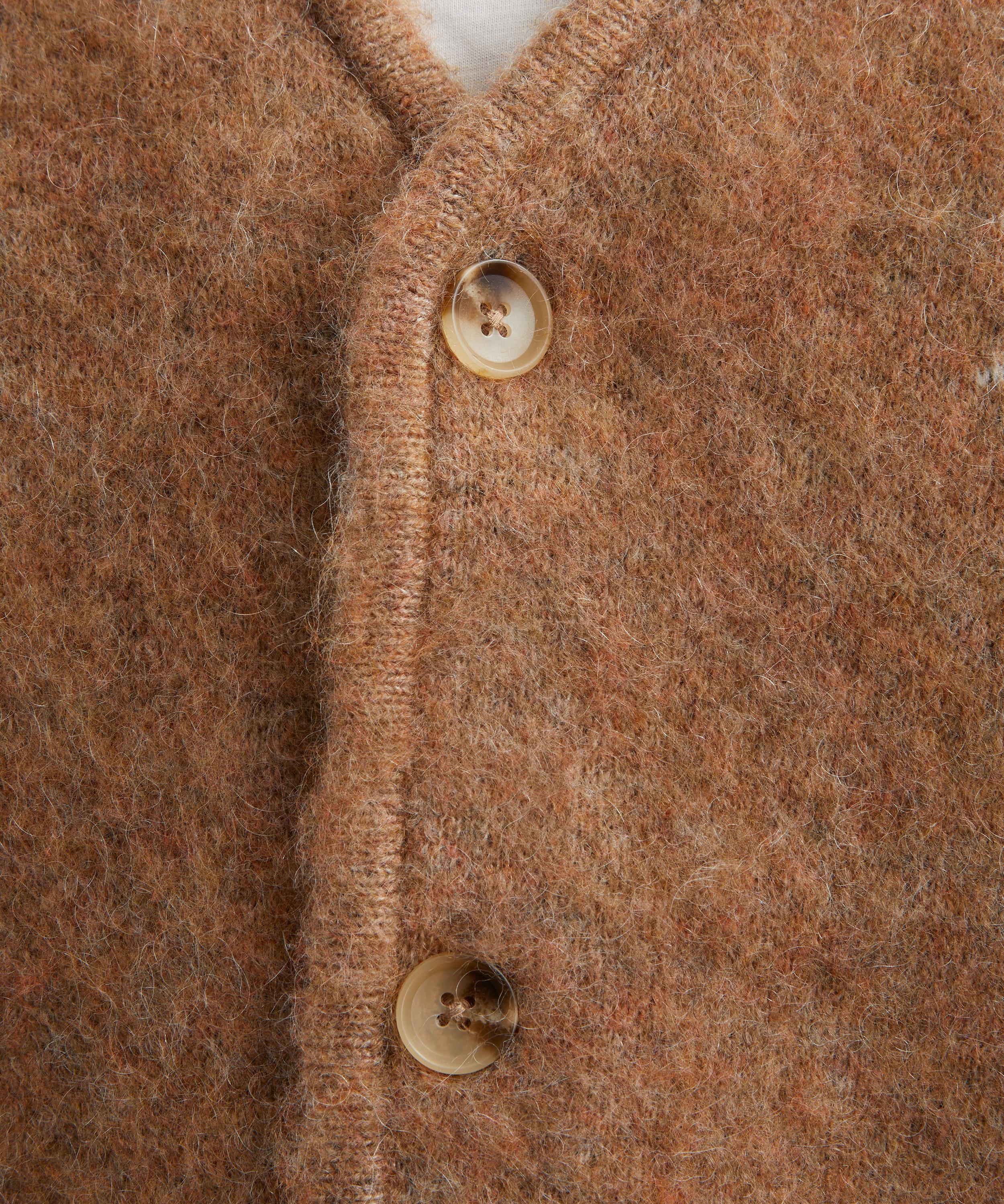 Crafted from a luxurious wool and mohair blend with a richly brushed finish, the San Miguel cardigan offers a relaxed, slightly loose fit. It features a classic V-neckline, button closure, and is adorned with a signature Pendleton jacquard pattern for a timeless touch.