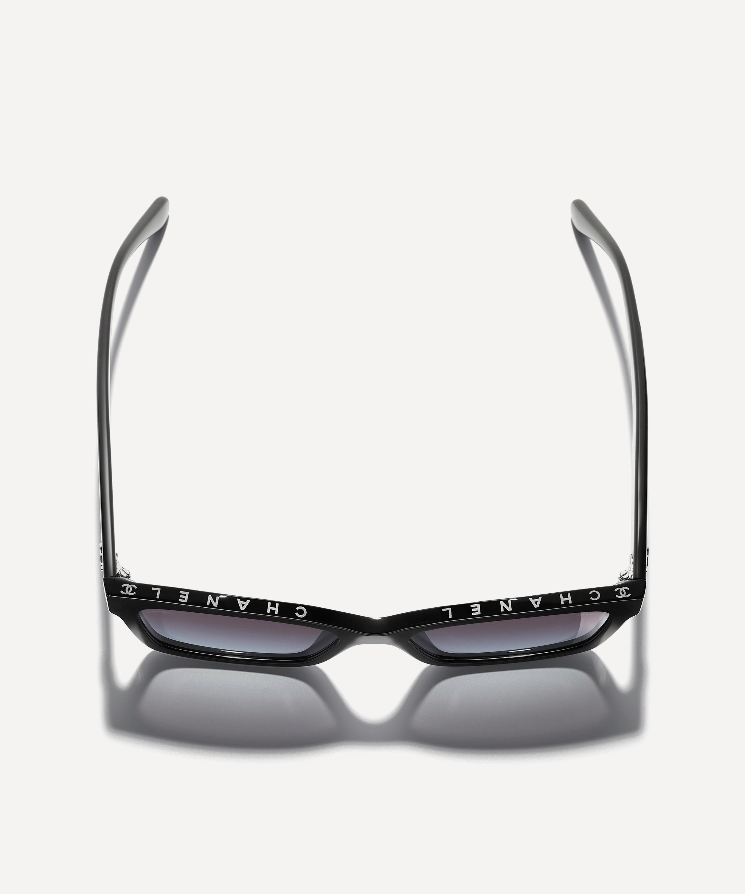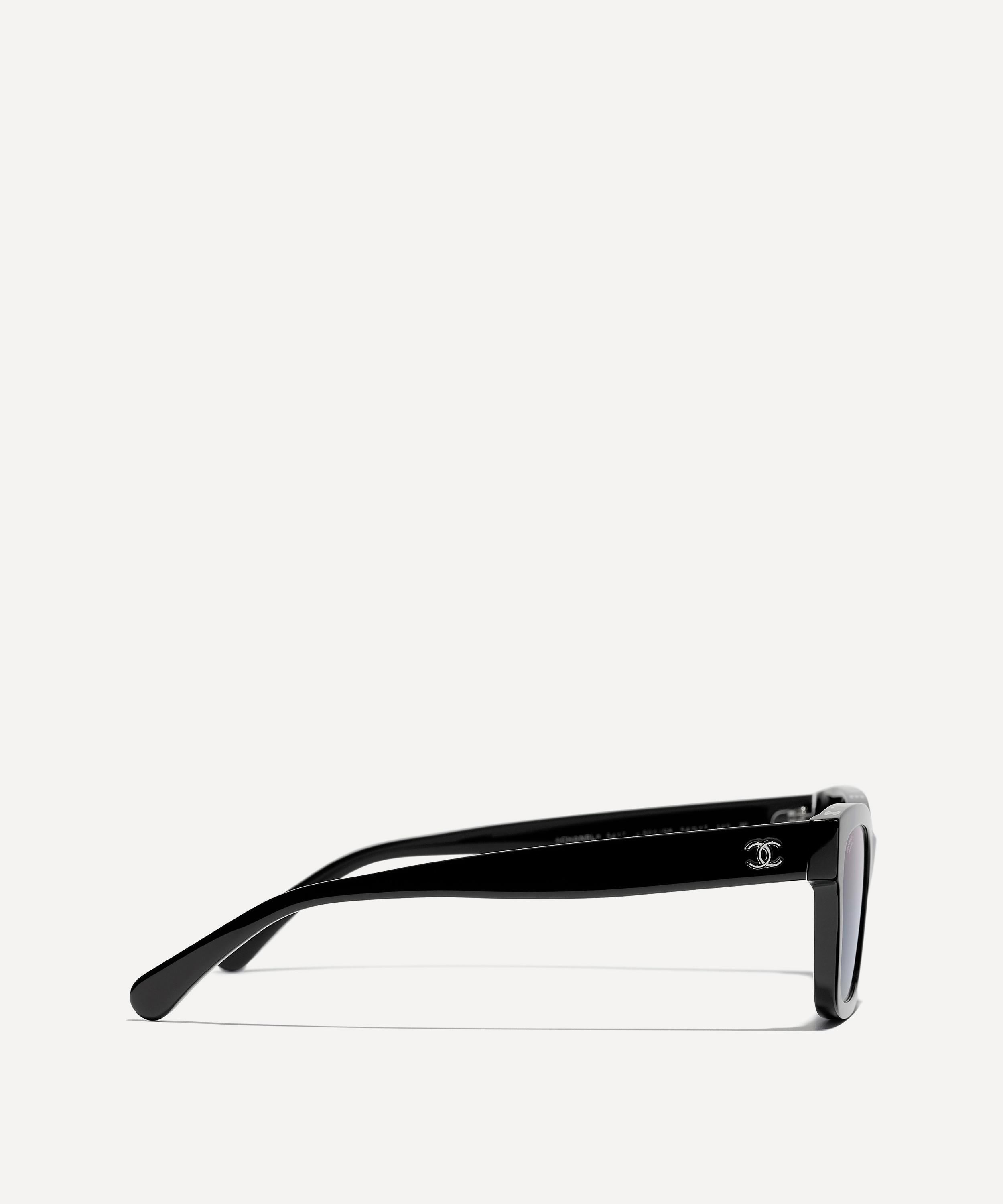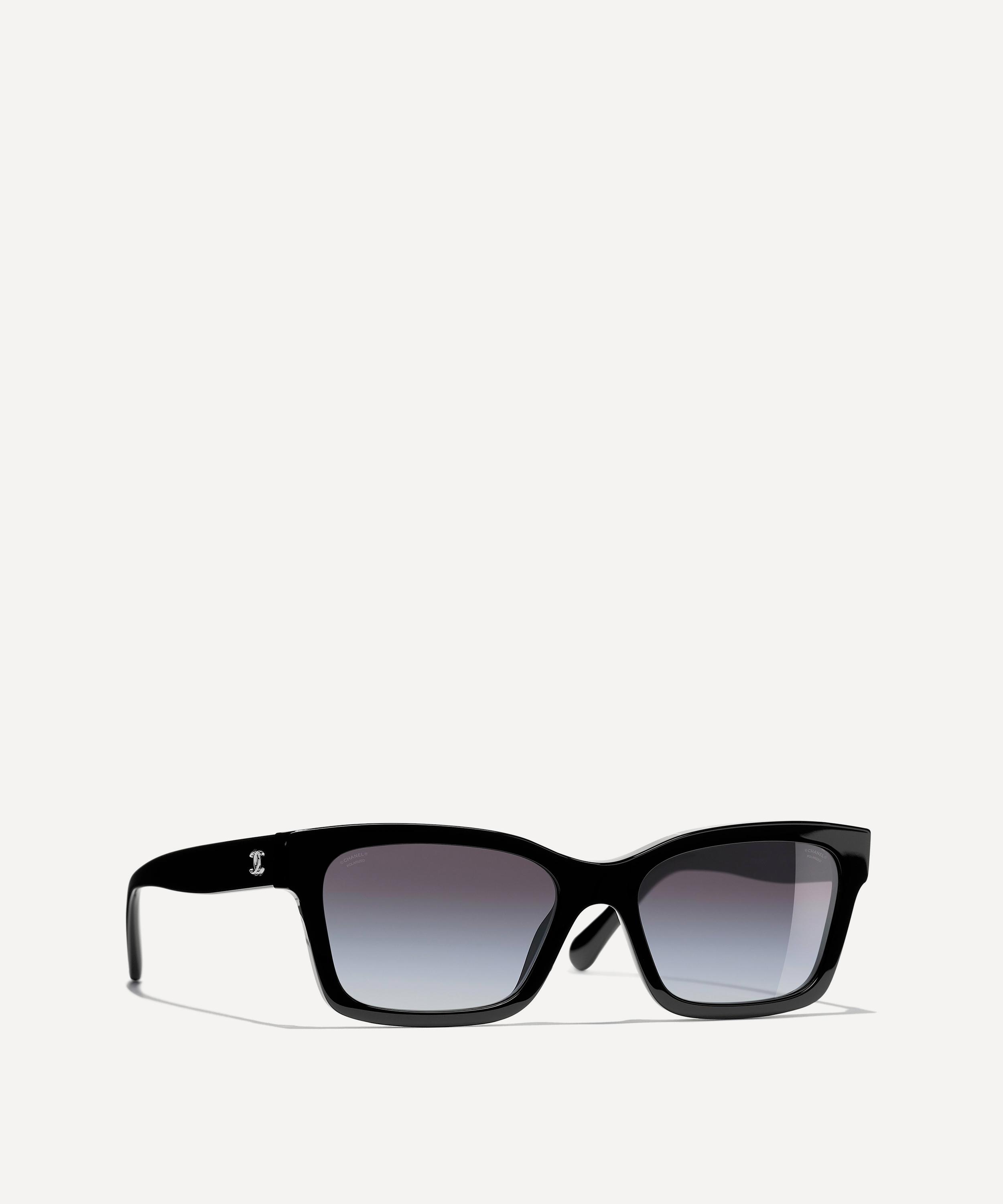 Expertly crafted in Italy from premium acetate in a black colourway, they feature a sleek silhouette with a comfortable saddle nose bridge and blue-tinted gradient lenses to protect your eyes from UV light. Adorned with CHANEL branding at the top edges and the signature interlocking C logo at the temples, style them with pulled-back hair to show off the details.