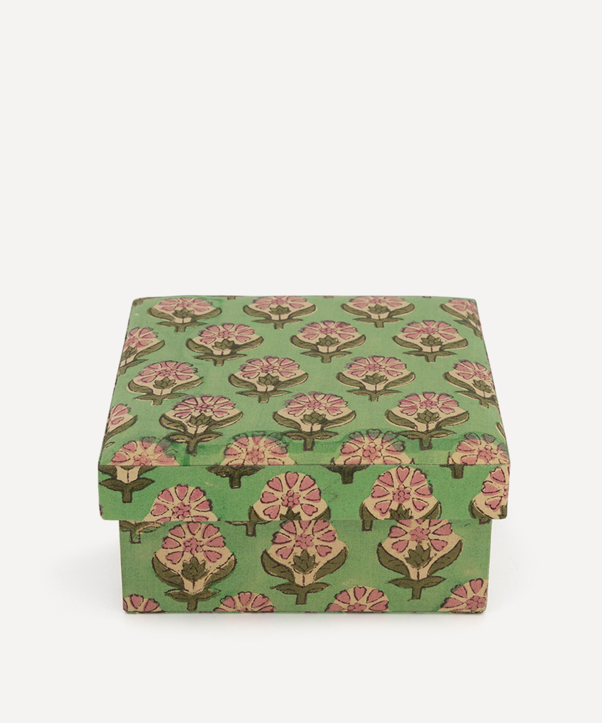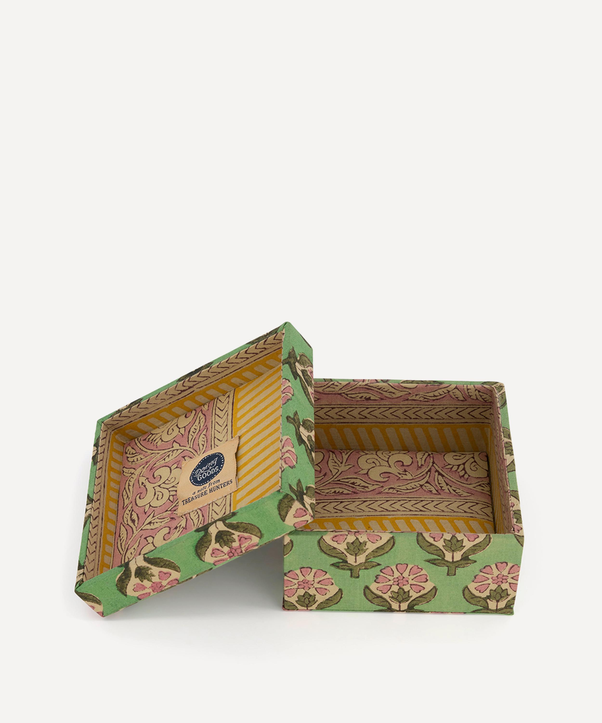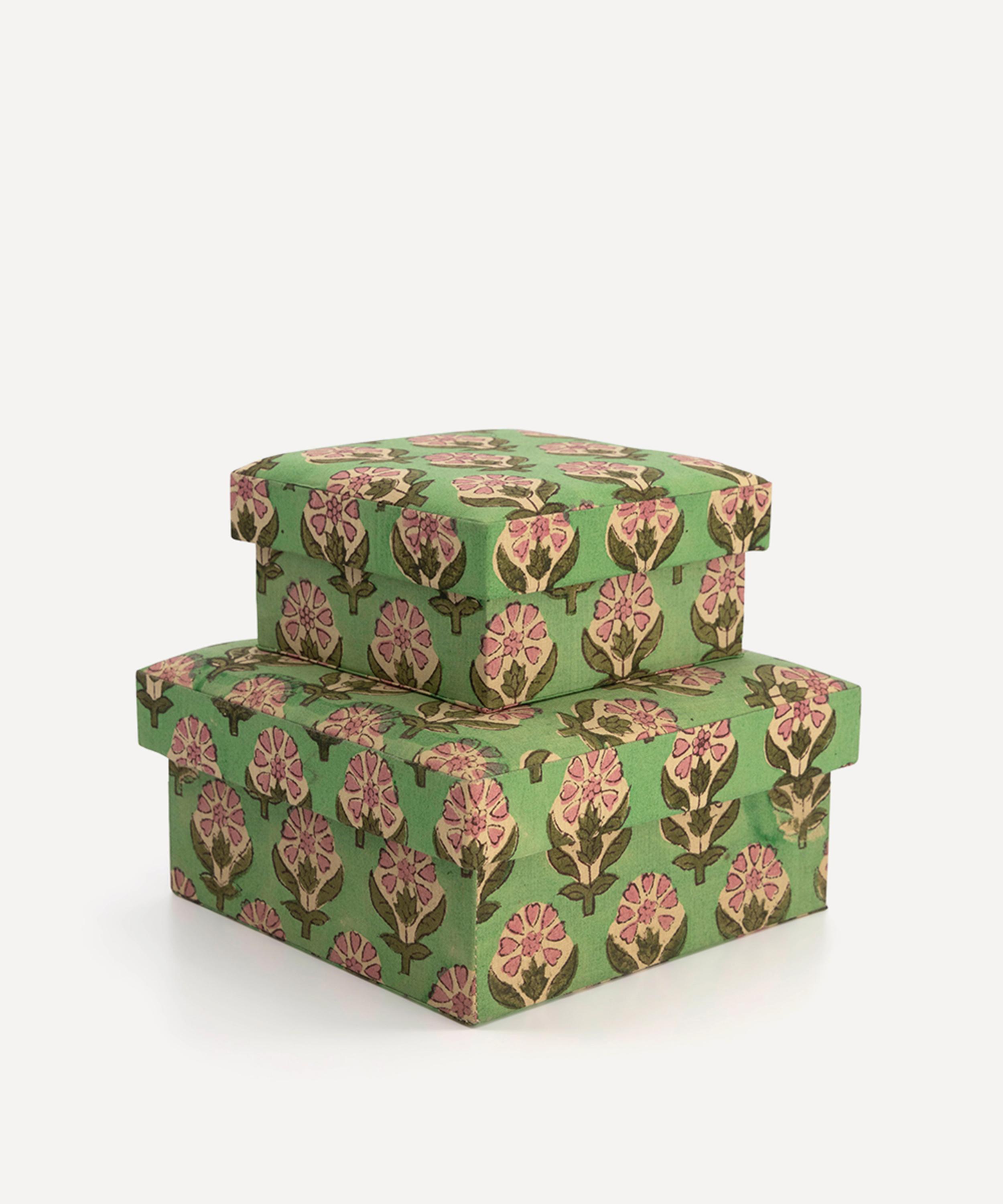 Keep trinkets and treasures safely stored away with this set of beautifully block printed square fabric boxes from Dutch homewares brand Doing Goods. Characterised by a sense of wonder and whimsy inspired by the designers’ global travels, this piece will make a colourful addition to any dressing table or office space.