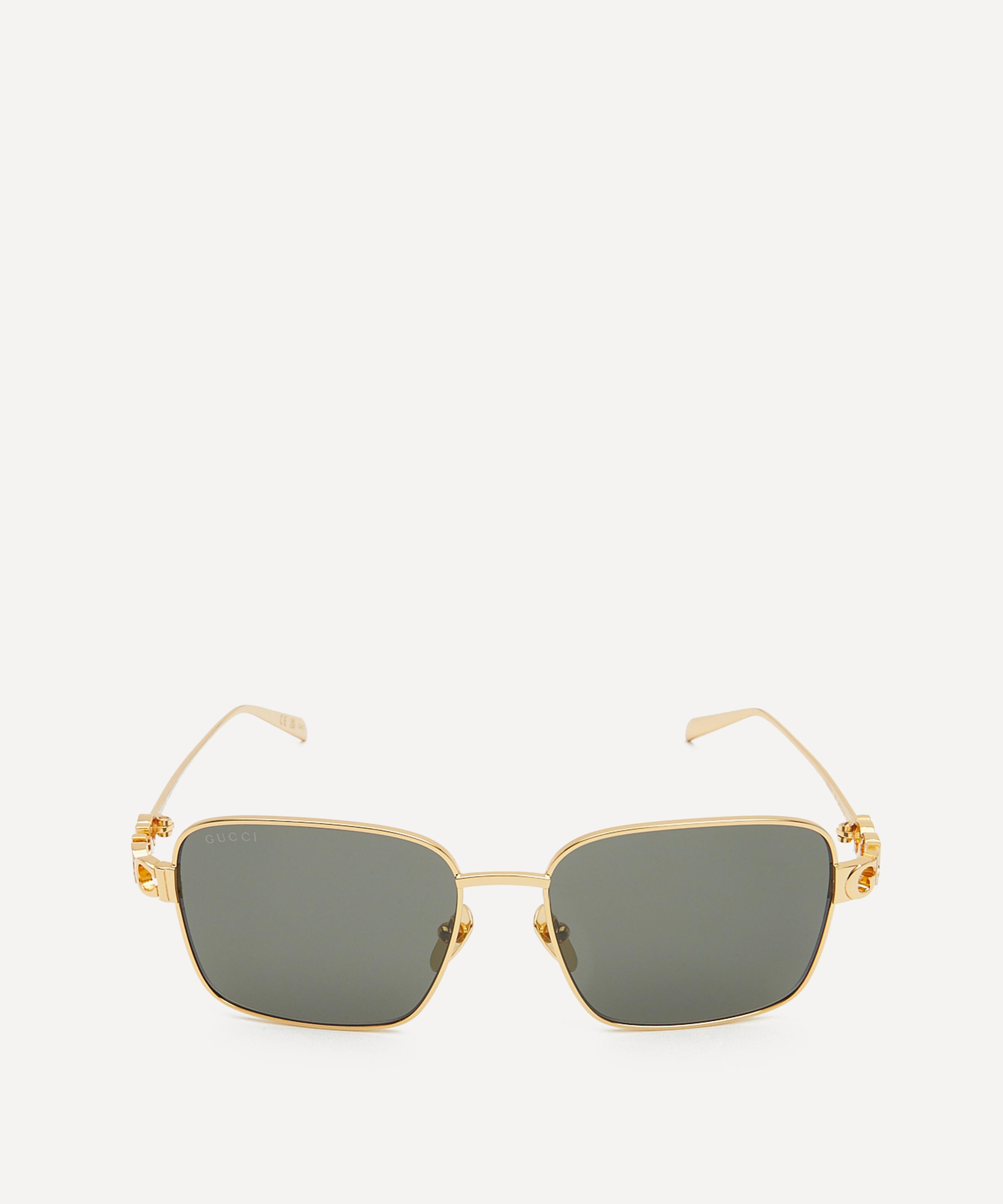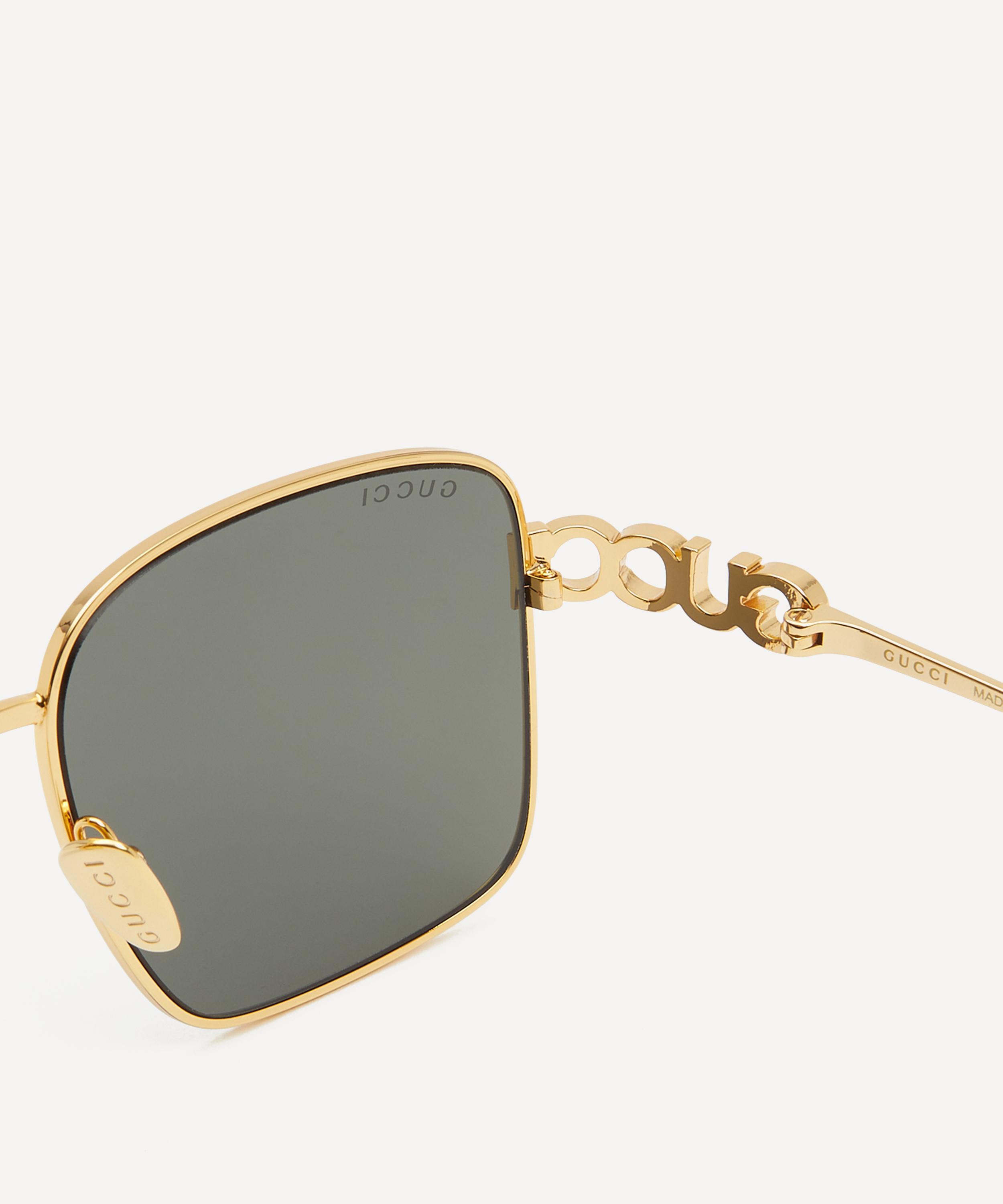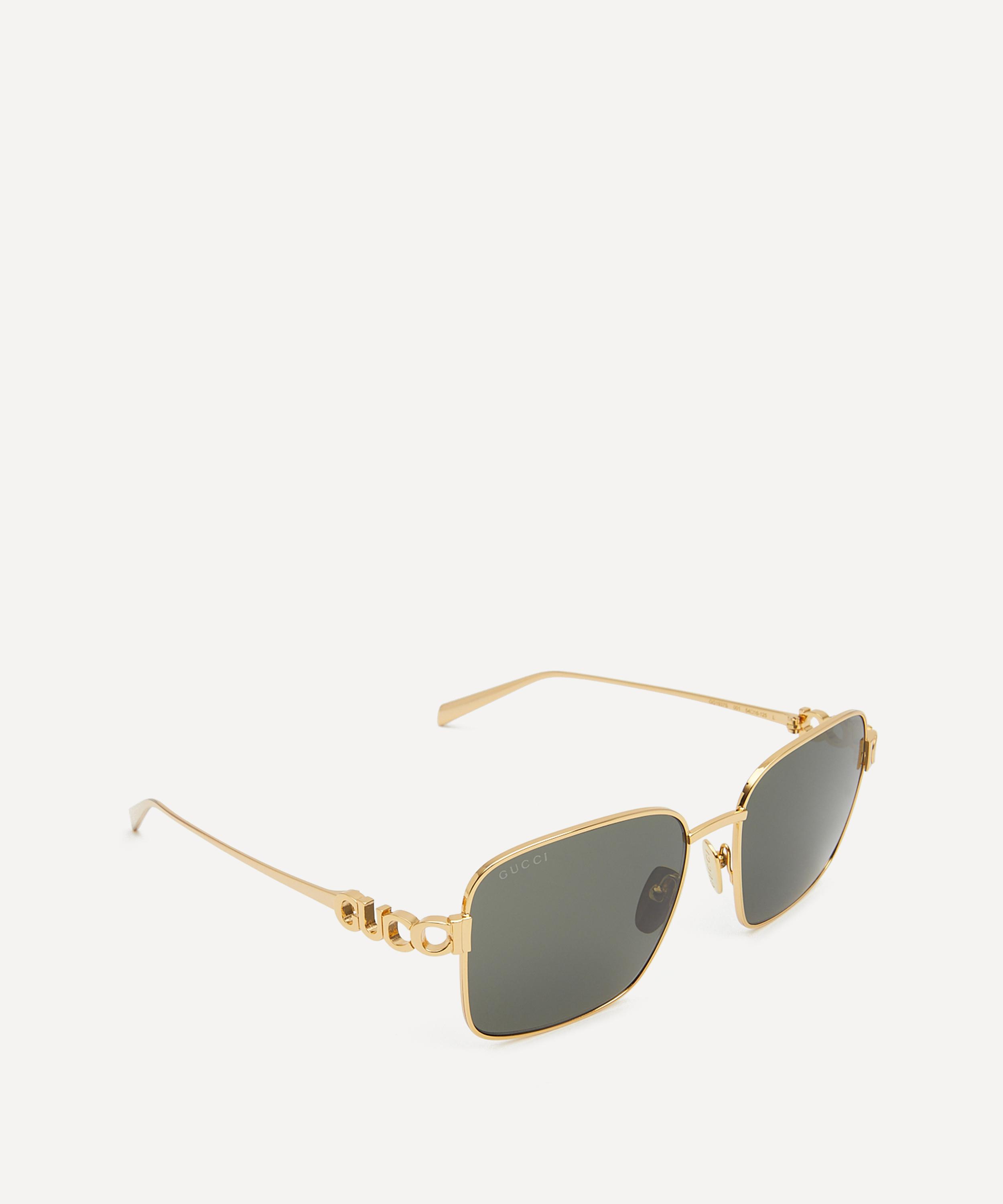 Meticulously crafted to a square silhouette, this pair exude glamour with their shiny light gold-toned frames, fitted with tinted lenses to shade and protect your eyes, and complete with cut-out logo details at the temples – the ultimate fusion of timeless elegance and modern luxury, they are poised to elevate any ensemble.