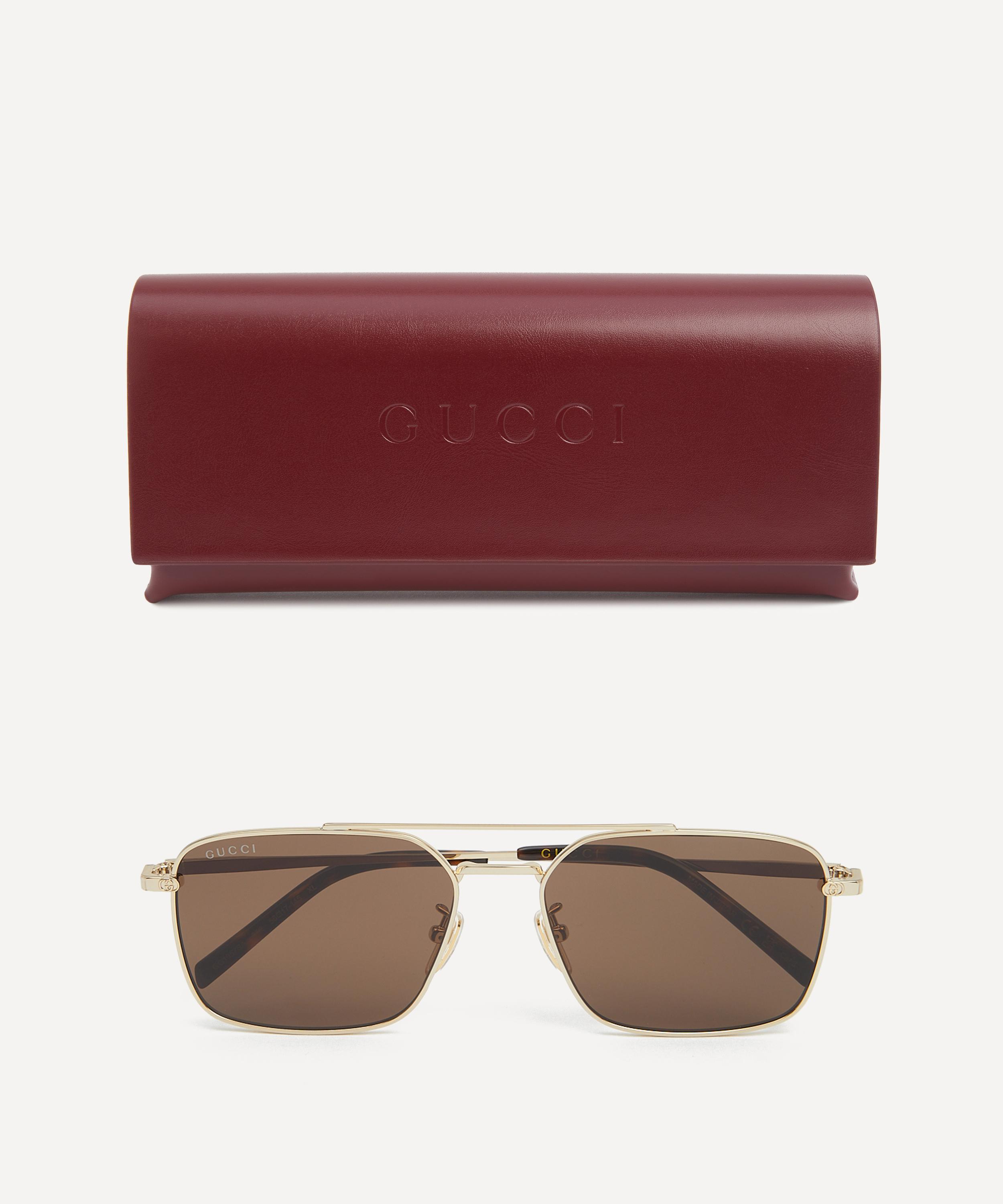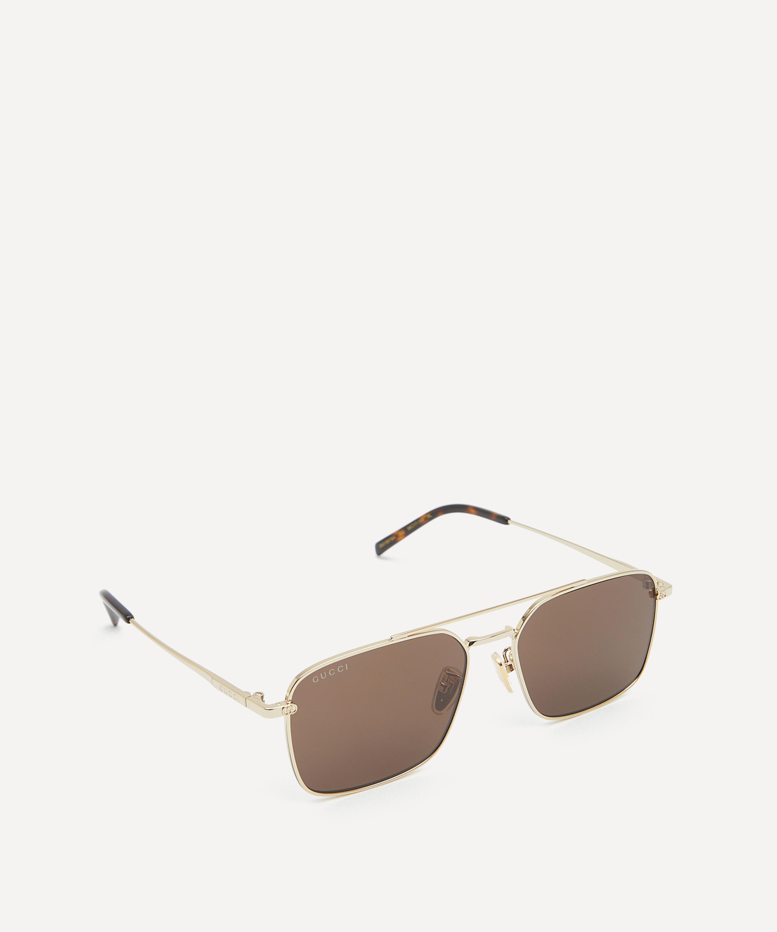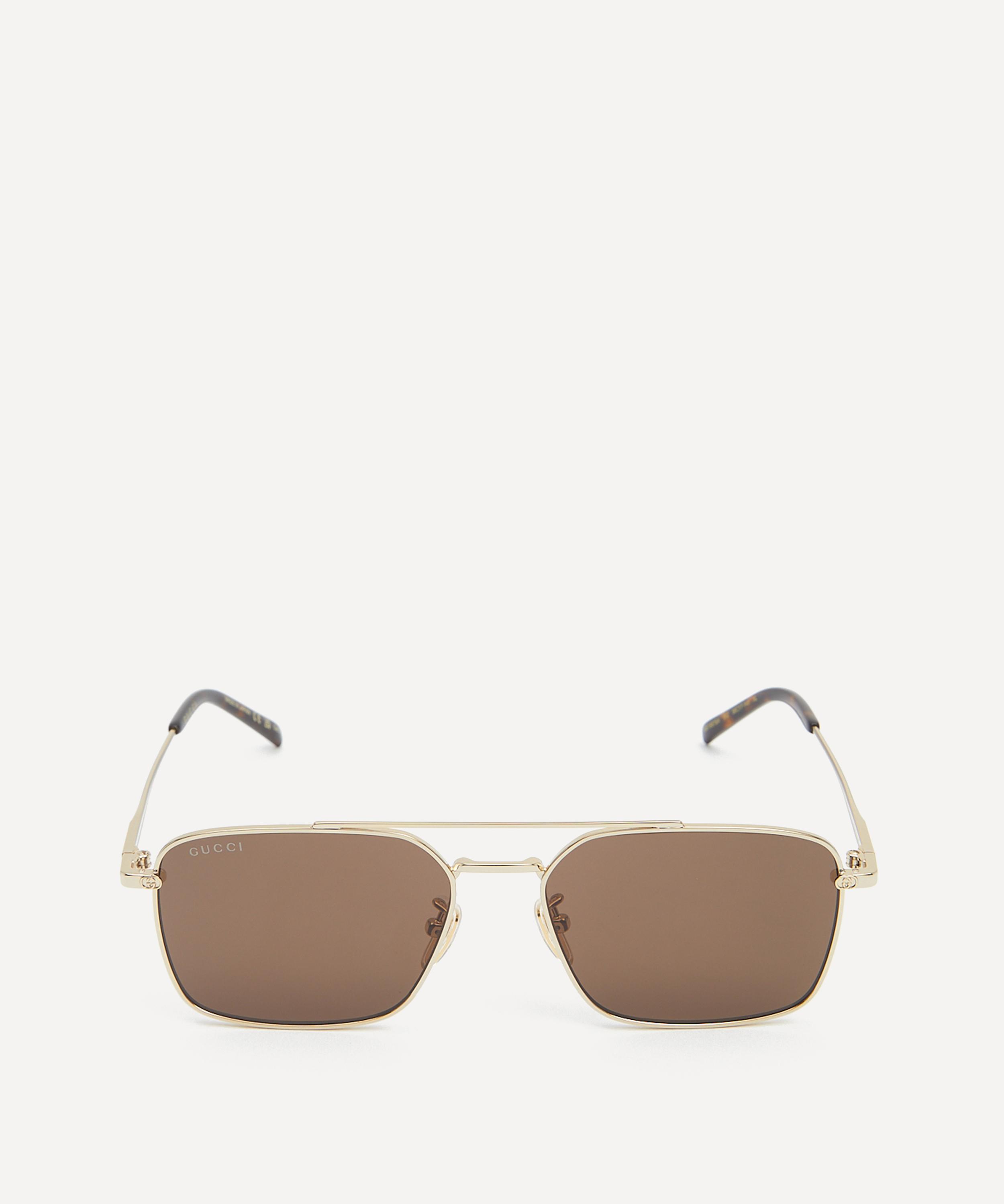 Meticulously crafted to a square silhouette, this pair exude glamour with their shiny light gold-toned frames, fitted with brown tinted lenses to shade and protect your eyes and a retro-inspired double nose bridge – the ultimate fusion of timeless elegance and modern luxury, they are poised to elevate any ensemble.