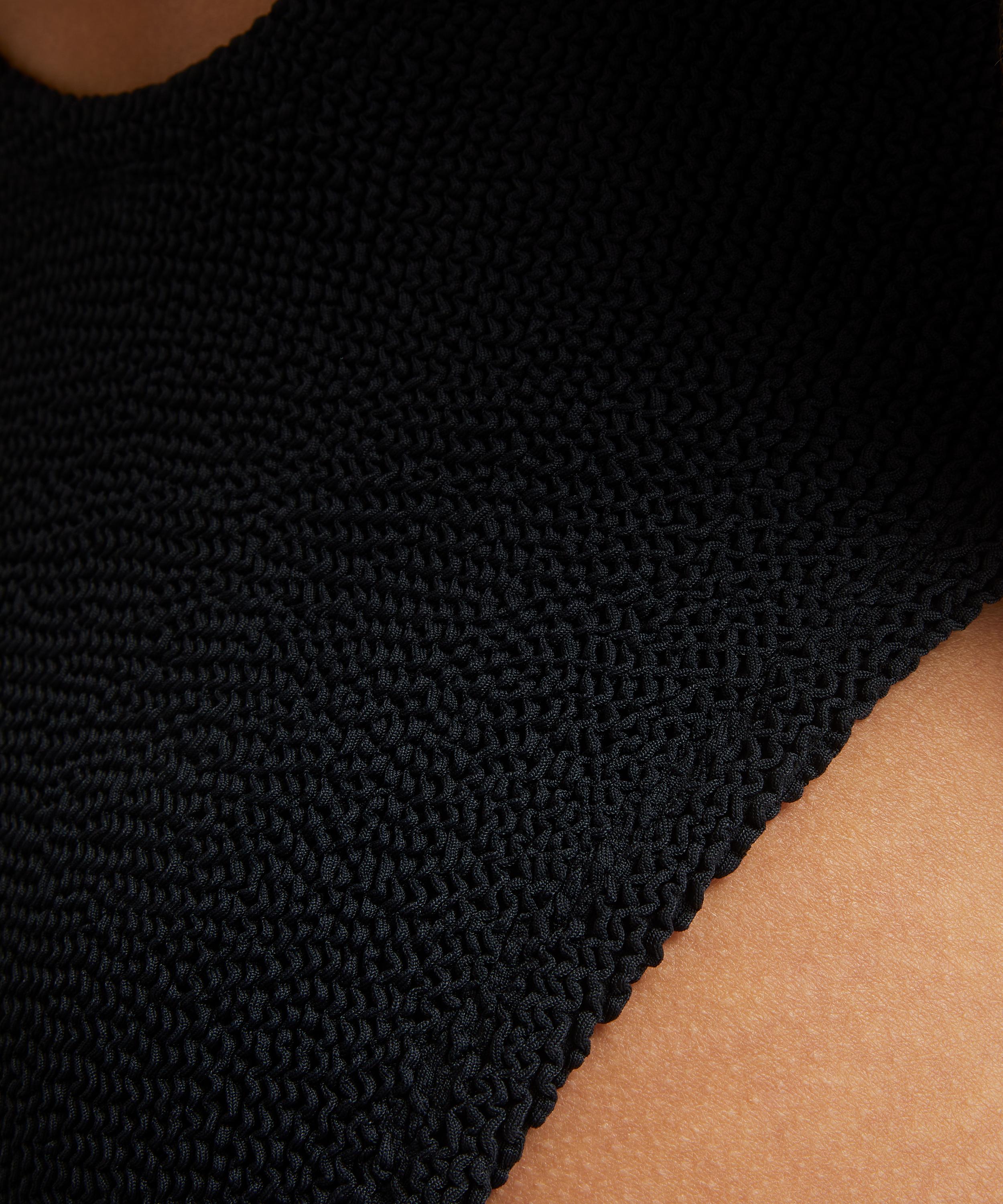 Crafted from the label’s signature crinkle material for a comfortable, flattering fit every time, this classic square-neck silhouette exudes '80s retro glam with its scooped back and high-cut leg.