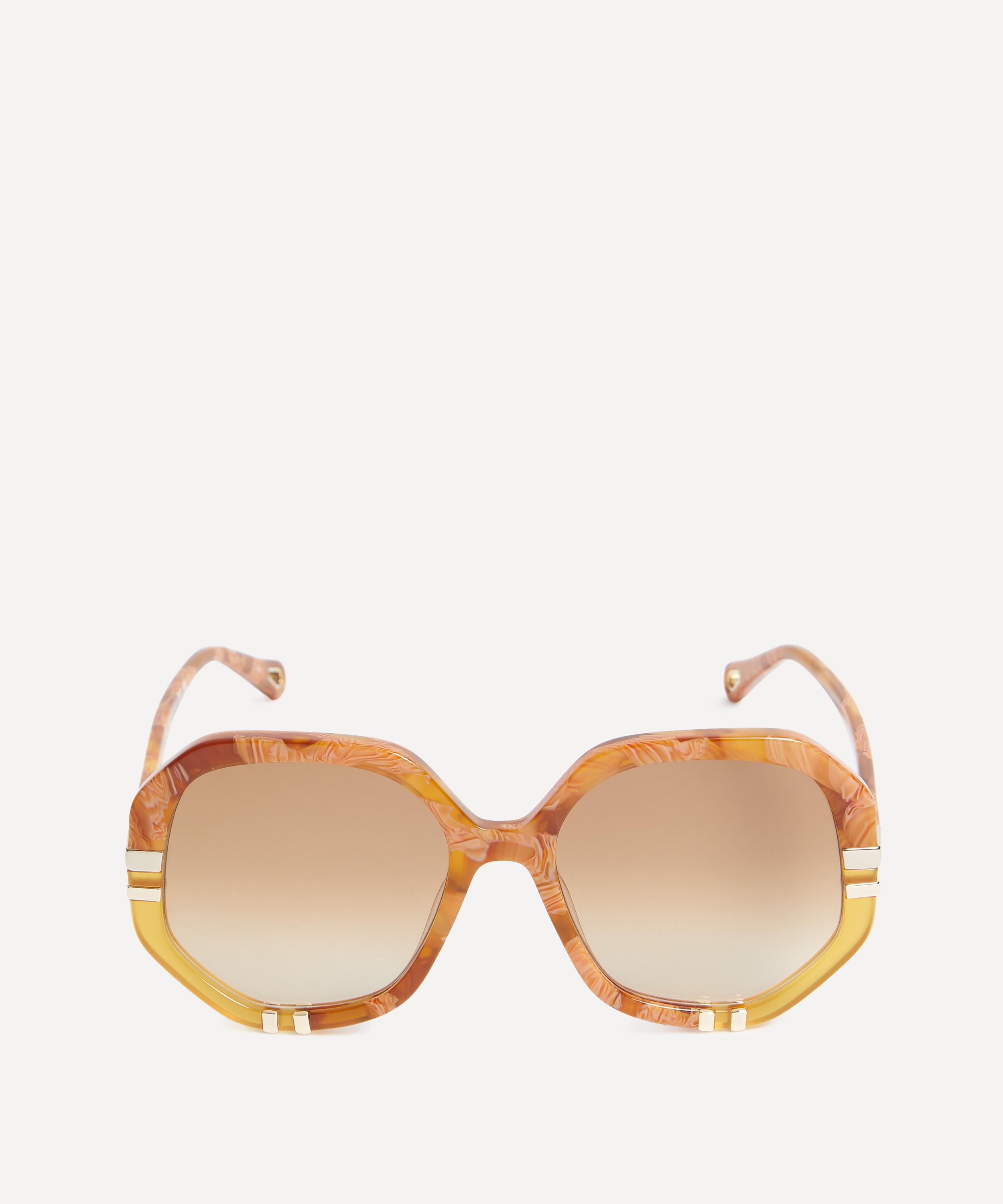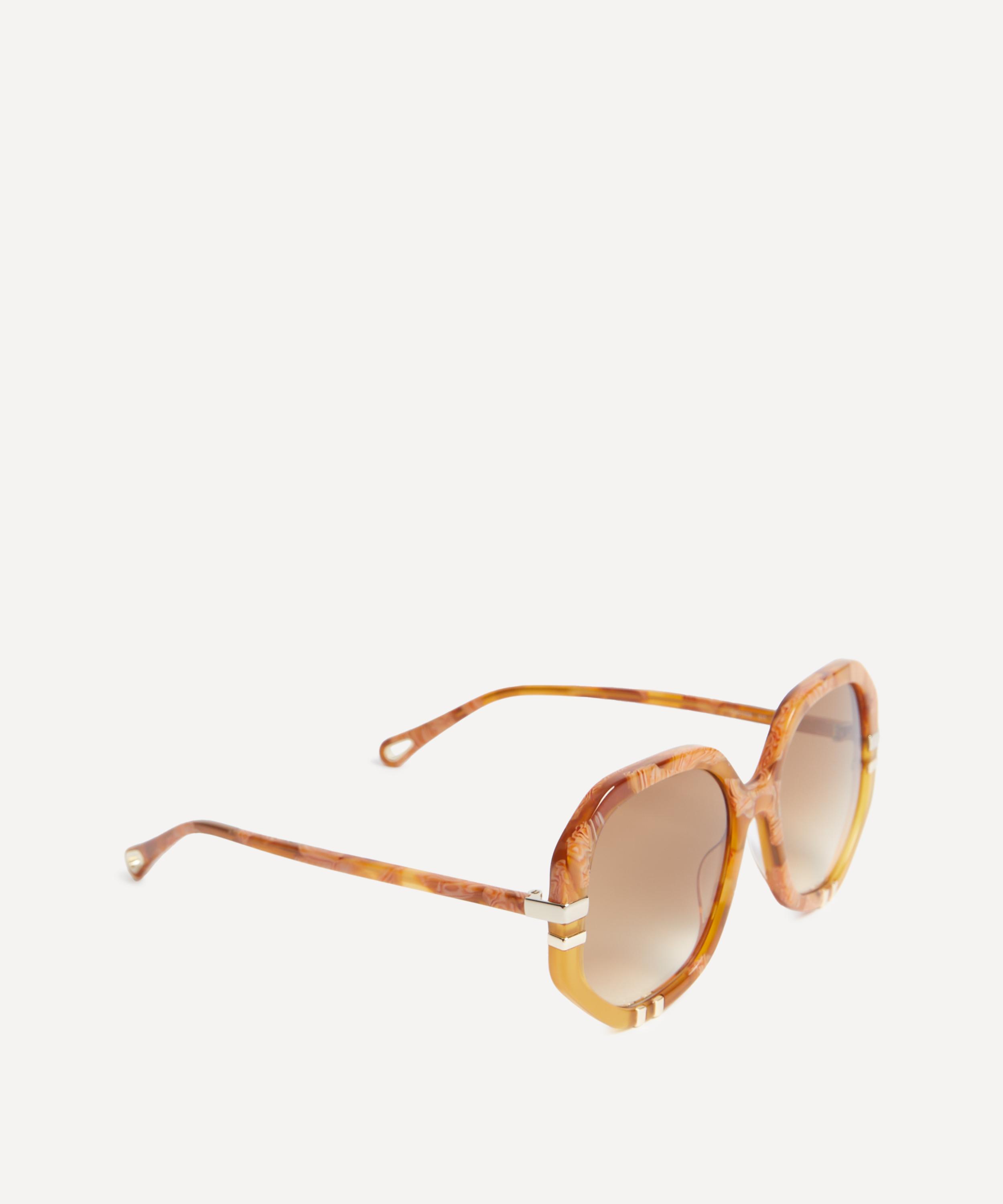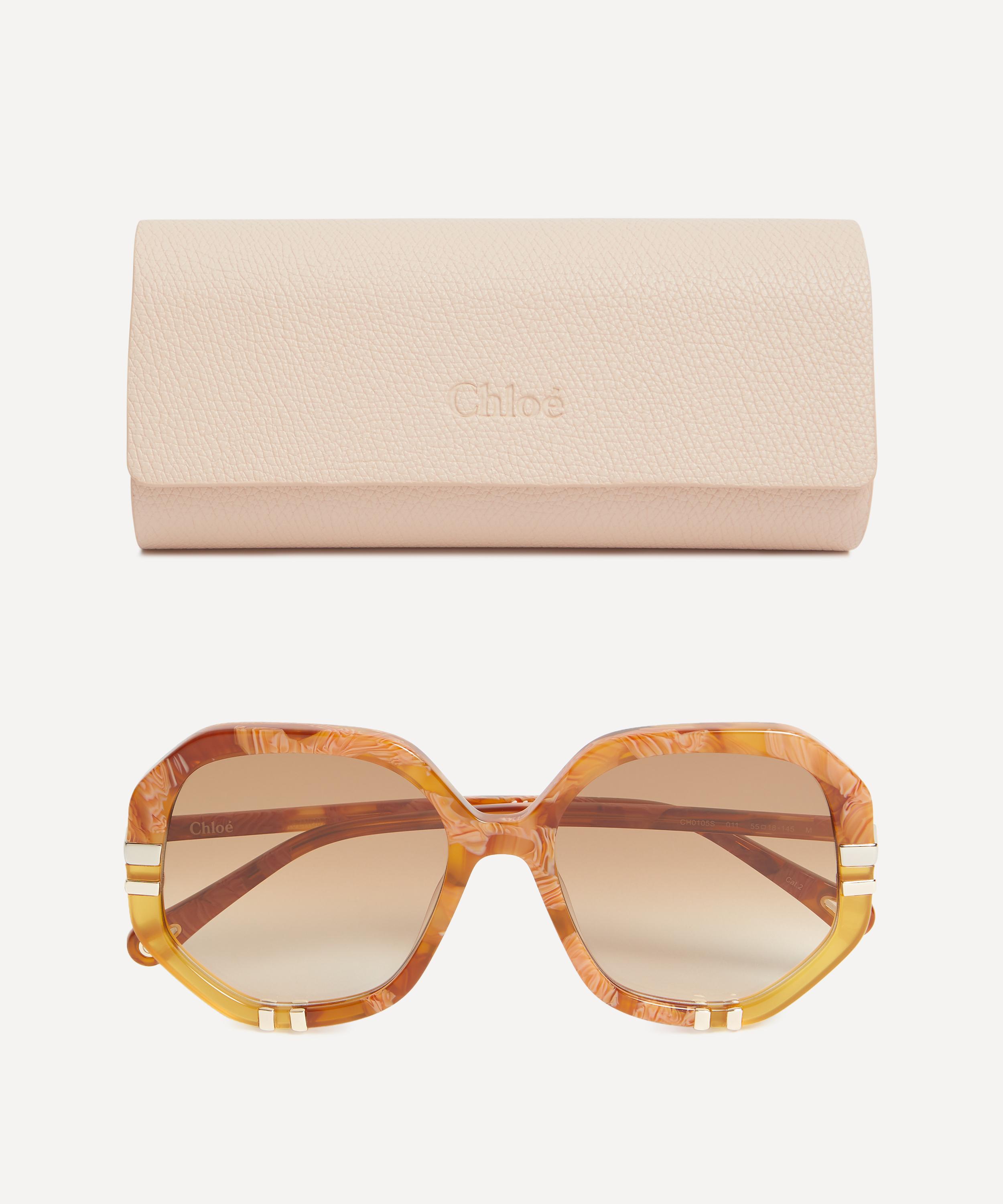 A statement-making signature style, these square sunglasses from Chloé showcase quality craftmanship. This chic pair features a slightly geometric, oversized silhouette that further accentuates the style's glamorous, retro-inspired aesthetic. Crafted from Havana acetate, they’re finished with brown-tinted lenses and subtle branding to the temples – simply pair with polished gold jewellery for an instantly elevated look.
