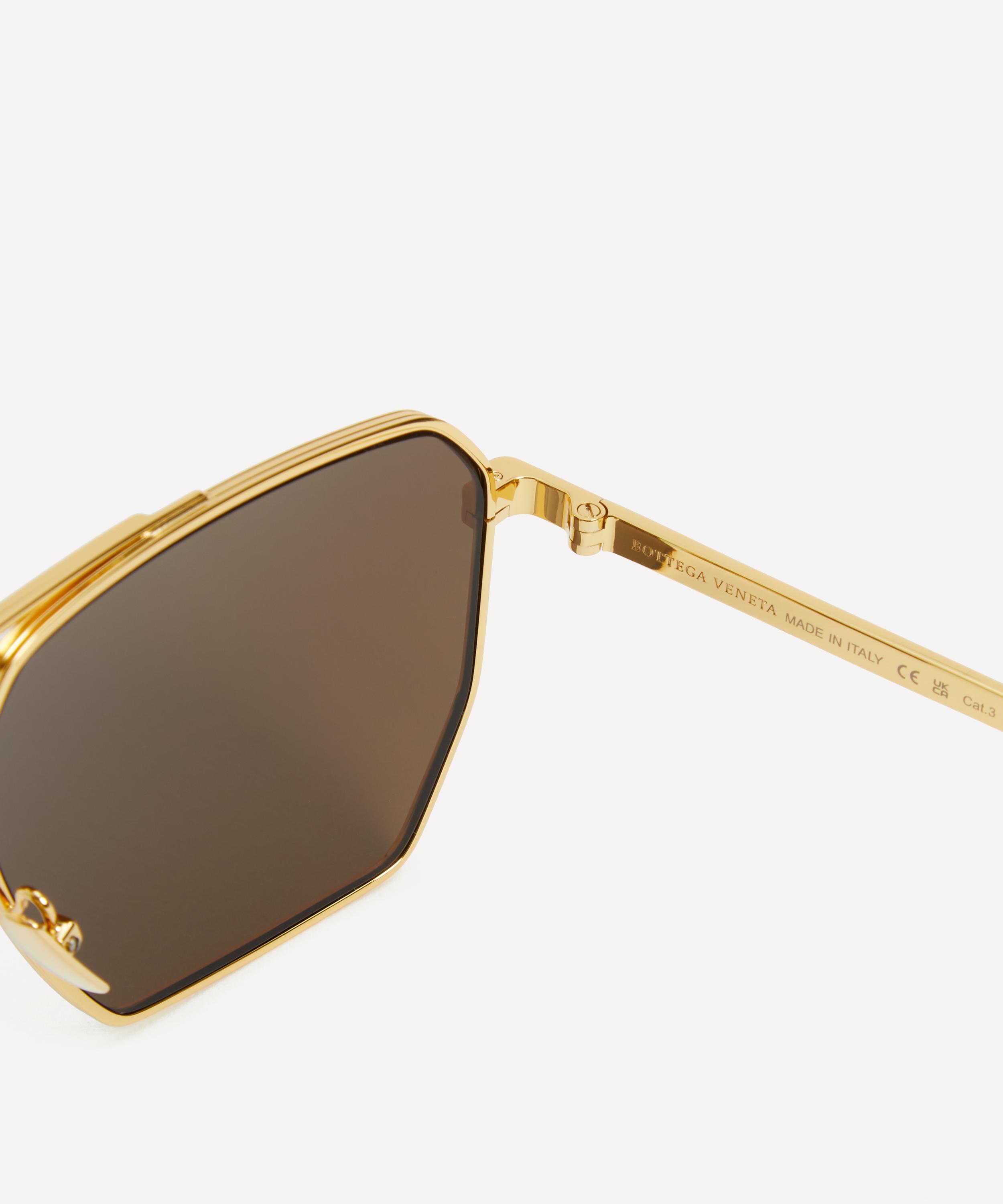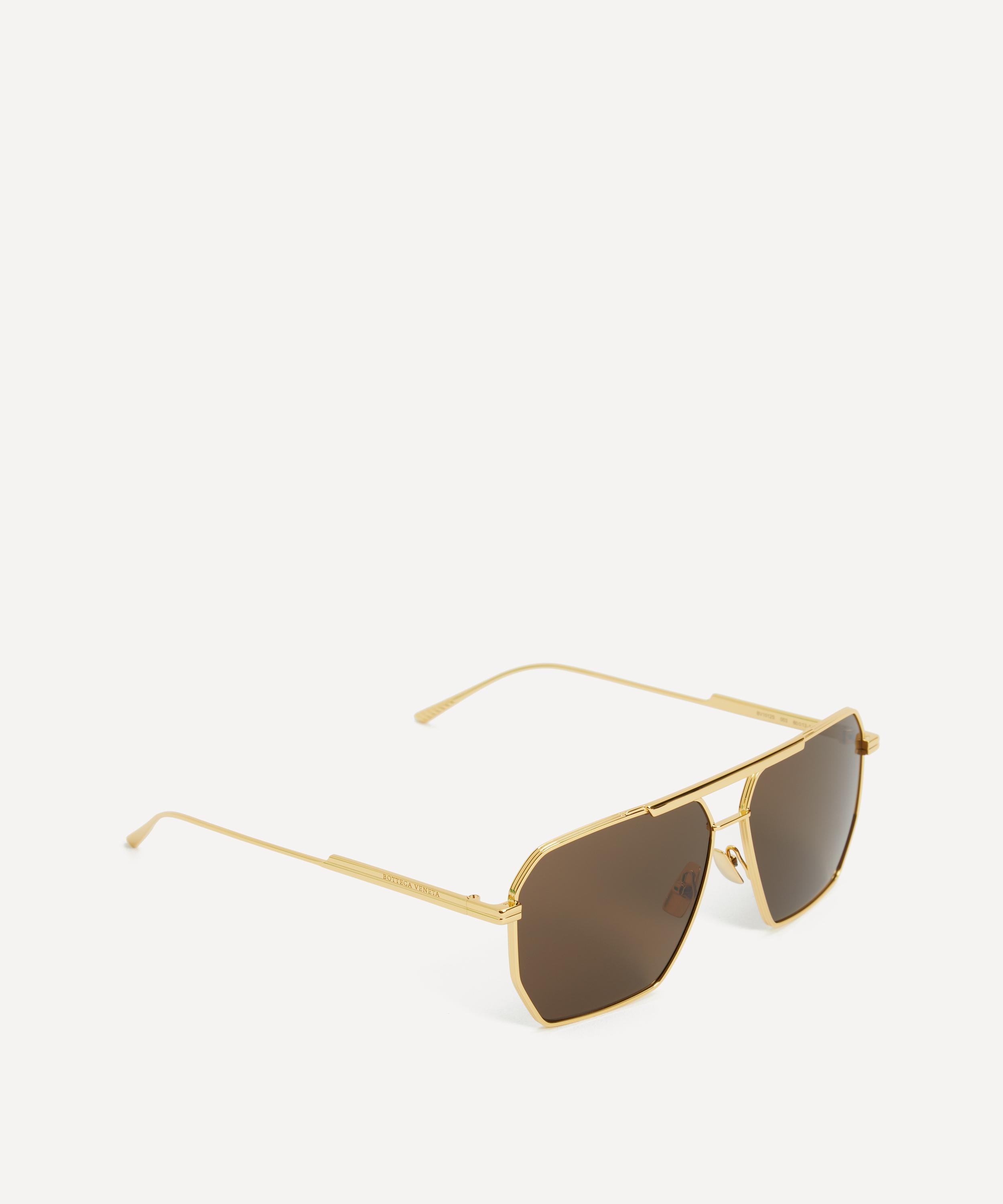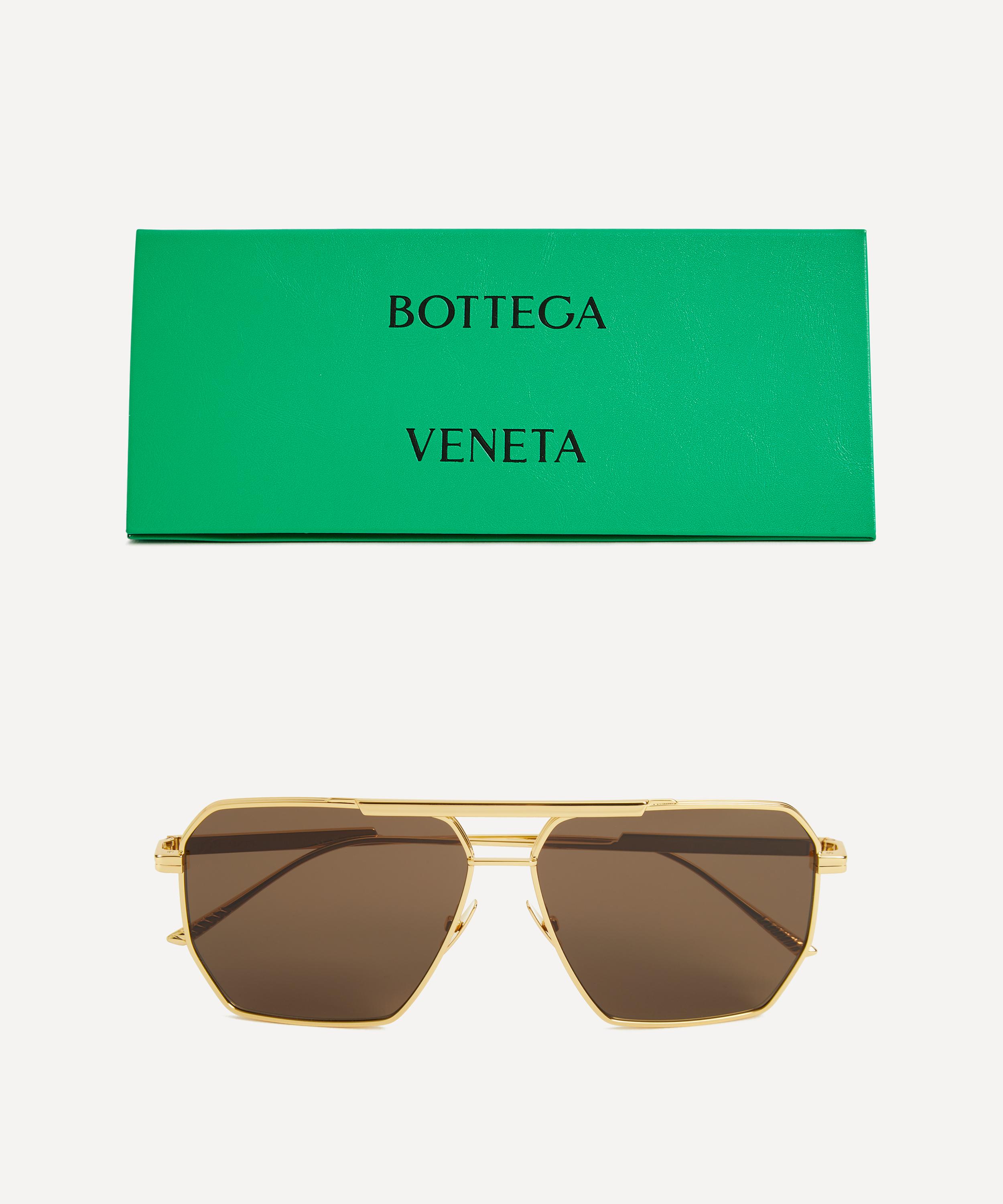 Elevate your style with these square sunglasses from Bottega Veneta for a touch of sleek Italian glamour. Featuring a retro-inspired, slim shape, these shades are crafted from gold-tone metal complete with brown-tinted lenses and a subtle brand logo to the temples to take your look from ordinary to outstanding. They come with a protective case and cleaning cloth to preserve peak conditions.
