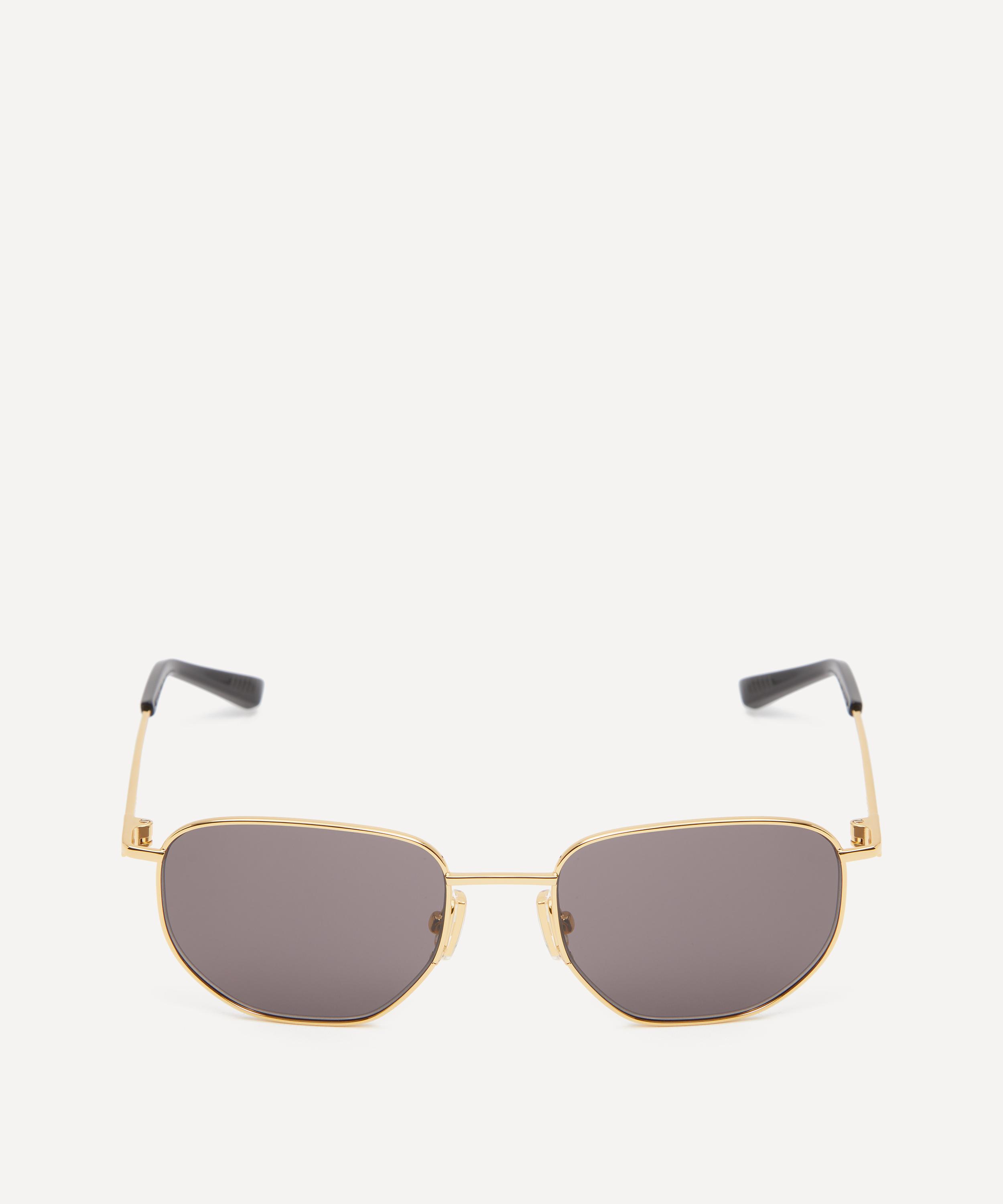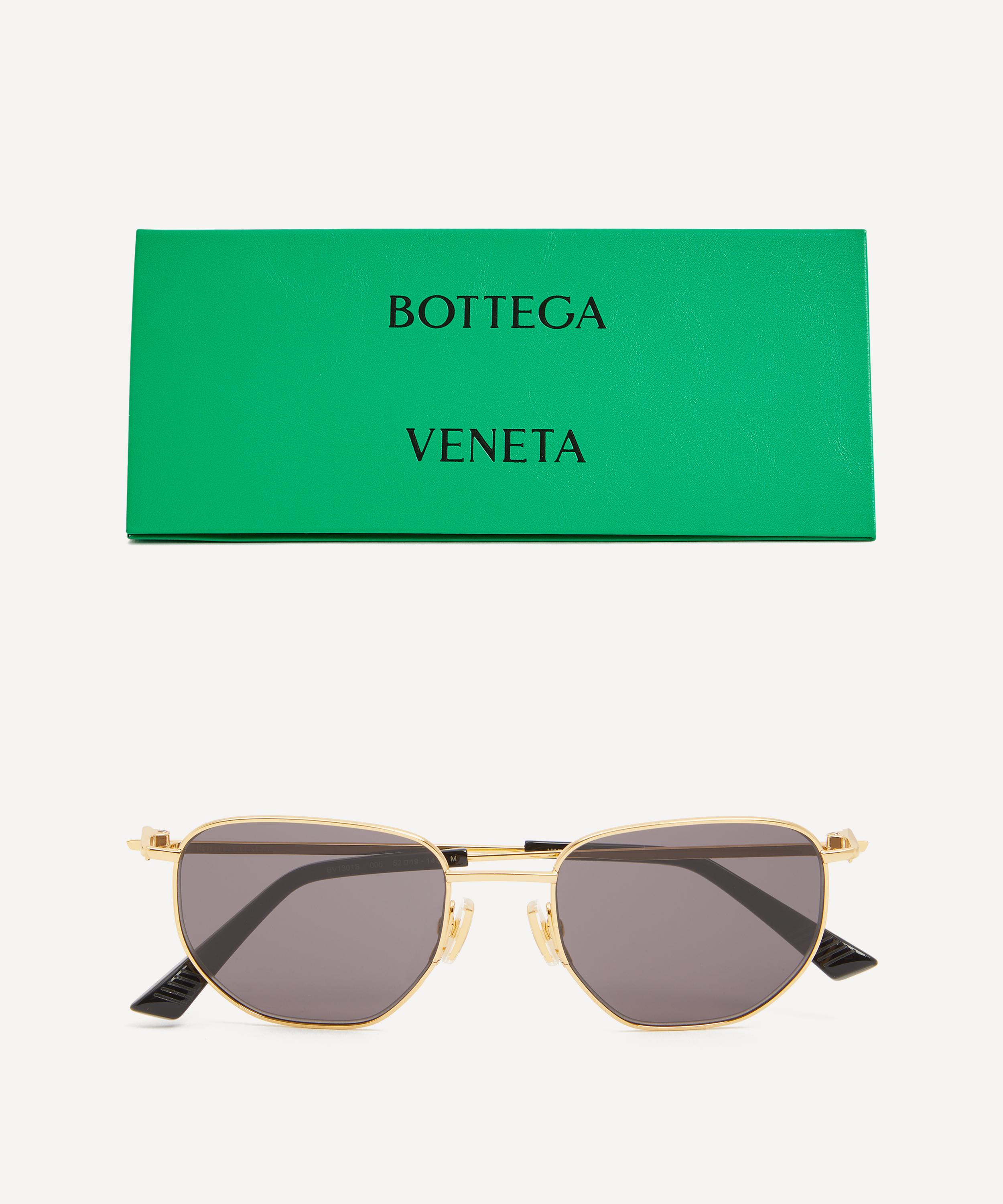 Elevate your style with these square sunglasses from Bottega Veneta for a touch of sleek Italian glamour. Featuring a retro-inspired, slim shape, these shades are crafted from gold-tone metal complete with grey-tinted lenses and a subtle brand logo to the temples to take your look from ordinary to outstanding. They come with a protective case and cleaning cloth to preserve peak conditions.