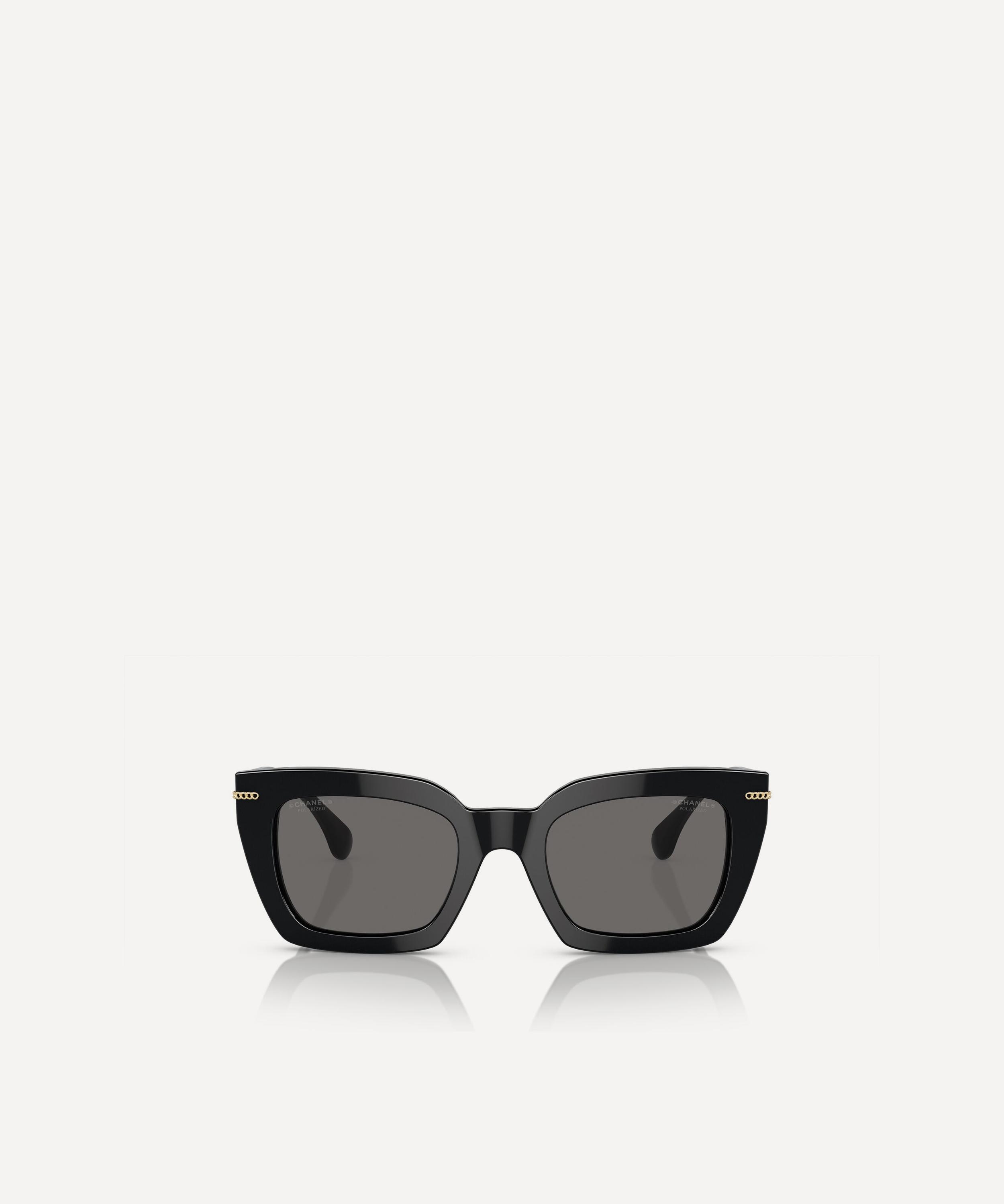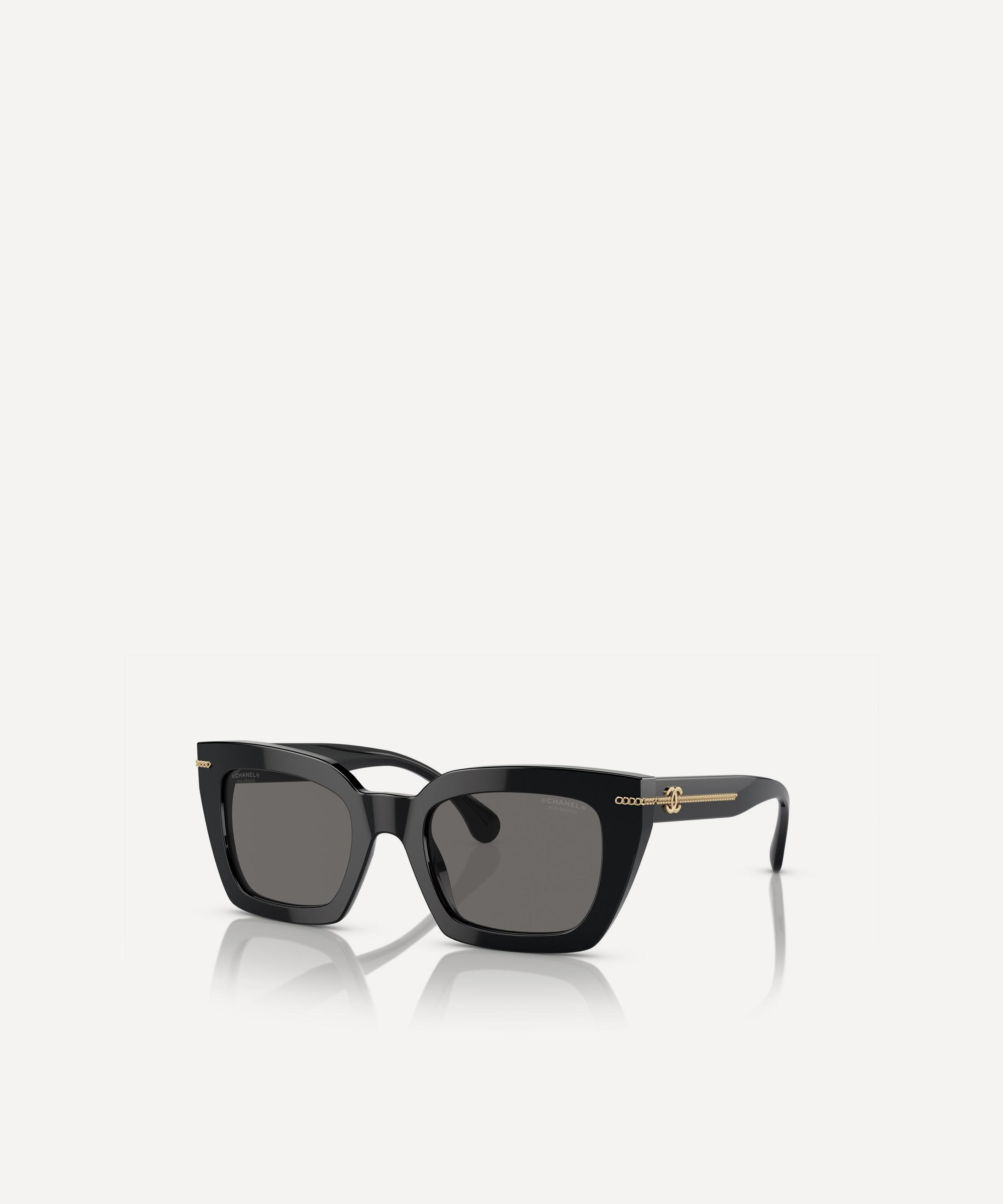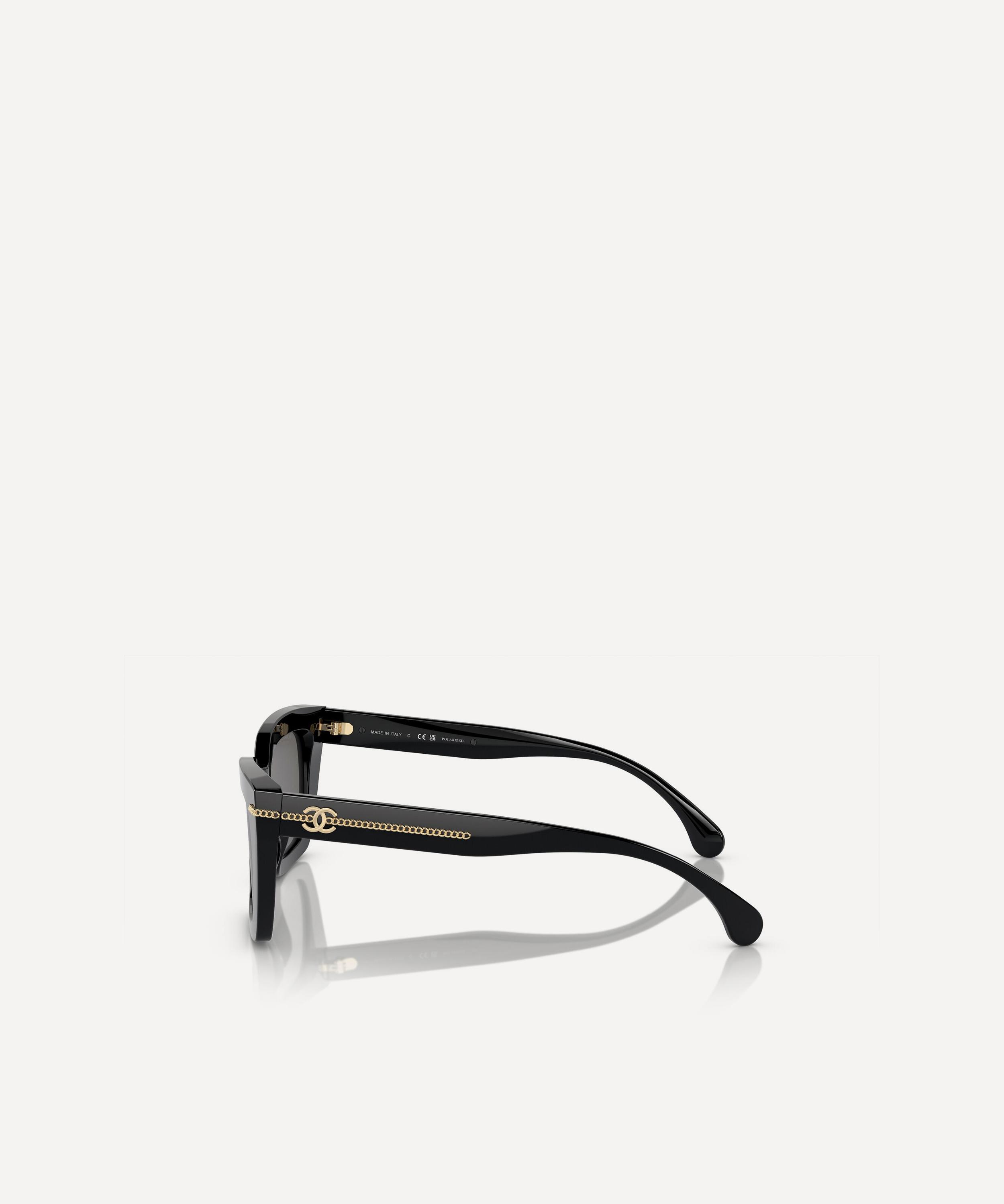 Add a touch of glamour to your everyday look with these square sunglasses from Chanel. Crafted from premium acetate in a black colourway, they feature a sleek silhouette with a comfortable saddle nose bridge and grey gradient lenses to protect your eyes from UV light. Complete with chain detailing and the iconic CHANEL emblem logo to the temples, style them with pulled-back hair to show off the details.