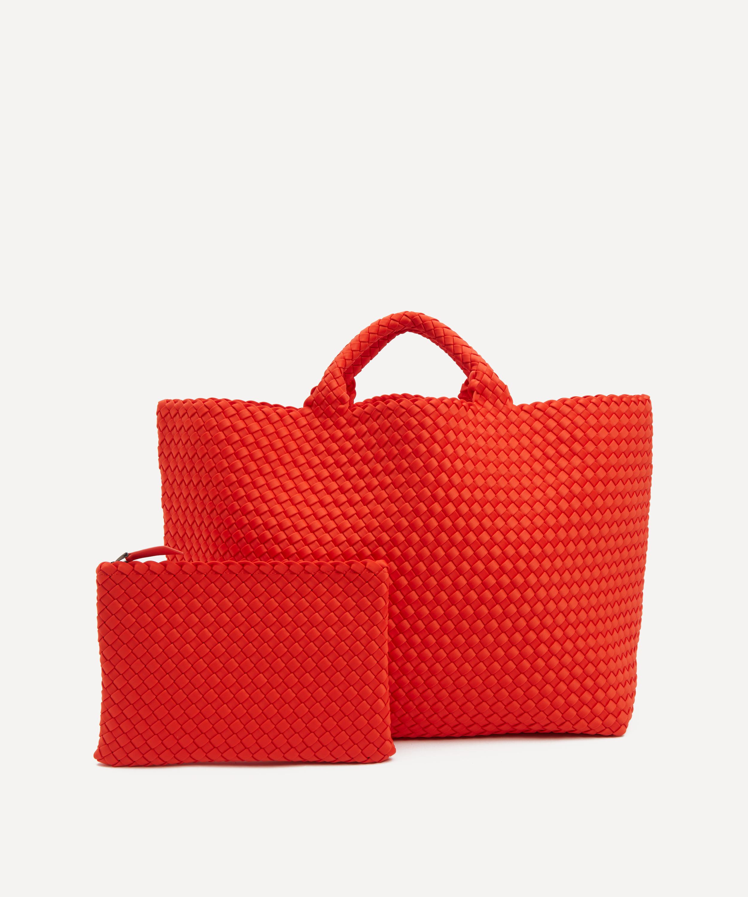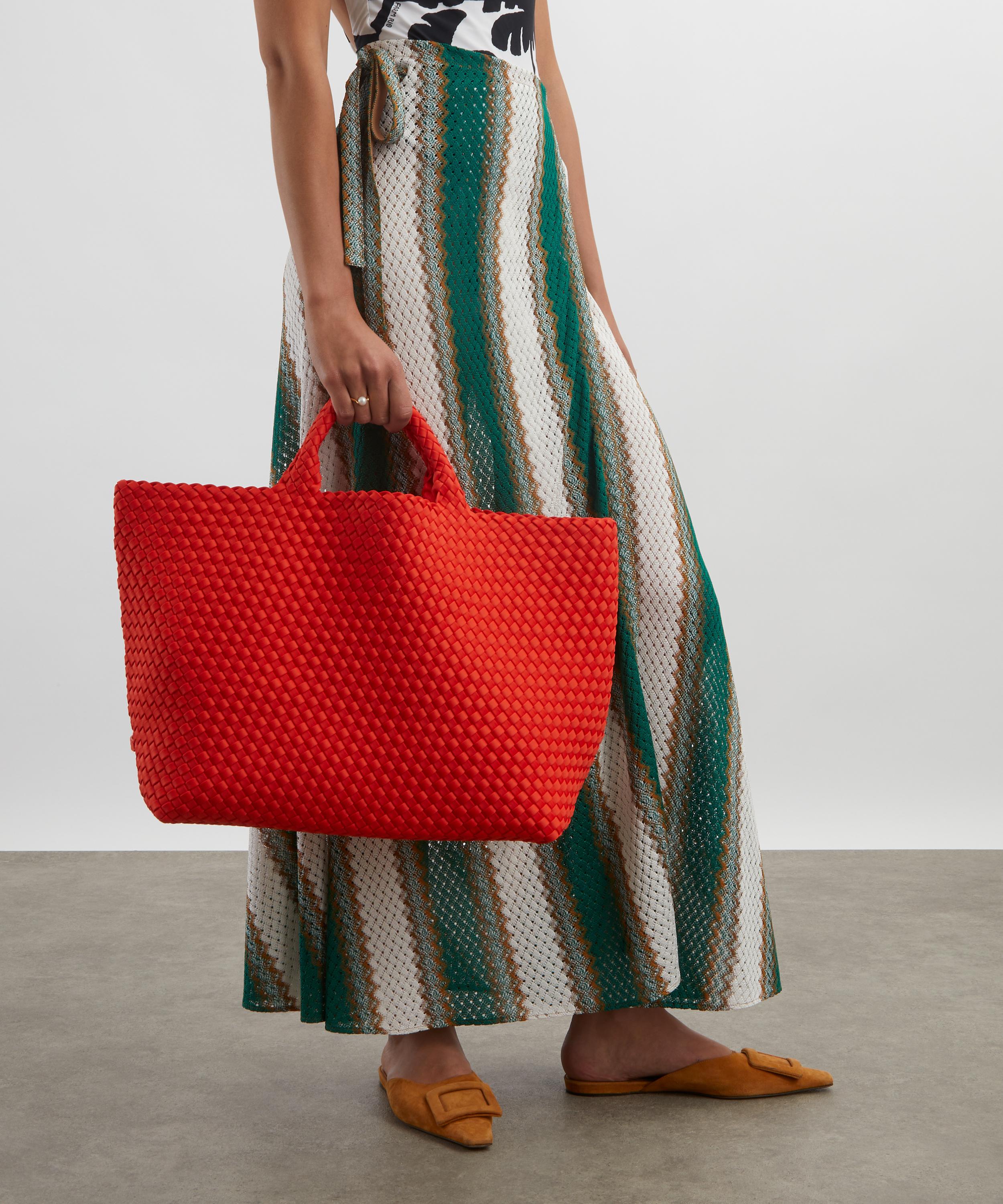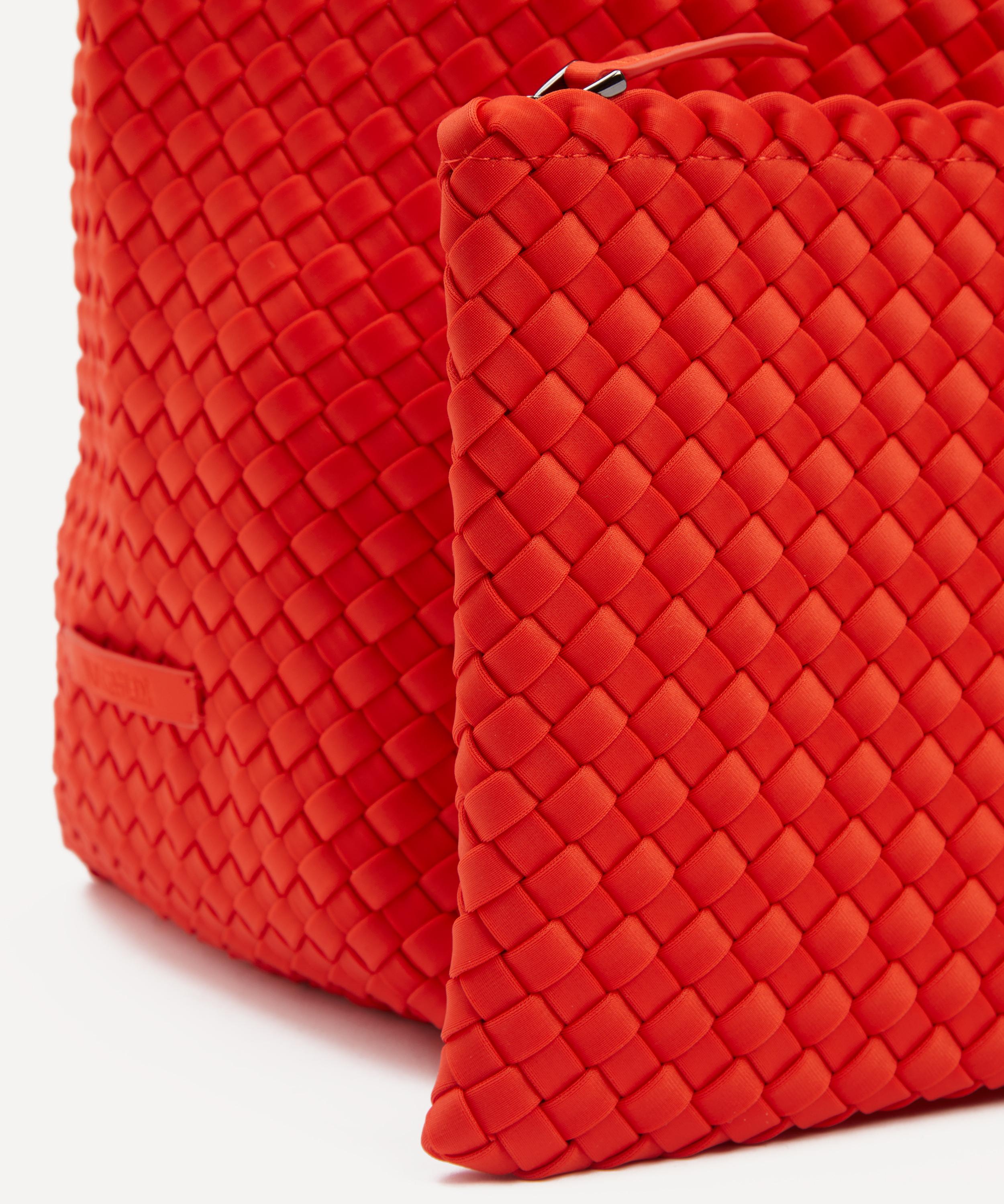 Crafted from durable neoprene fabric by skilled weavers, this stylish bag features a structured base with a spacious main compartment and a detachable zipped pouch to keep essentials handy and secure. Complete with two top handles, it’s set to become your new everyday companion, for this season and beyond.