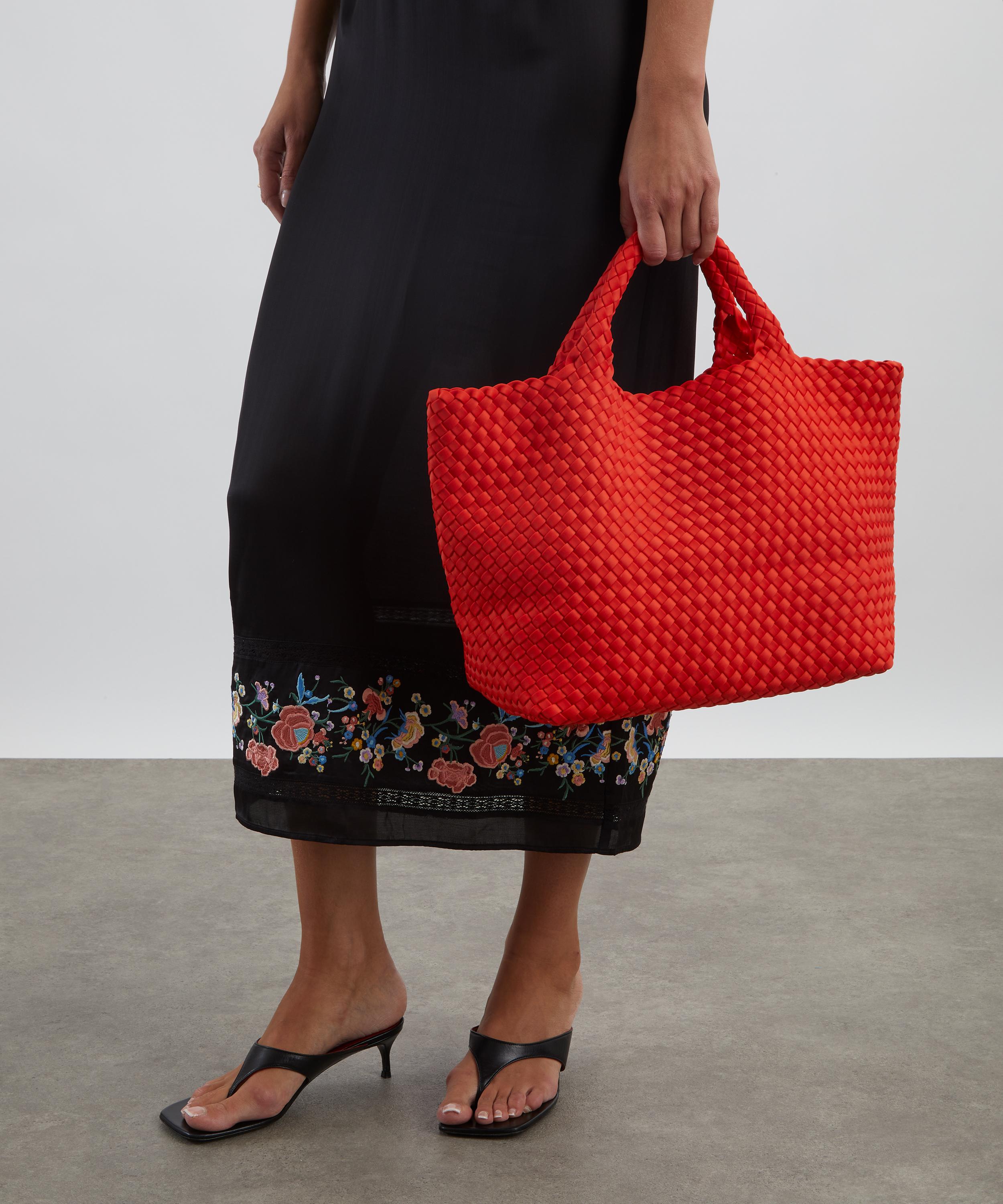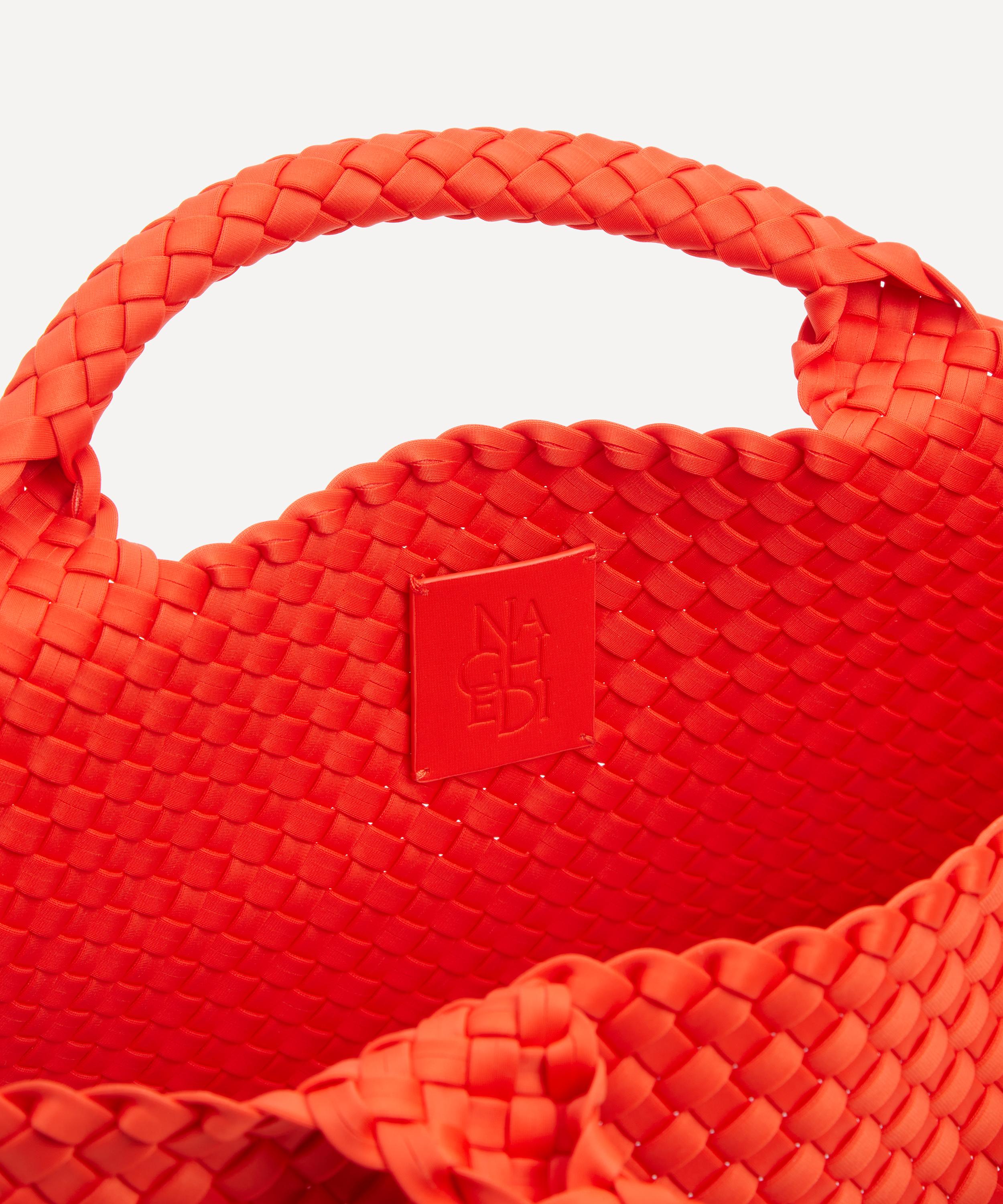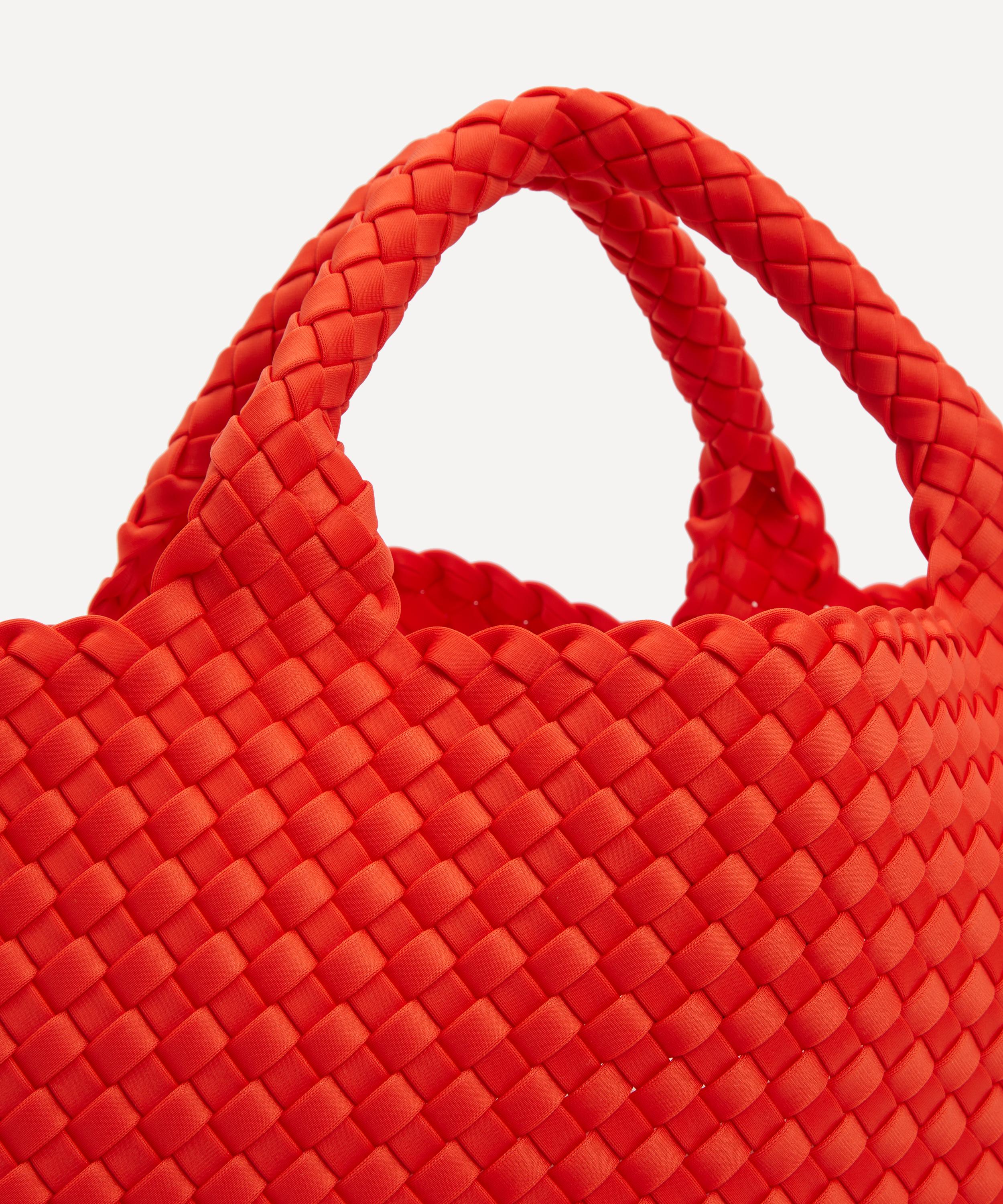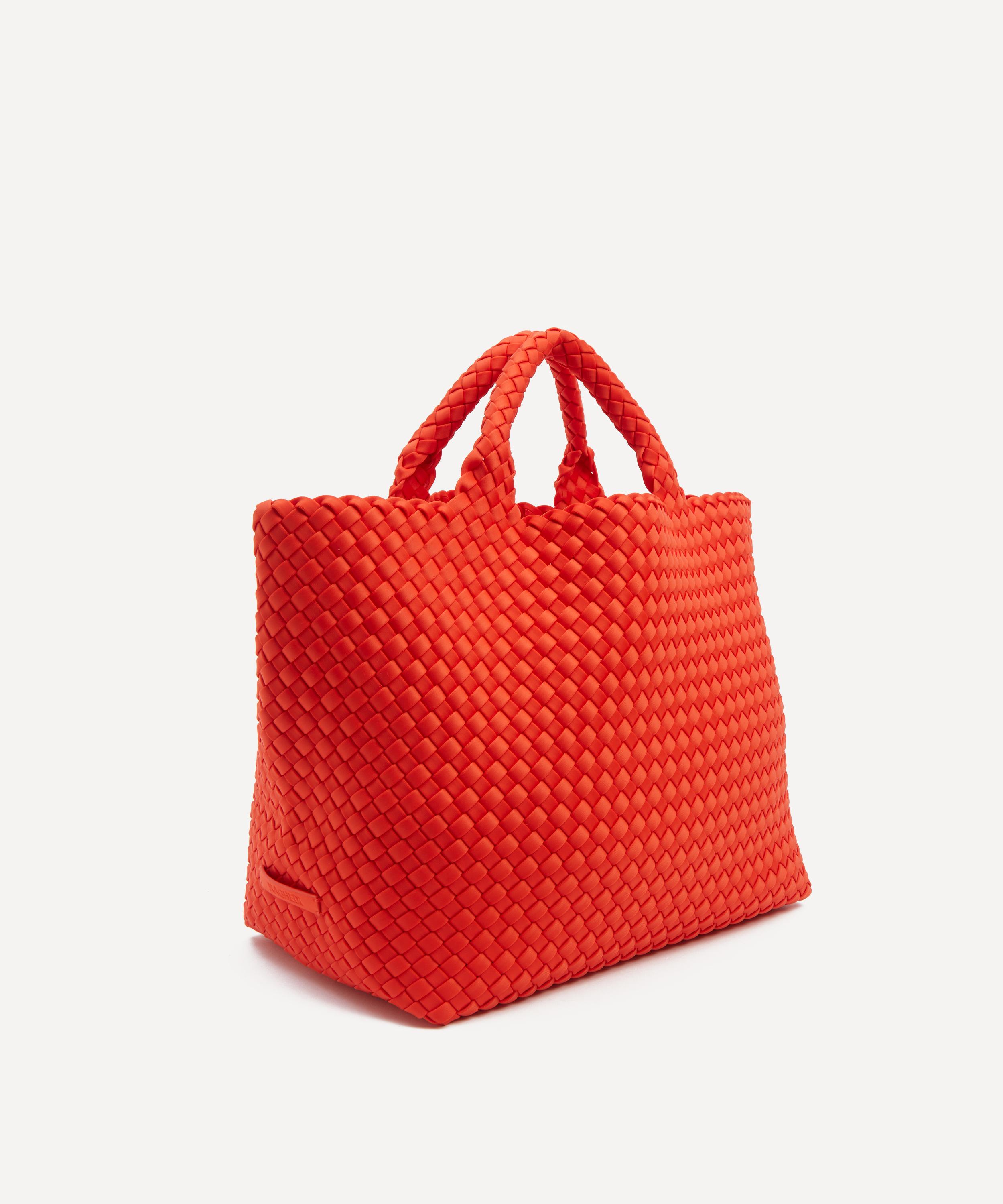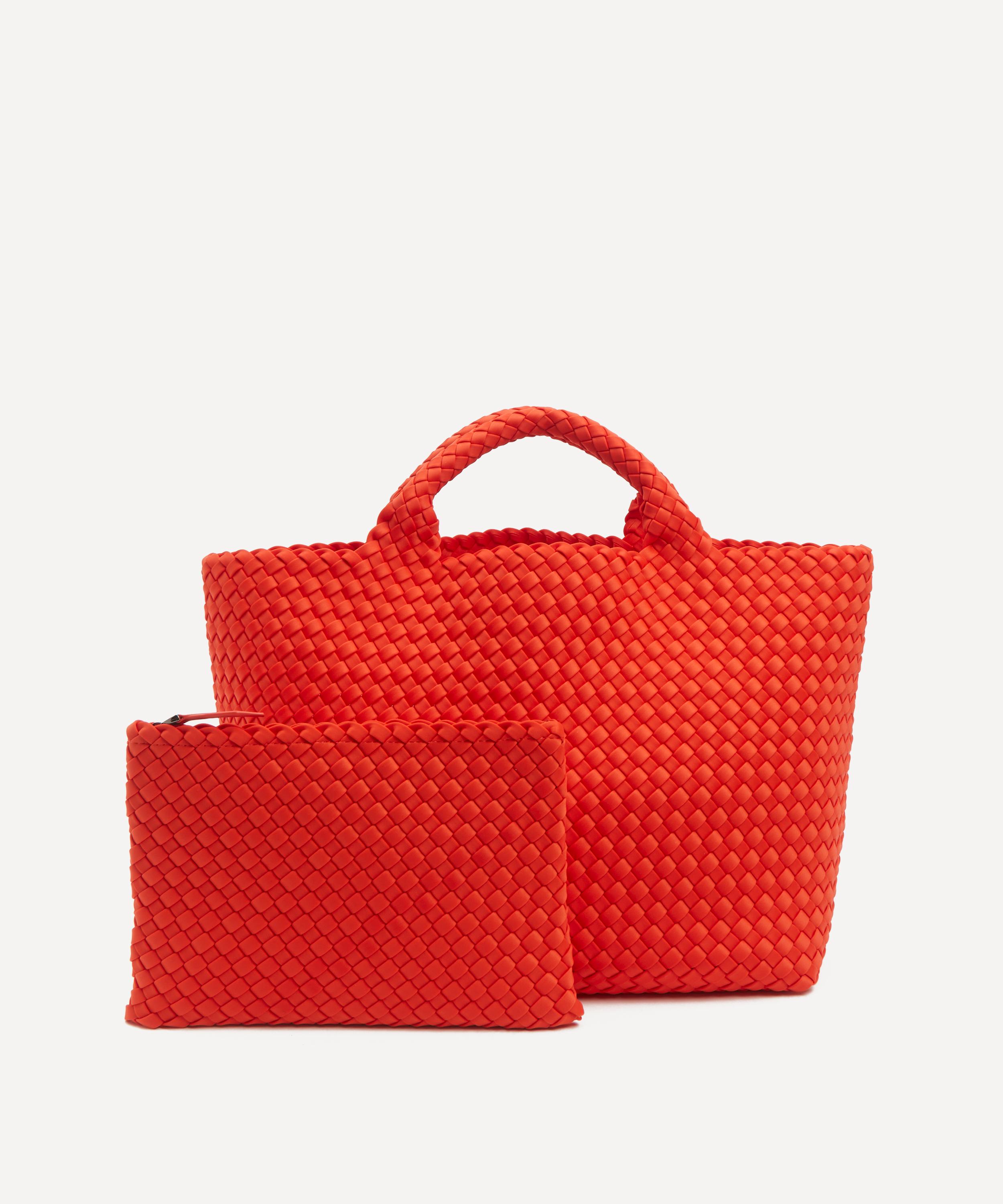 Crafted from durable neoprene fabric by skilled weavers, this stylish bag features a structured base with a spacious main compartment and a detachable zipped pouch to keep essentials handy and secure. Complete with two top handles, it’s set to become your new everyday companion, for this season and beyond.