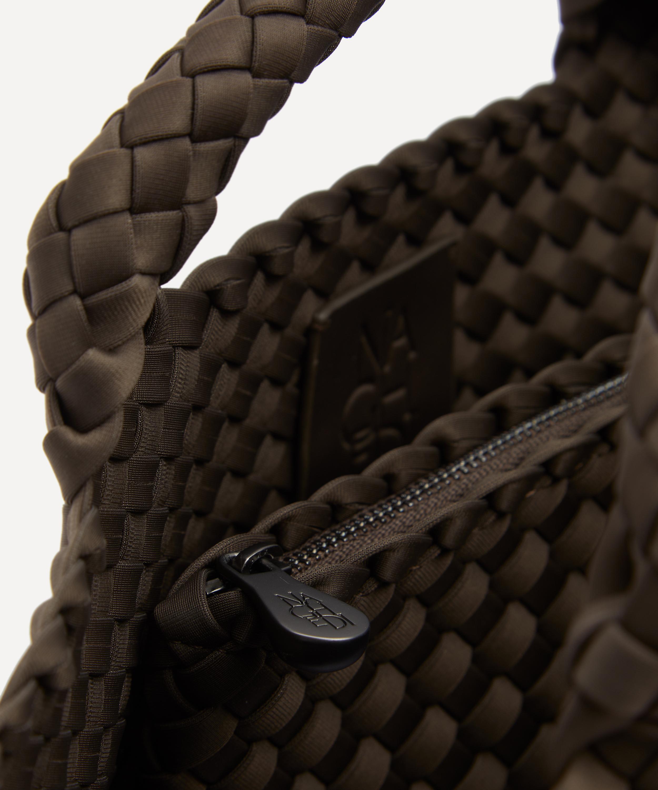 Crafted from neoprene fabric by skilled weavers, this versatile bag features a structured base with a spacious main compartment and a detachable zipped pouch to keep essentials handy and secure. Complete with two top handles and detachable cross-body strap, it’s set to become your new everyday companion, for this season and beyond.