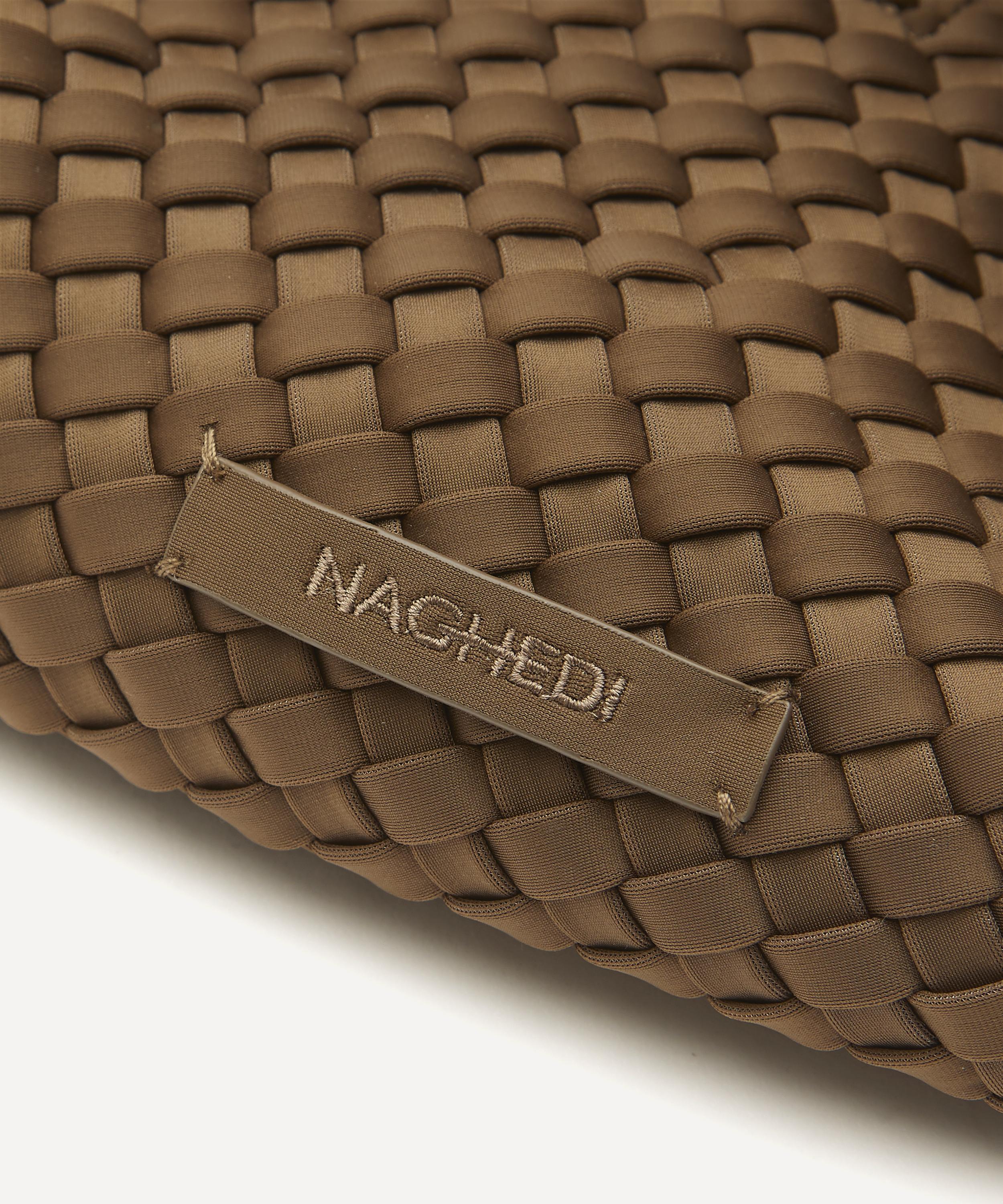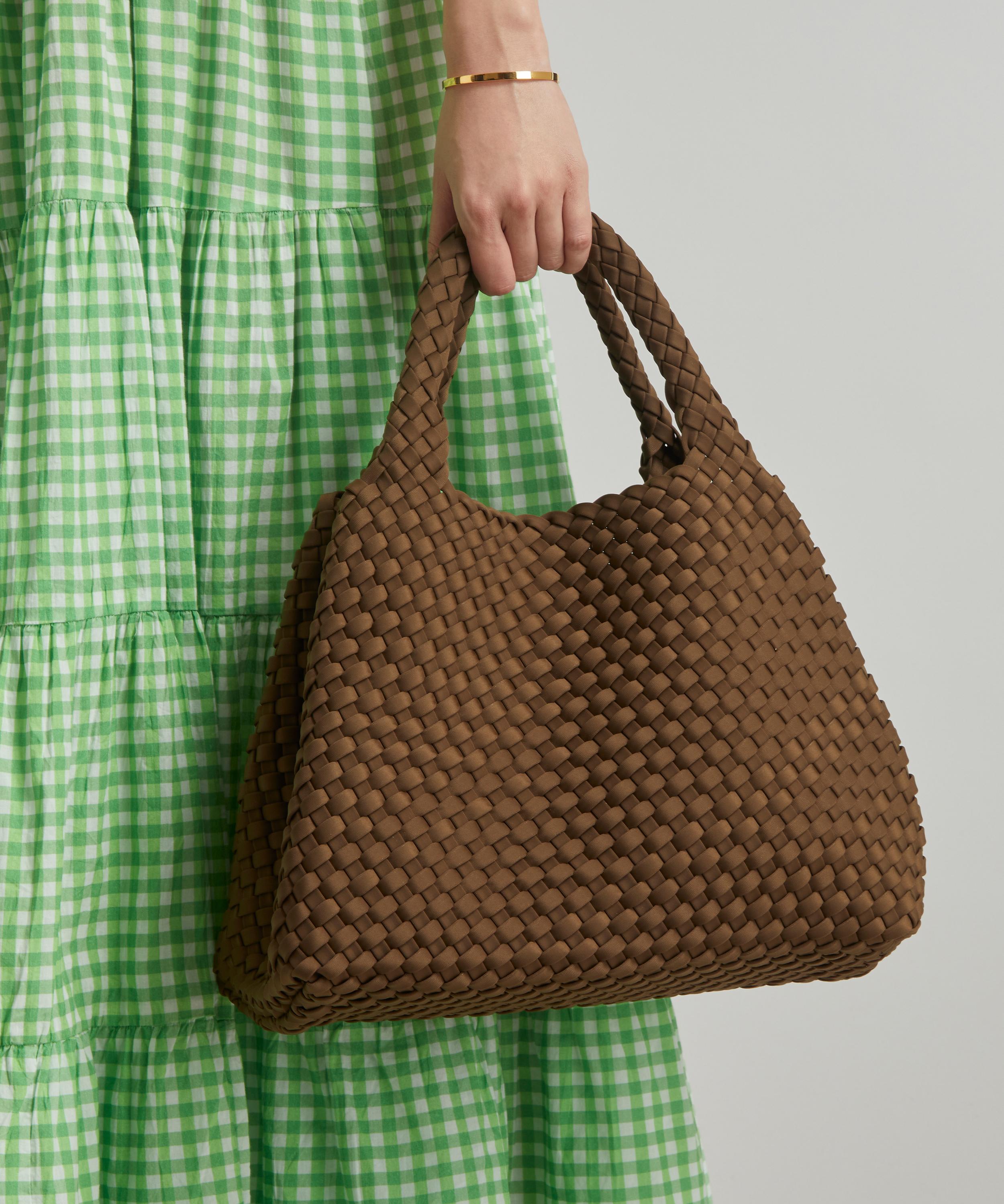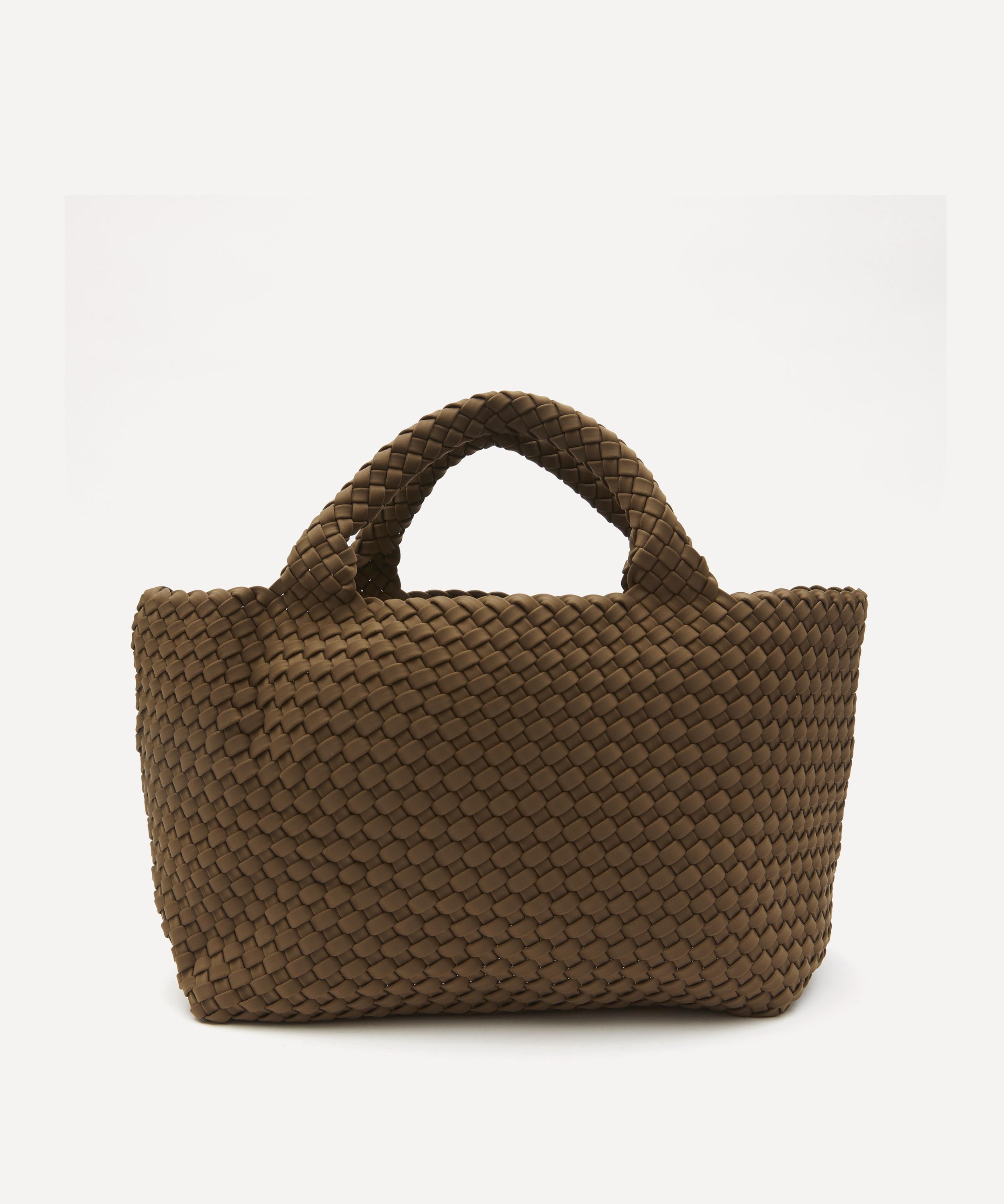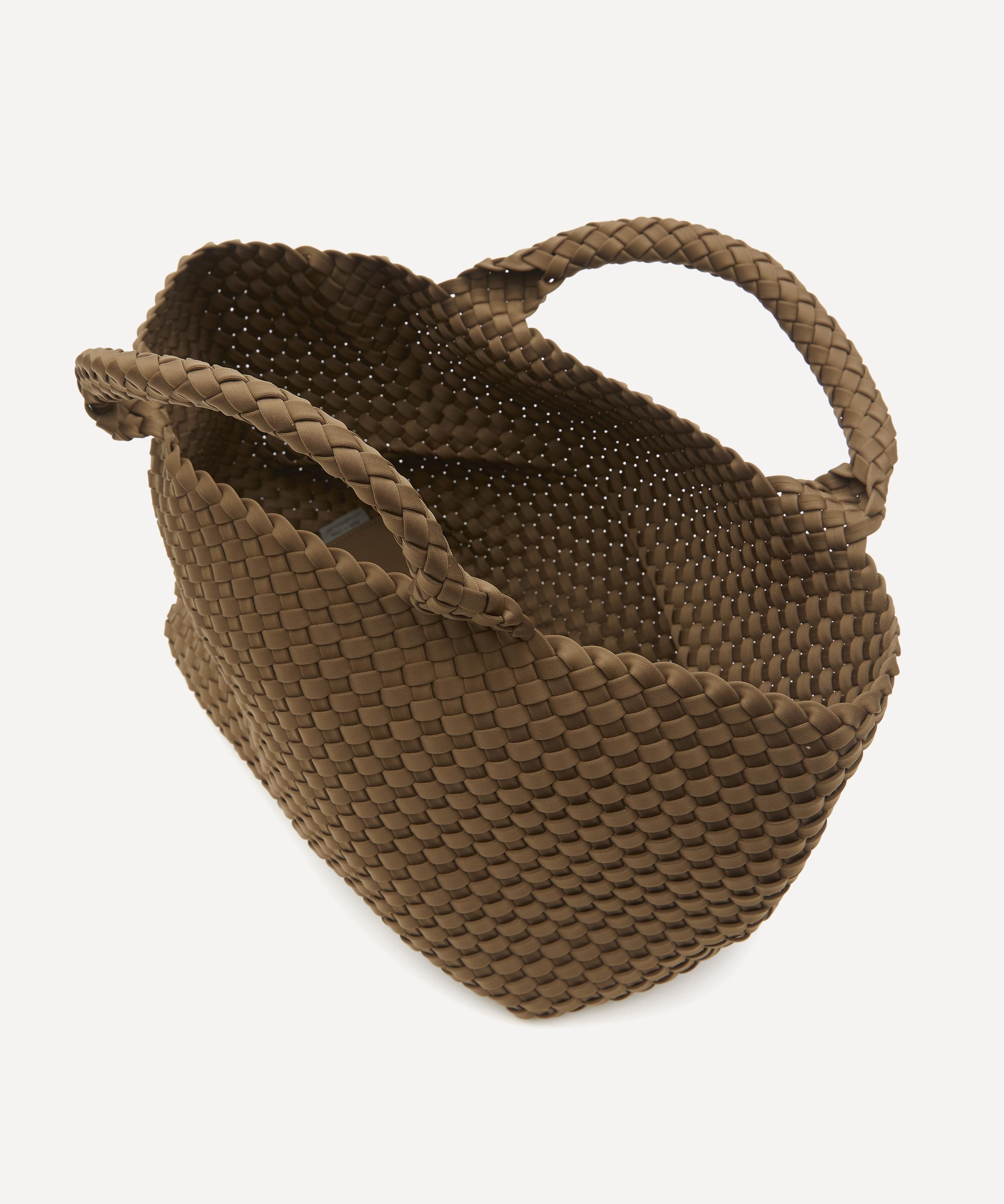 The medium St. Barths tote bag is hand-woven from durable neoprene fabric by New York-based accessories brand Naghedi.