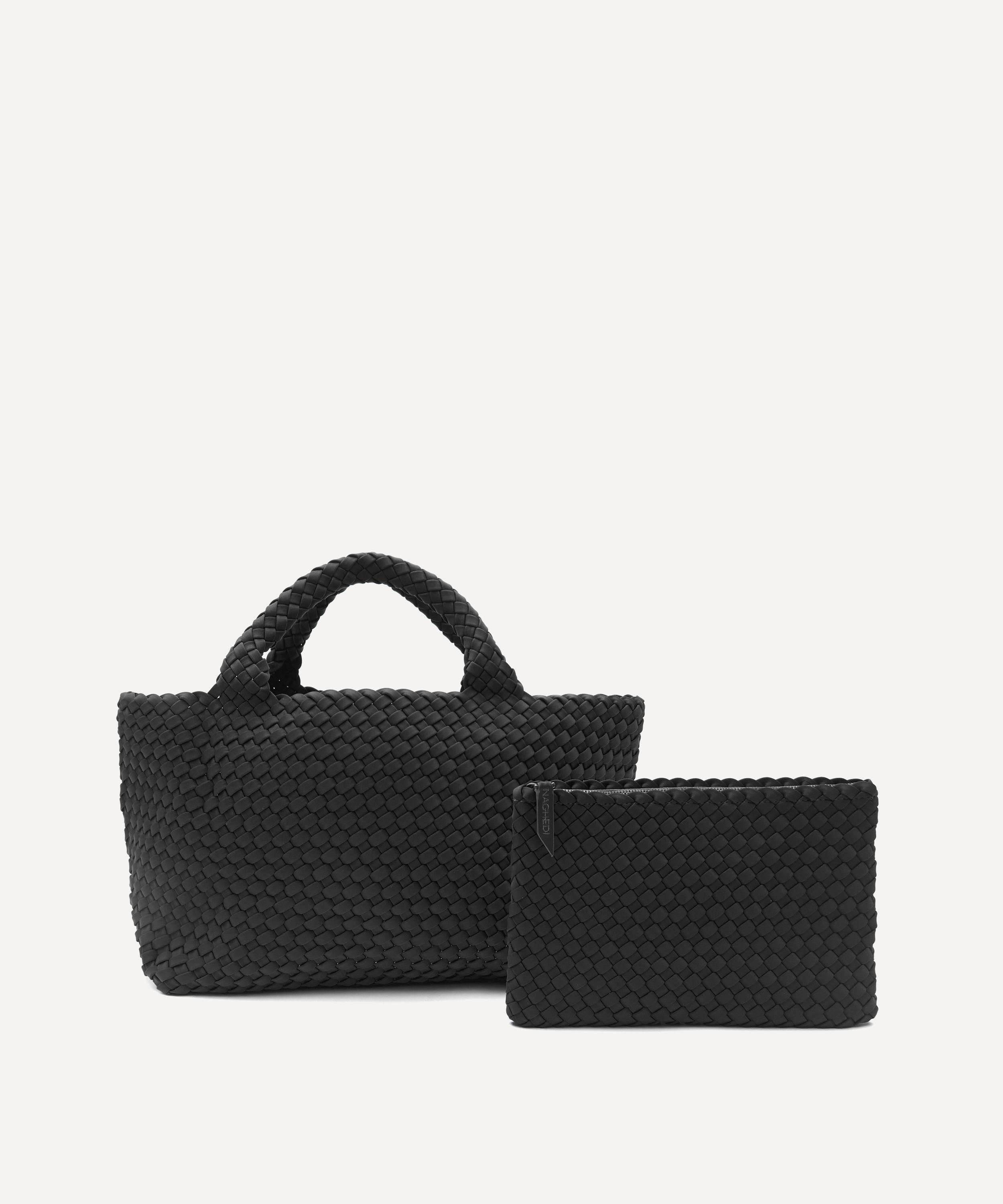 The medium St. Barths tote bag is hand-woven from durable neoprene fabric by New York-based accessories brand Naghedi.