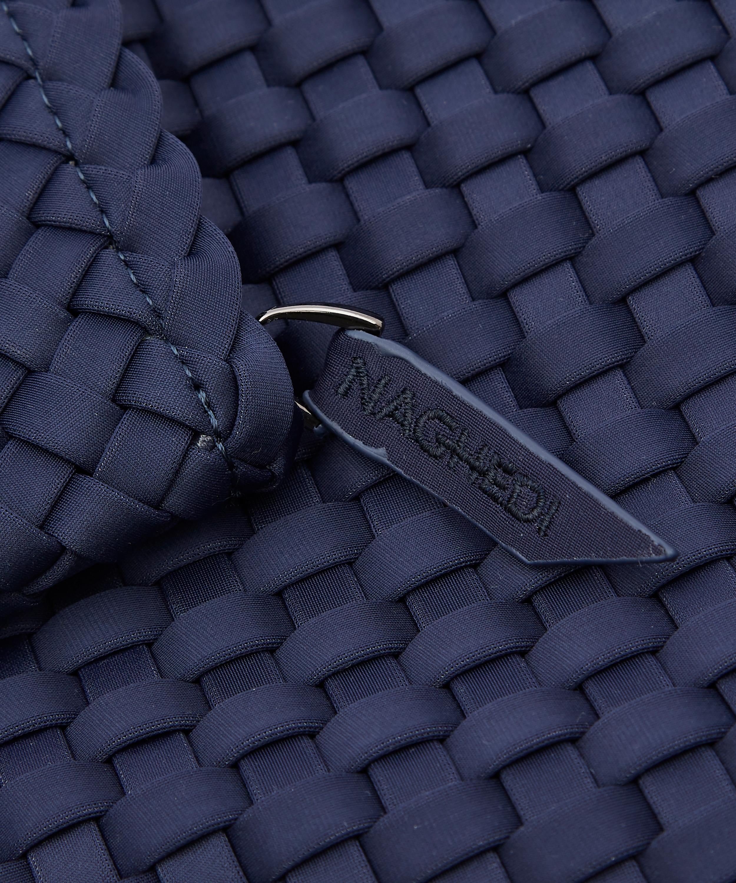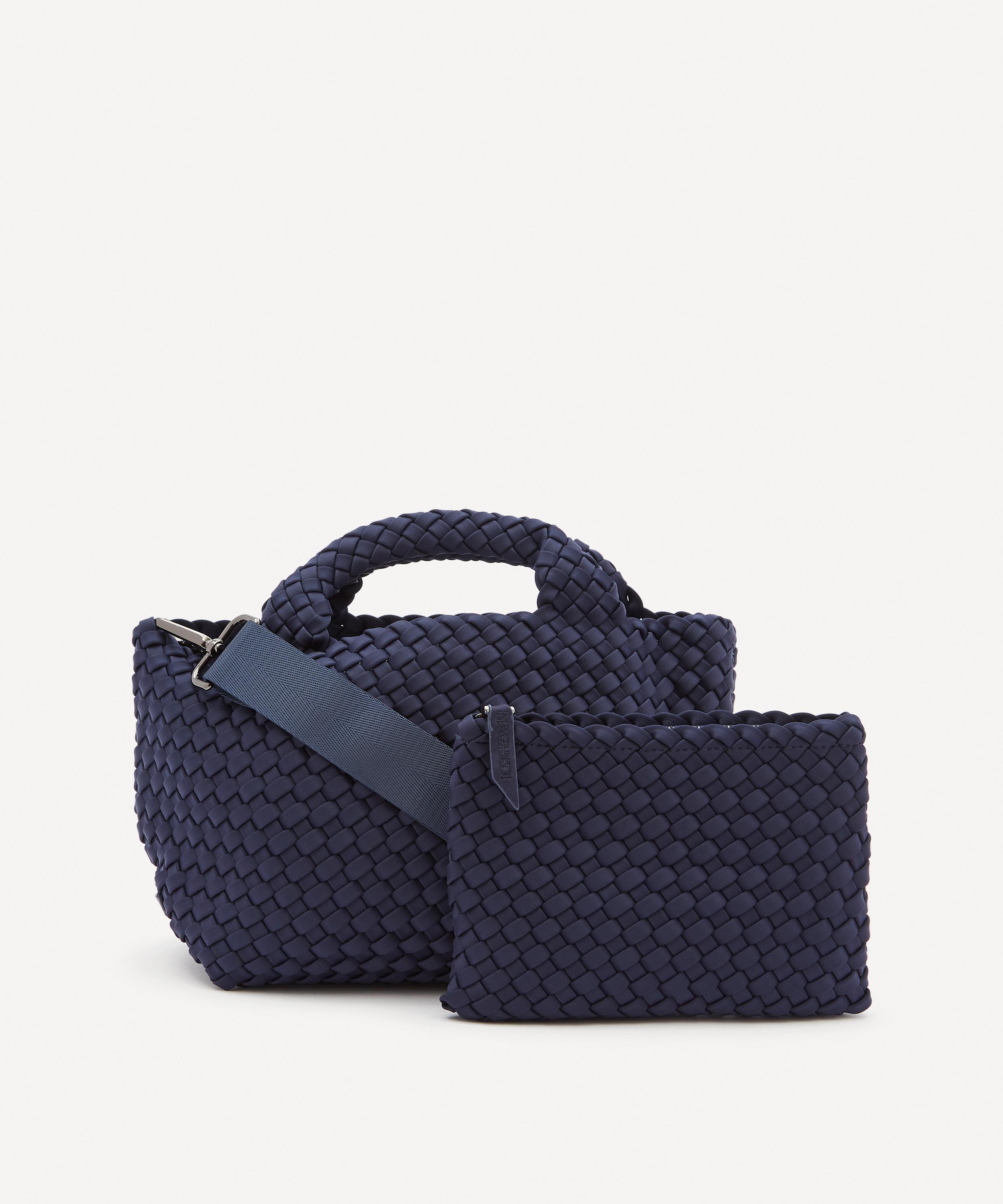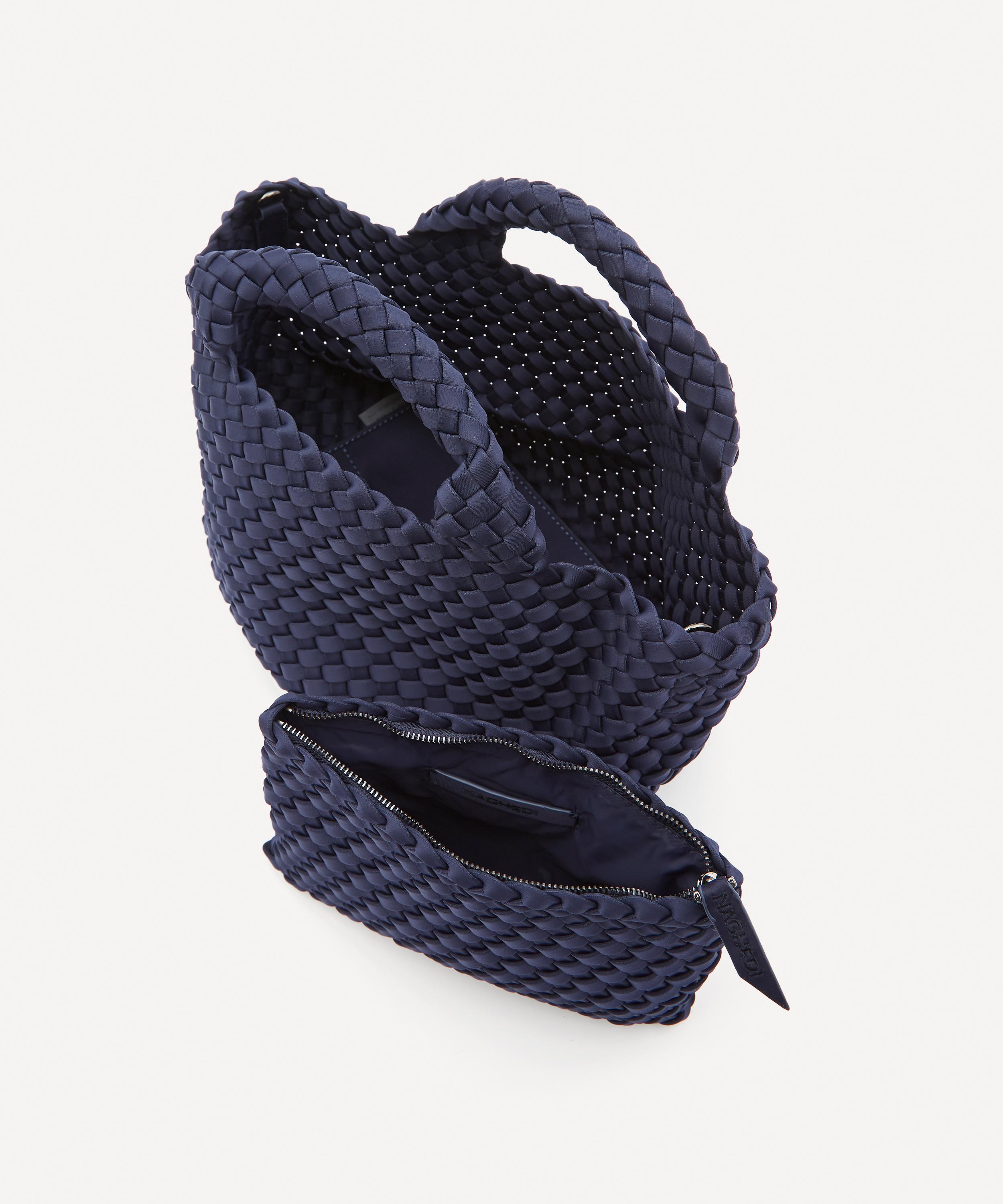 The mini St. Barths tote bag is hand-woven from durable neoprene fabric by New York-based accessories brand Naghedi.