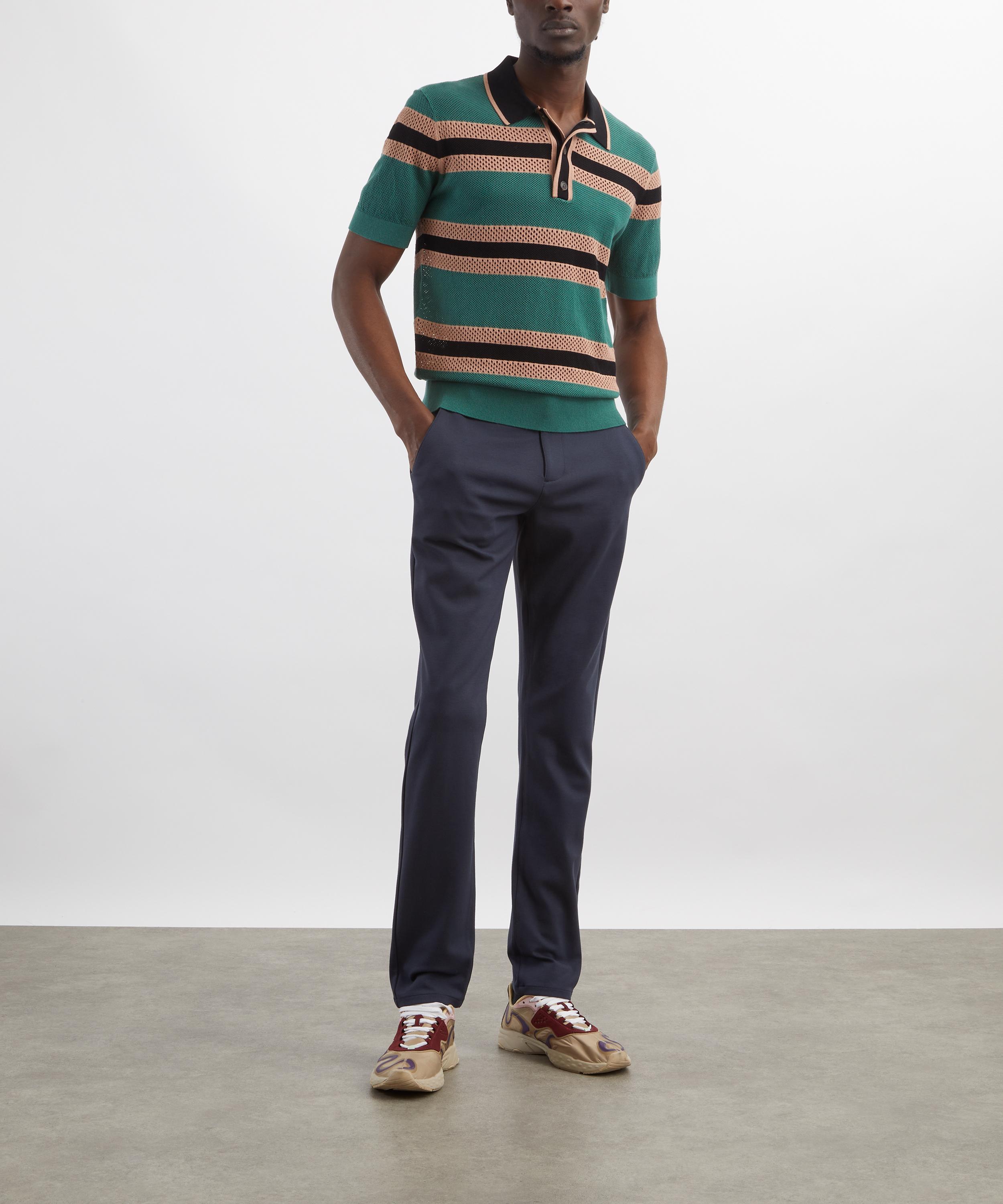 An effortlessly modern trouser, the Stafford is tailored through the thigh and tapered from the knee to the leg opening for a sleek silhouette. Crafted from TRANSCEND KNIT performance hybrid fabric - featuring three super-stretch fibres knitted together - it delivers exceptional comfort with a refined appearance. Finished in a versatile navy, this pair is detailed with rubberised buttons and back welt pockets.