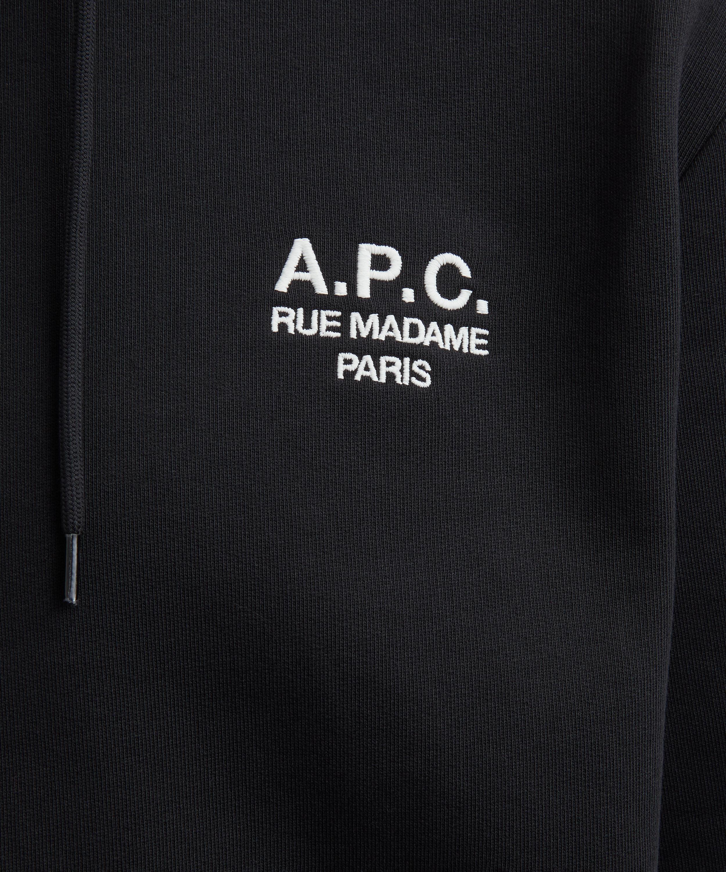 Crafted from cotton, this straight-cut hoodie features minimal detailing, highlighted by ‘A.P.C. Rue Madame Paris’ embroidery on the chest for a signature touch.