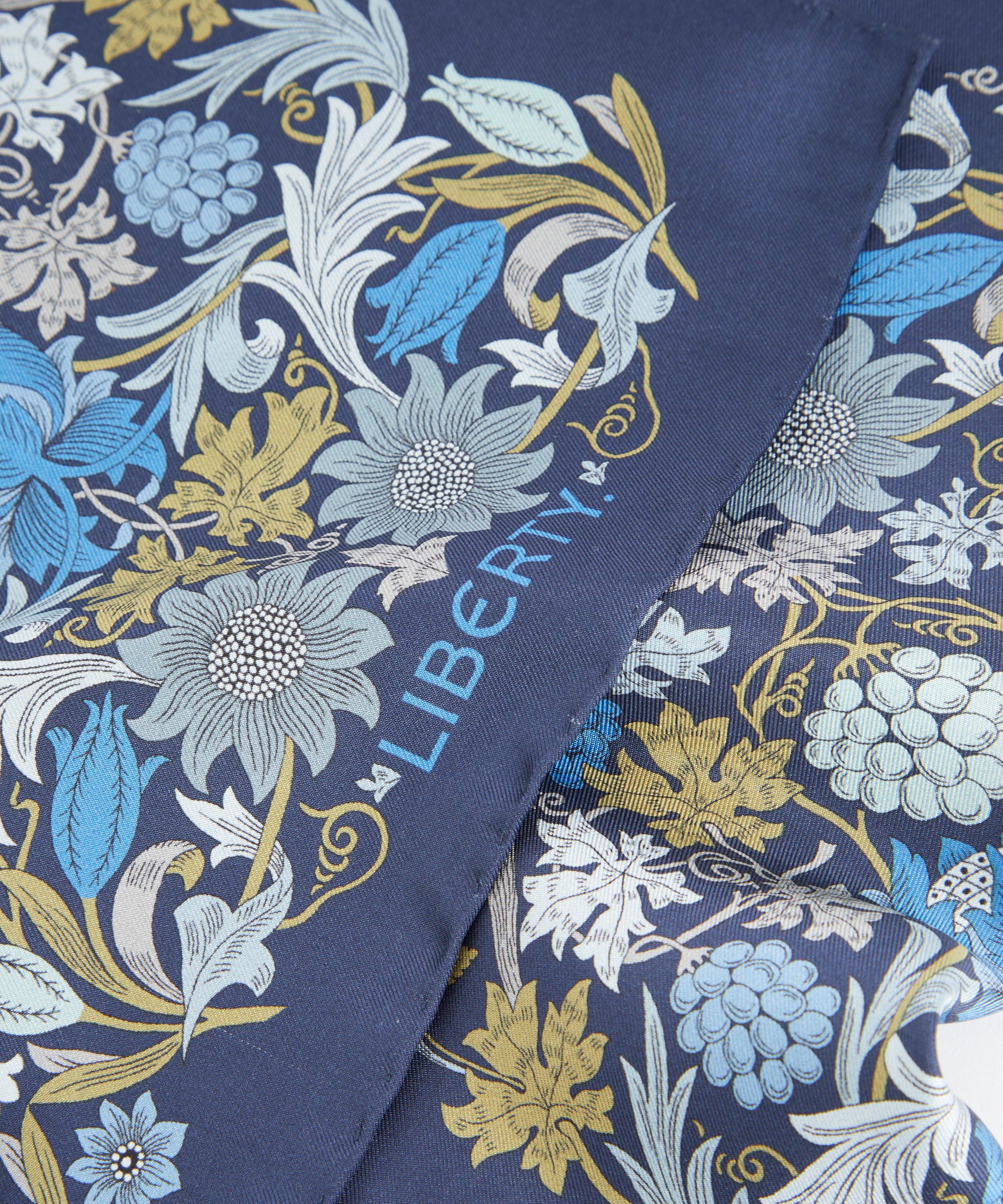Liberty’s pocket square is printed in a historic factory in Macclesfield, Cheshire – the ancestral home of British silk production, and the site of a collaboration with Liberty that has lasted for several decades. Crafted from pure silk with hand-rolled hems and a signature logo in one corner, it’s dressed in our Standen print – featuring a rescaled and recoloured iteration of William Morris Sunflower wallpaper, it spotlights a mesmerising combination of vine leaves, grapes, tulips, and glorious sunflowers. Style it in the pocket of a favourite blazer or jacket to add a pop of print to formalwear or your work edit.