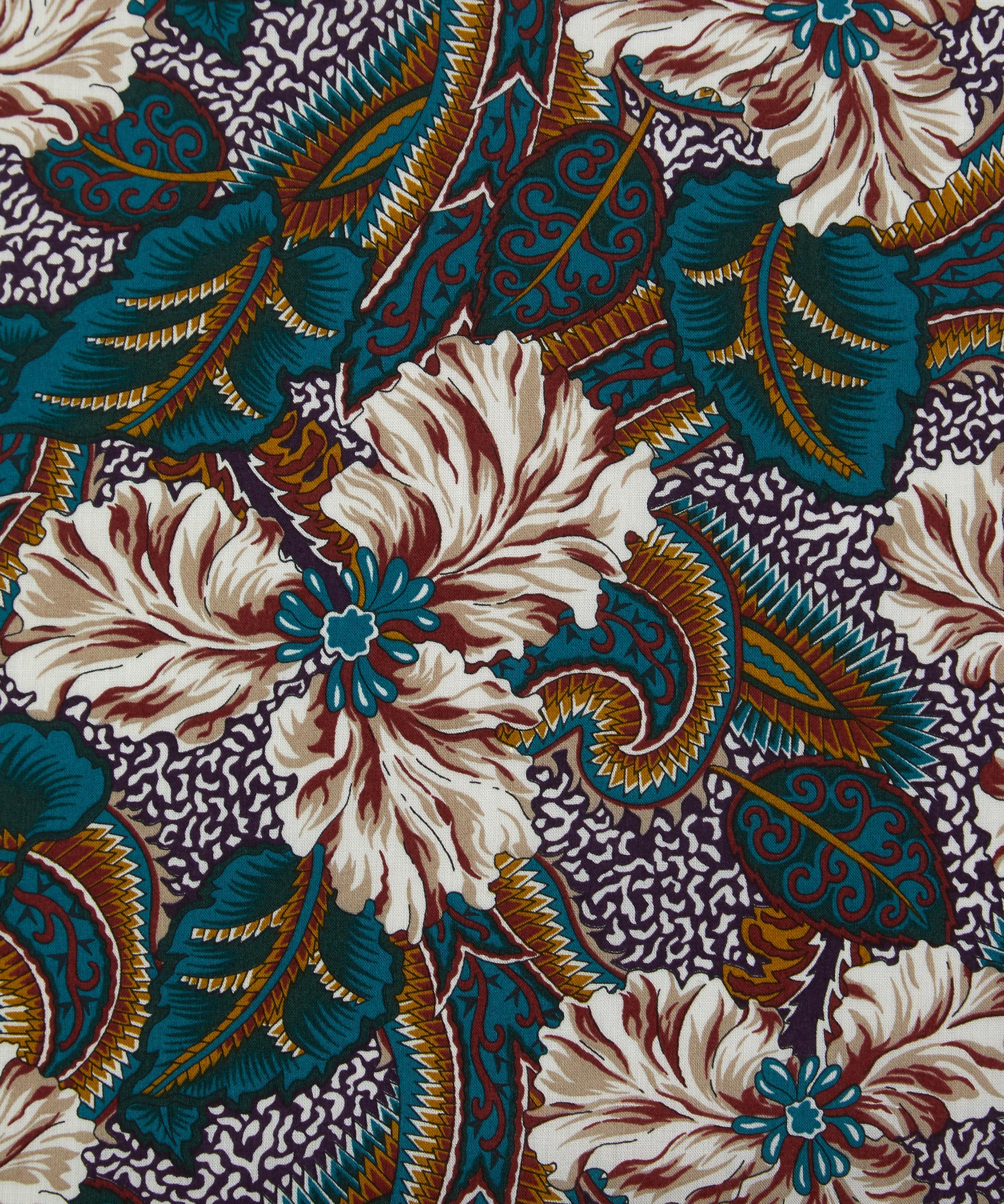 This floral print was originally created in 1989, featuring large-scale iris petals, intricate ornamental leaves and a densely abstract background pattern – a rush of botanical beauty.