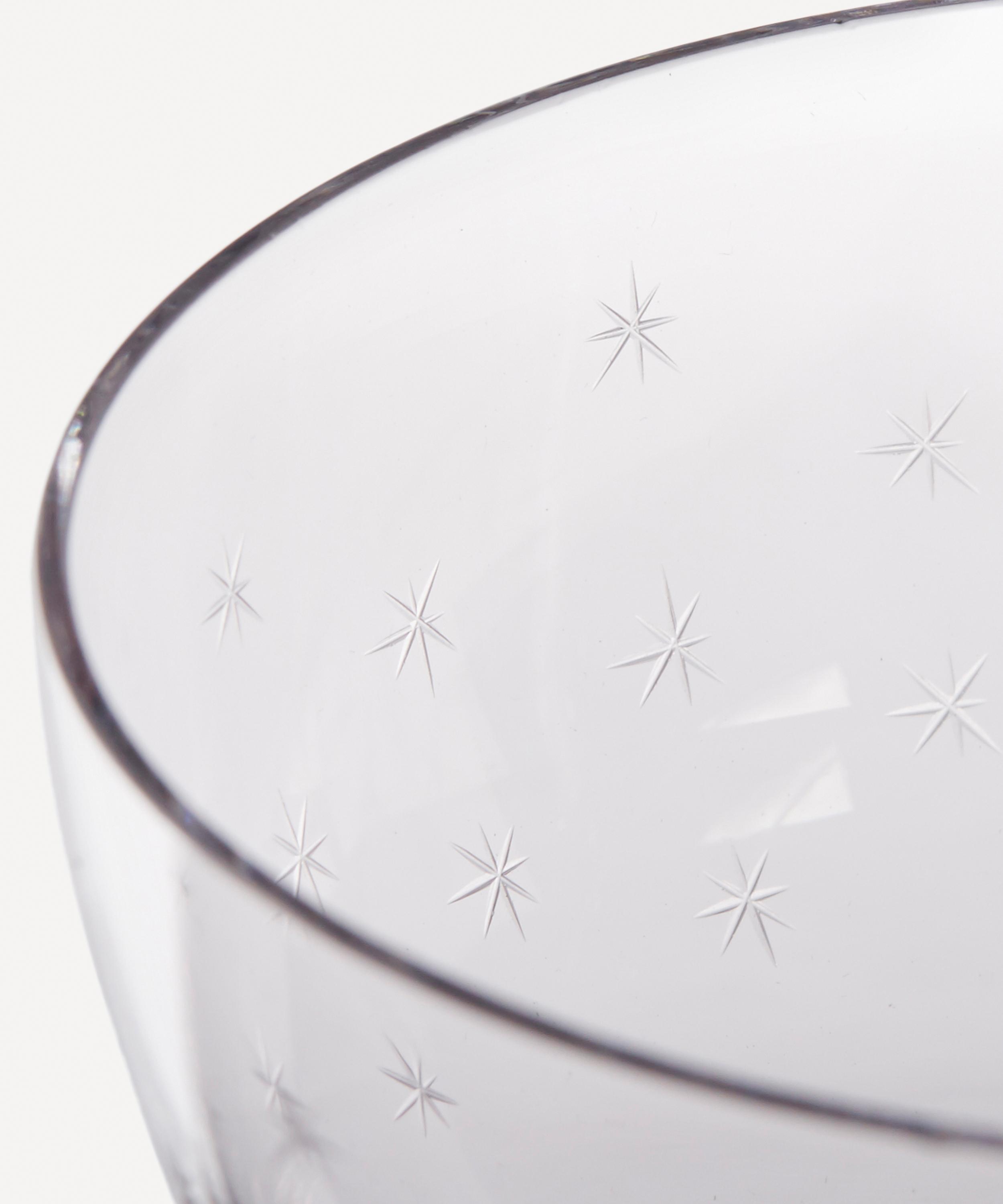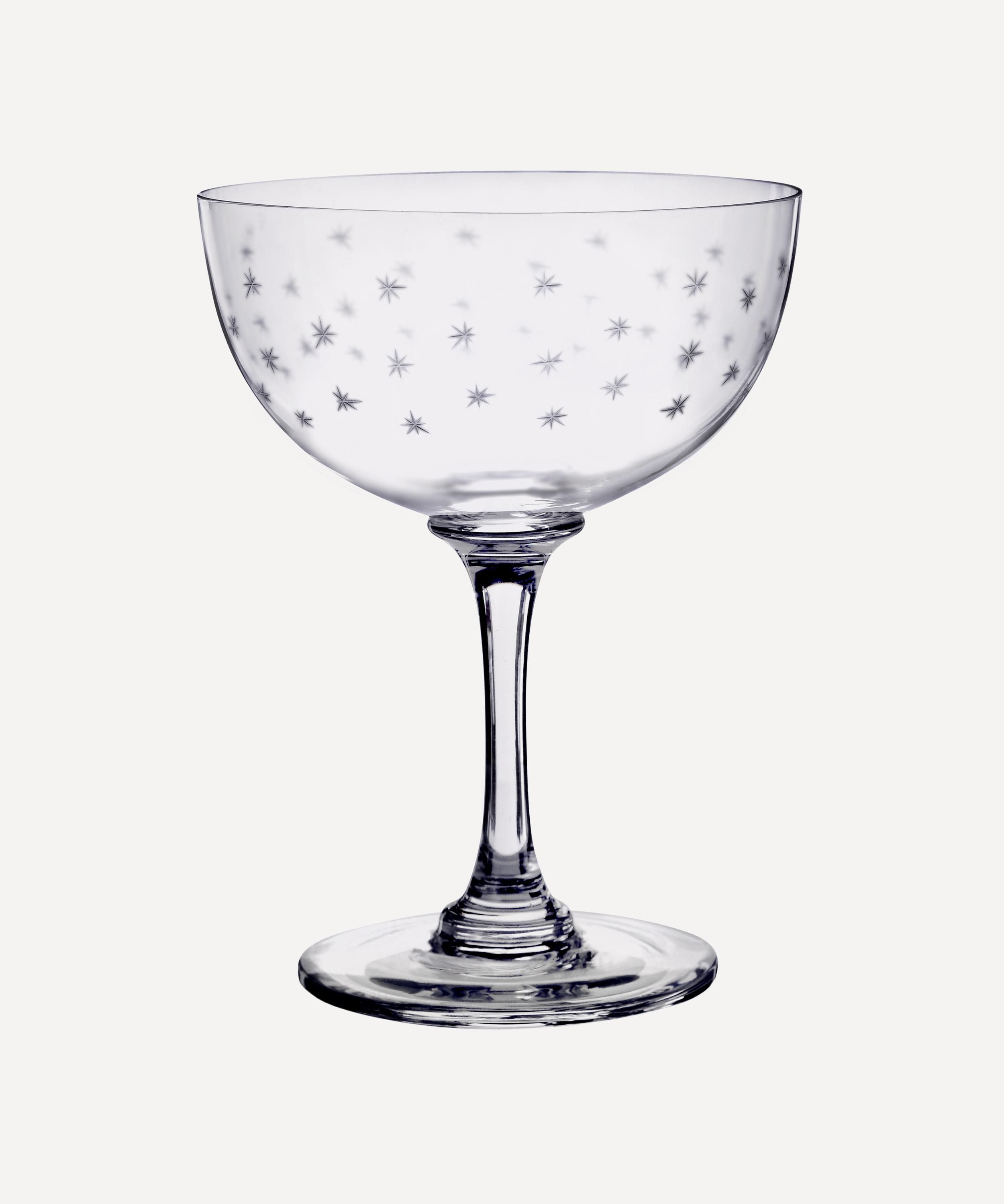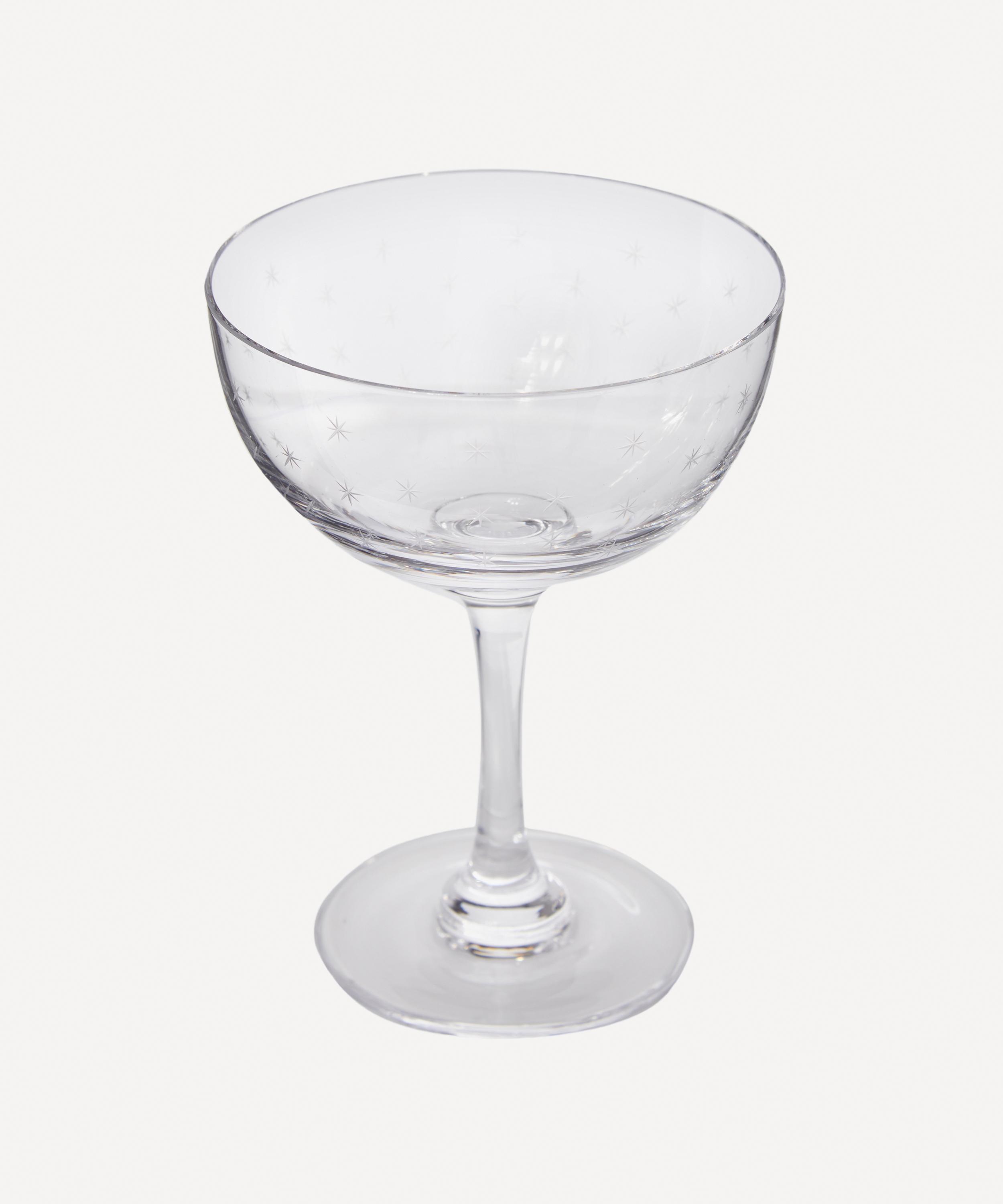 Staying true to the brand’s penchant for British heritage, The Vintage List’s champagne coupes are inspired by 19th-century and early 20th-century English glassware. They provide a timeless aesthetic for modern dining, with each piece blown and engraved by hand and finished with a decorative stem base and intricate, hand-cut stars.