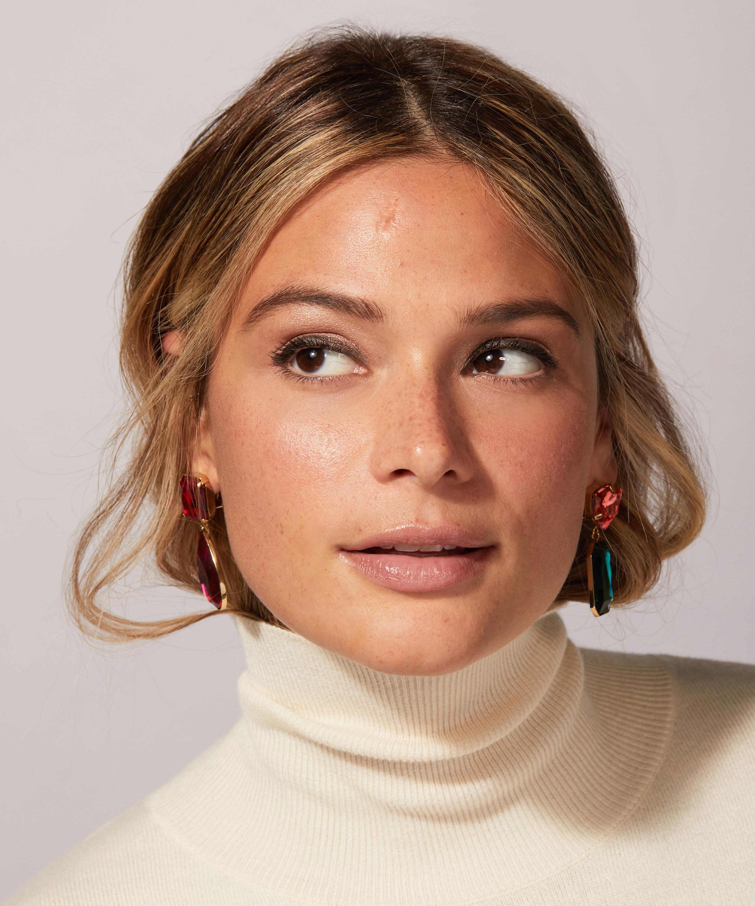 With a fluffy brush or your finger, blend The Best Eyeshadow on your upper lid. Glide The Best Pencil across your lash line. Dab Just a Sec in the centre and corners of your eyes. Finish by smoothing Cool Gloss across your lips.