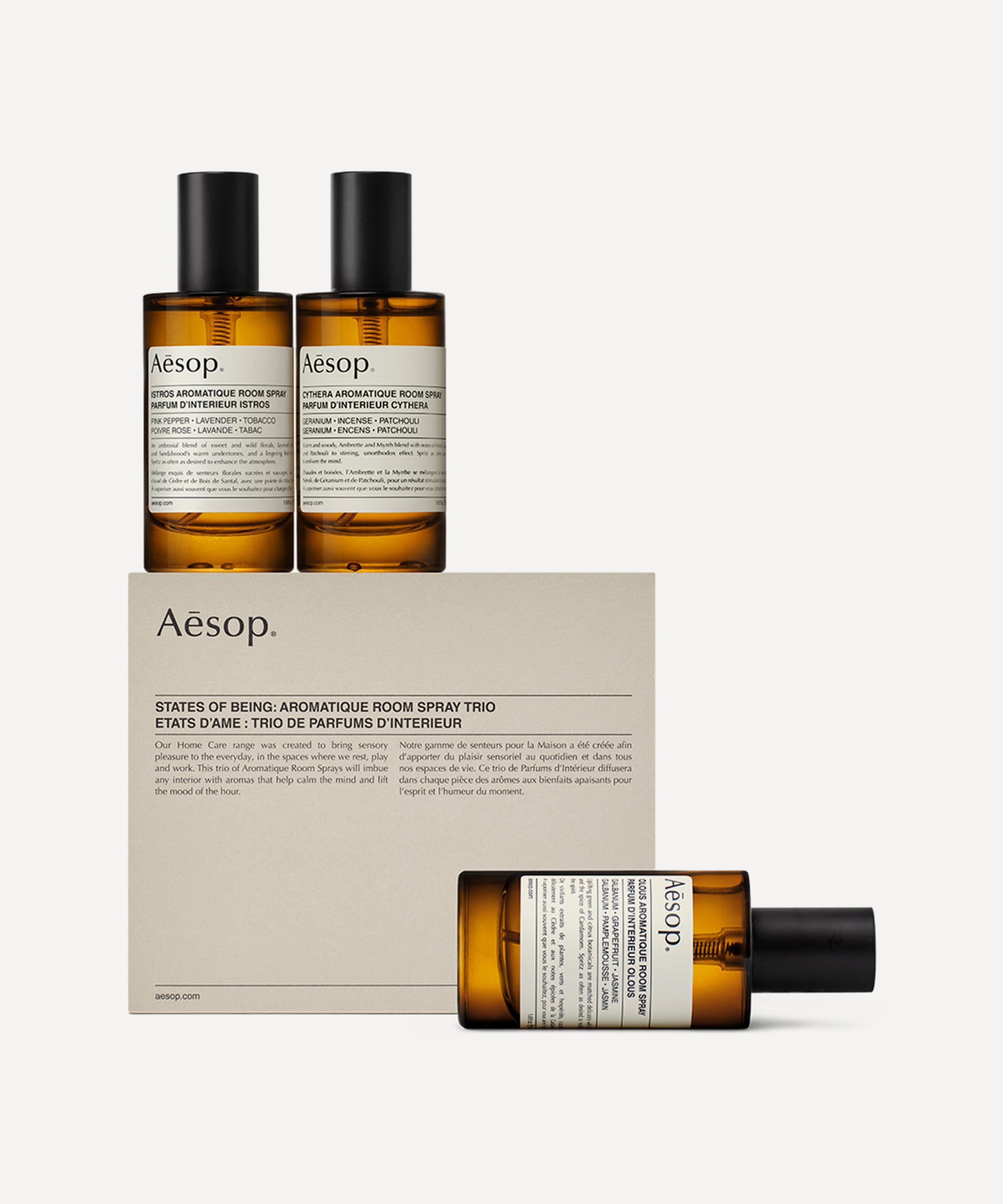 Designed to enhance interiors, Aesop's States of Being: Aromatique Room Spray Trio brings sensory pleasure to your everyday routine.