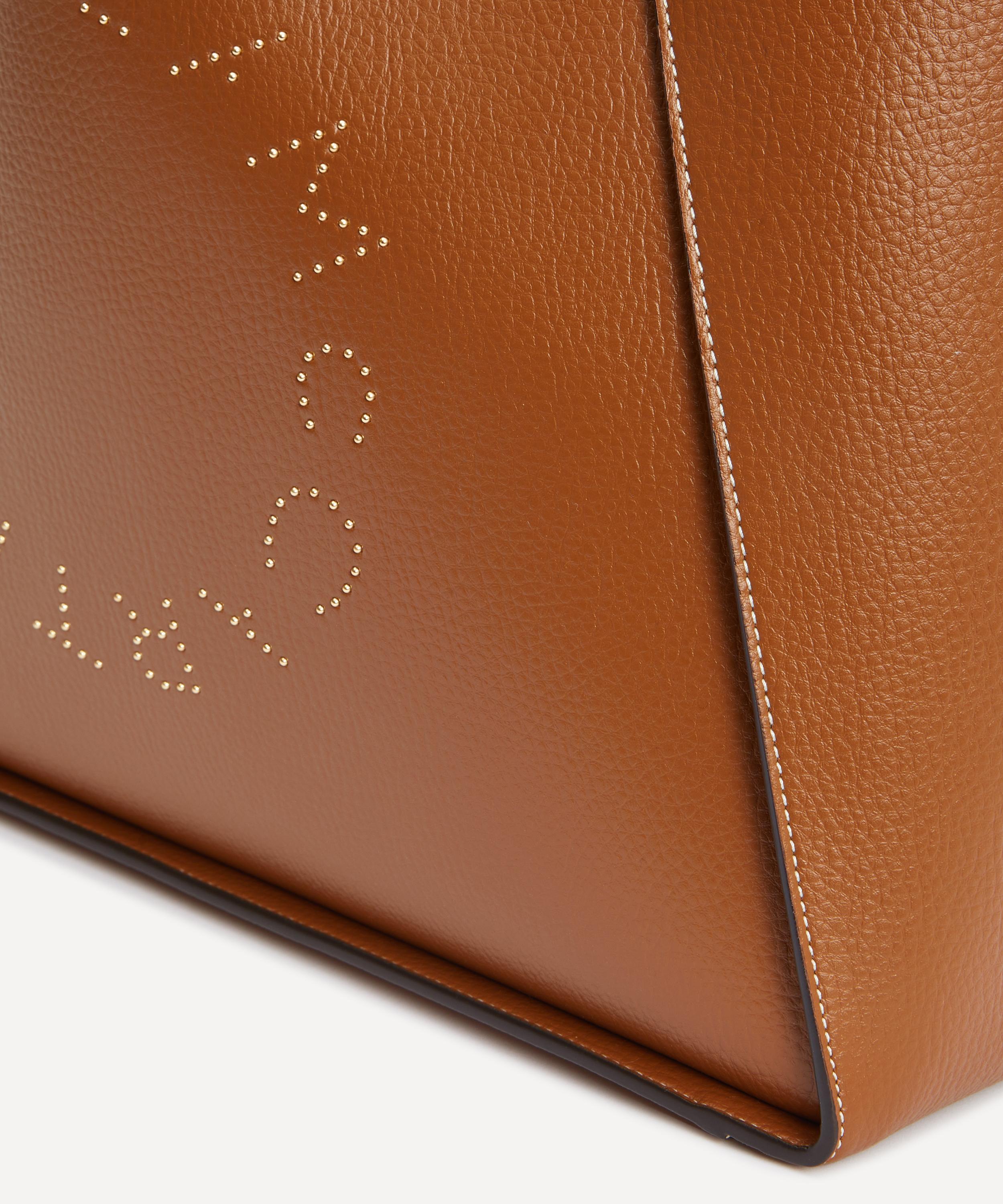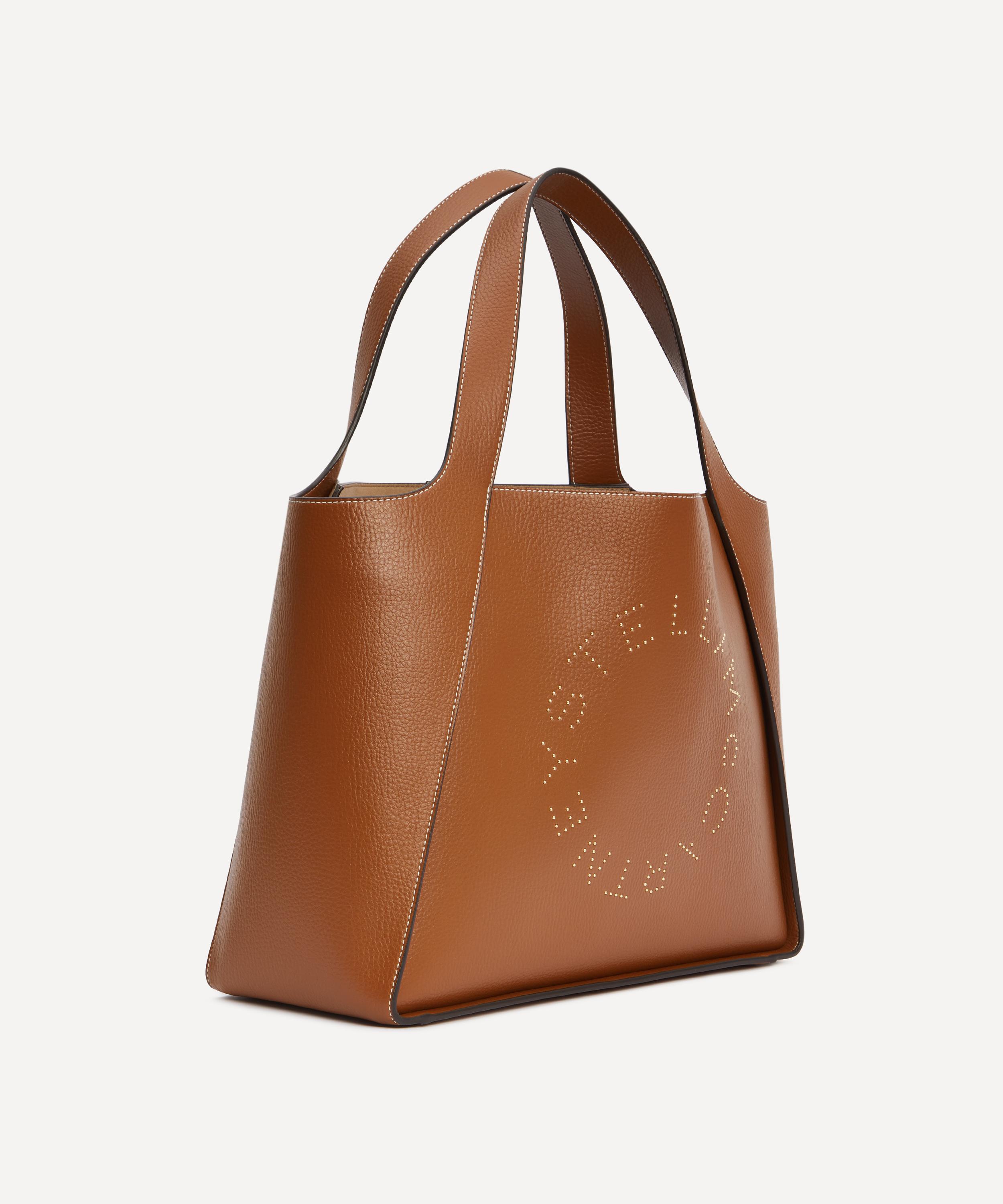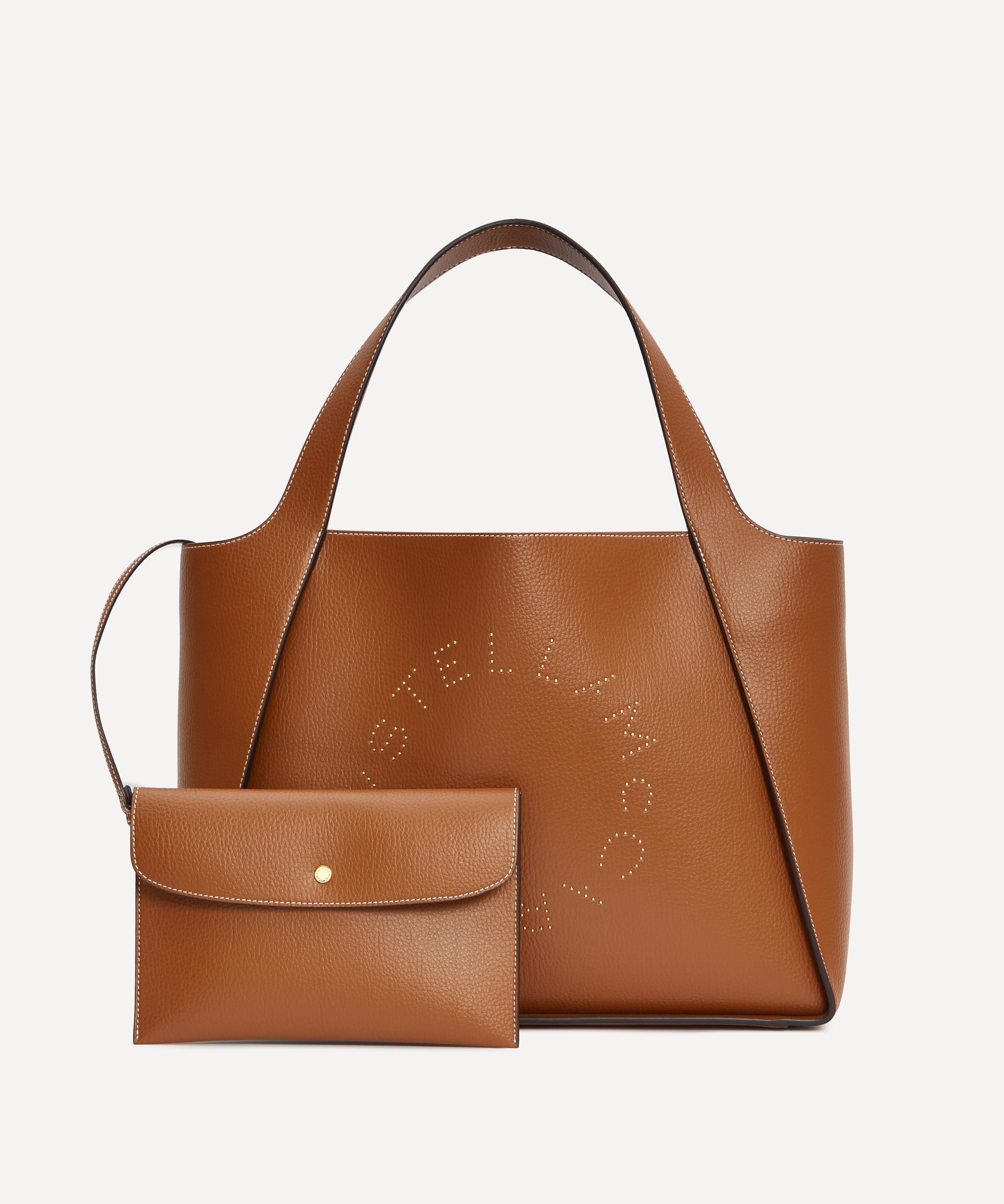 Characterised by a slouchy silhouette with a structured base and sides, this faux leather tote bag features a spacious interior with a suede-effect lining and a removable snap button pouch for small essentials. The front of the design is finished with the distinctive perforated brand logo that appears throughout the Stella Logo collection. Complete with two top handles, carry it in one hand or sling it over your shoulder for an instantly recognisable finish that’s set to become the focal point of any look.