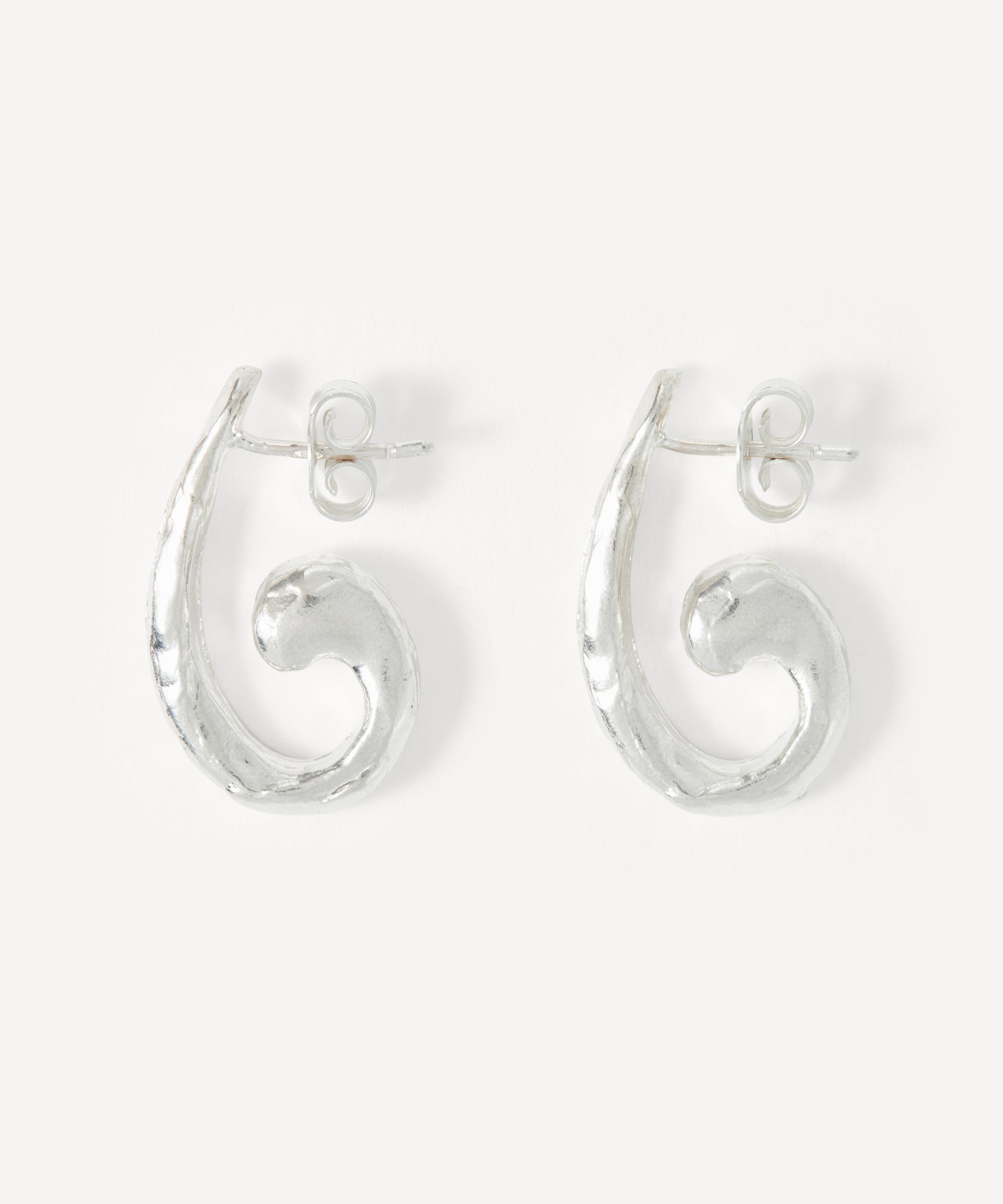 The Bass Clef stud earring is a signature design from Alighieri - the London-based jewellery brand named after the renowned Italian poet, Dante. Crafted from sterling silver, it takes the shape of a bas clef note in an organic, molten texture. Boasting a modern heirloom, it boasts an ultra-wearable statement piece that can be incorporated into a stack, or get two for a matching pair.