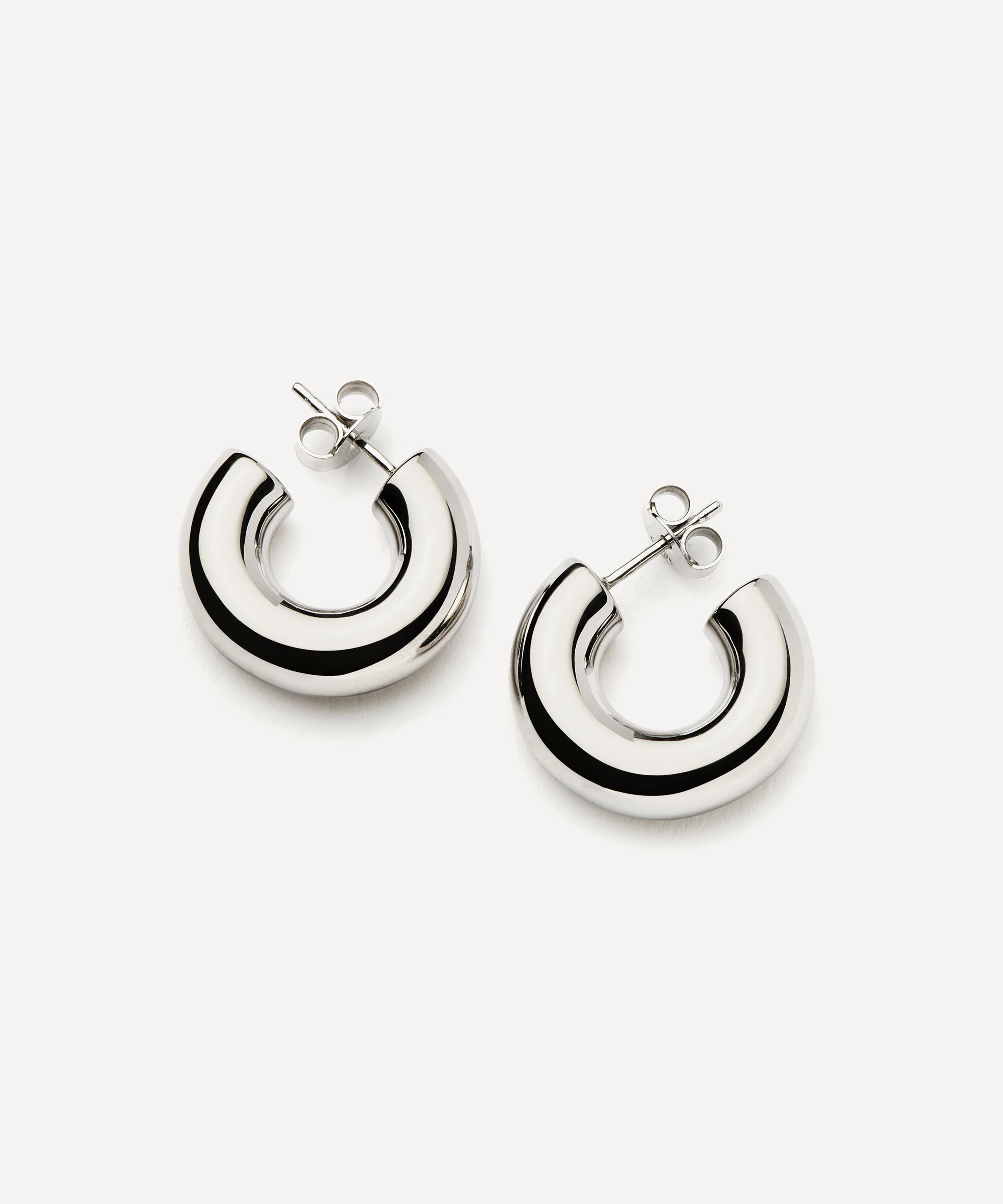 Crafted from rhodium-plated sterling silver, each hoop is characterised by a chunky, tubular silhouette in a polished finish. Complete with a classic post and butterfly backing, they are perfect for mixing and matching with the medium and large Chubby Hoop styles for a graduating stack.