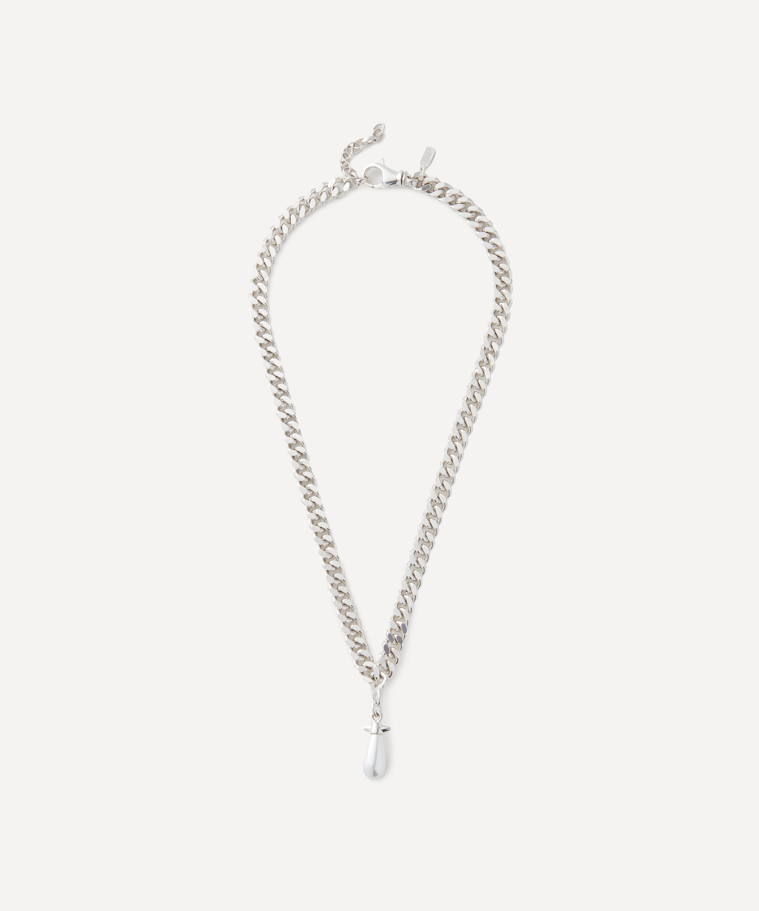 Breathe new life into your jewellery box with the Chunky Chain Drop pearl necklace from Maria Nilsdotter. Exuding an endearing beauty with gothic undertones, it features a chunky curb chain in sterling silver and glass pearl drop. Perfect for both occasion wear and elevated everyday looks, style it solo or as part of a stack.