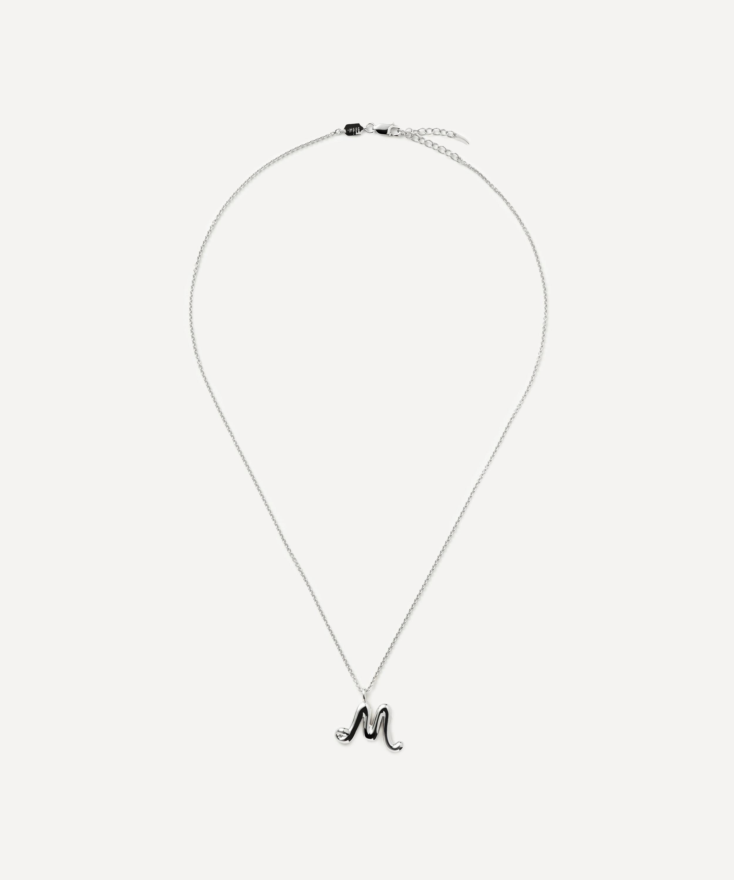 Put a unique spin on your jewellery curation with this initial pendant necklace from Missoma. Crafted from rhodium-plated sterling silver, it features a delicate trace chain adorned with a molten style ‘M’ initial pendant in a bespoke hand-drawn font. Elegant and versatile, it makes for a thoughtful personalised gift for someone special or yourself – perfect for both layering and styling solo.