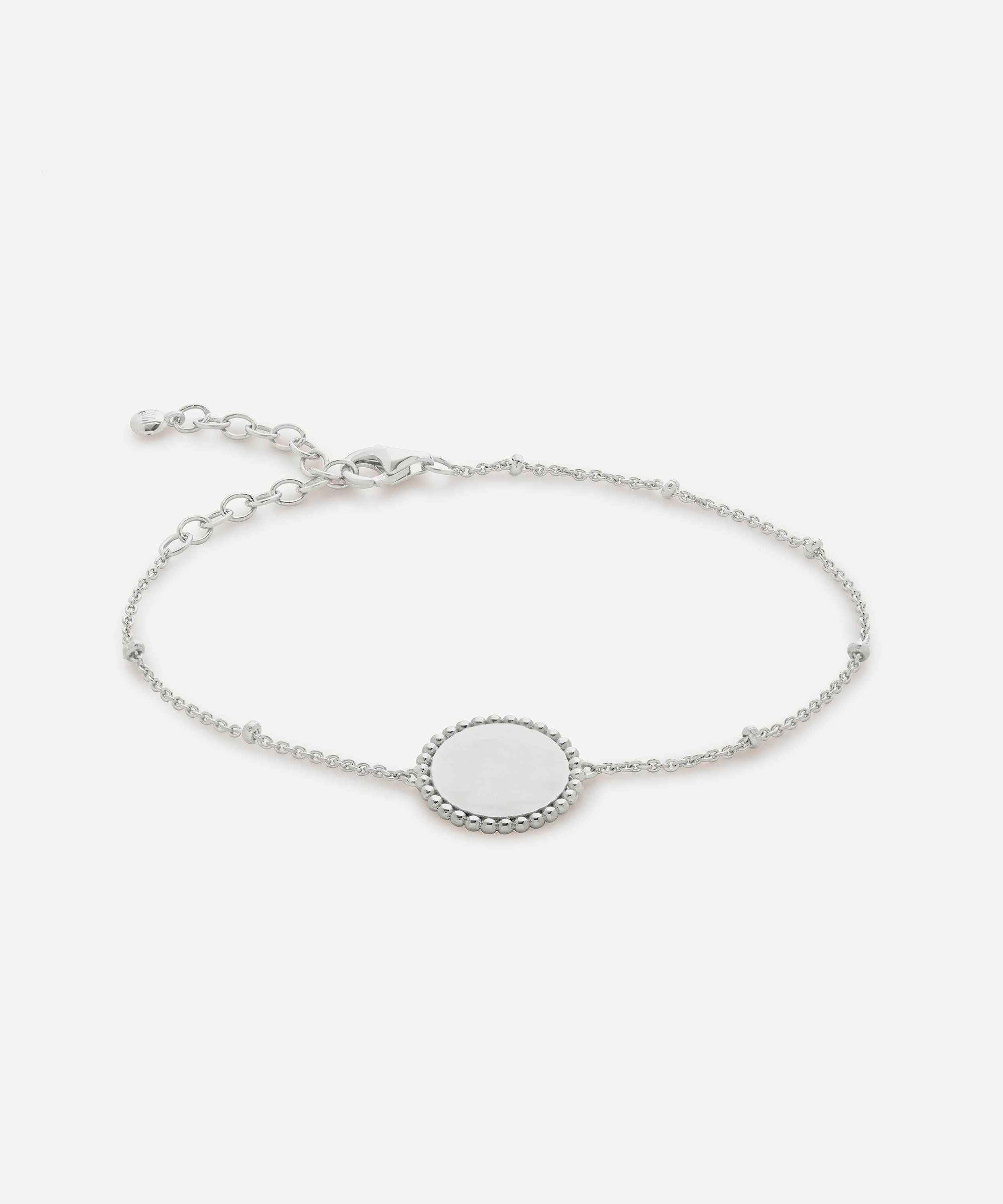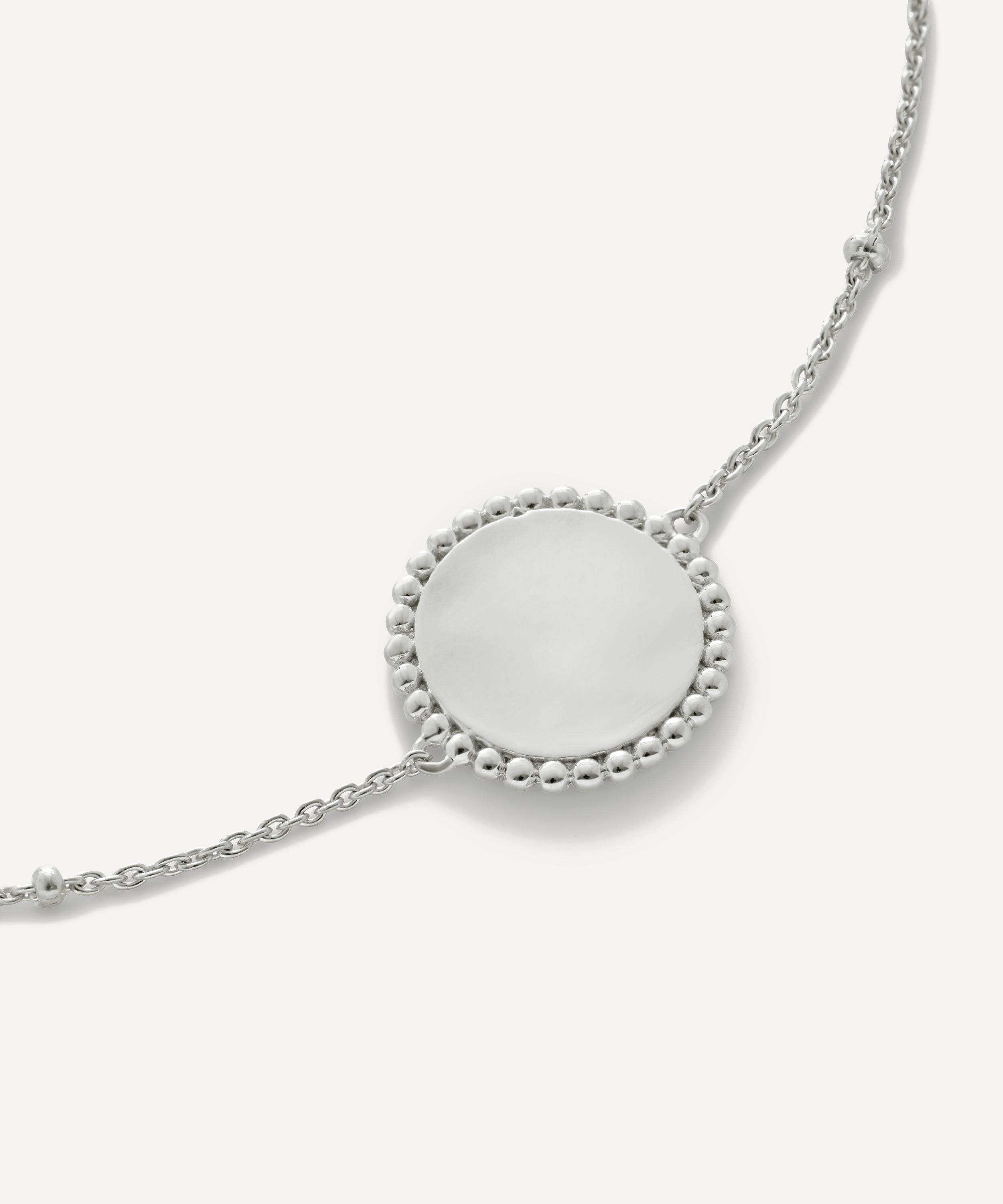 Crafted from sterling silver, this bracelet features a delicate chain and disc pendant with hammered, beaded detailing. Style yours with several bracelets and the matching ring.