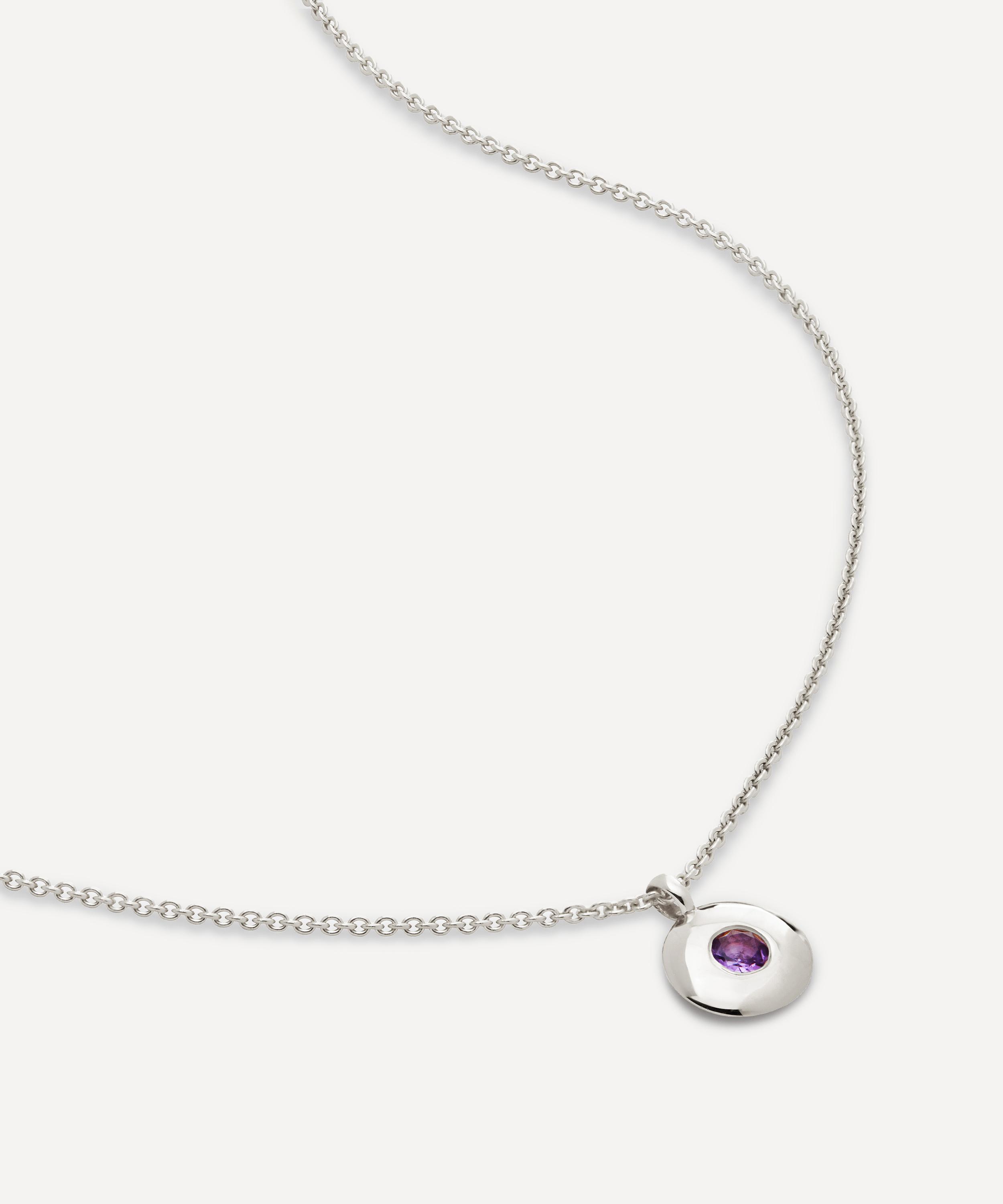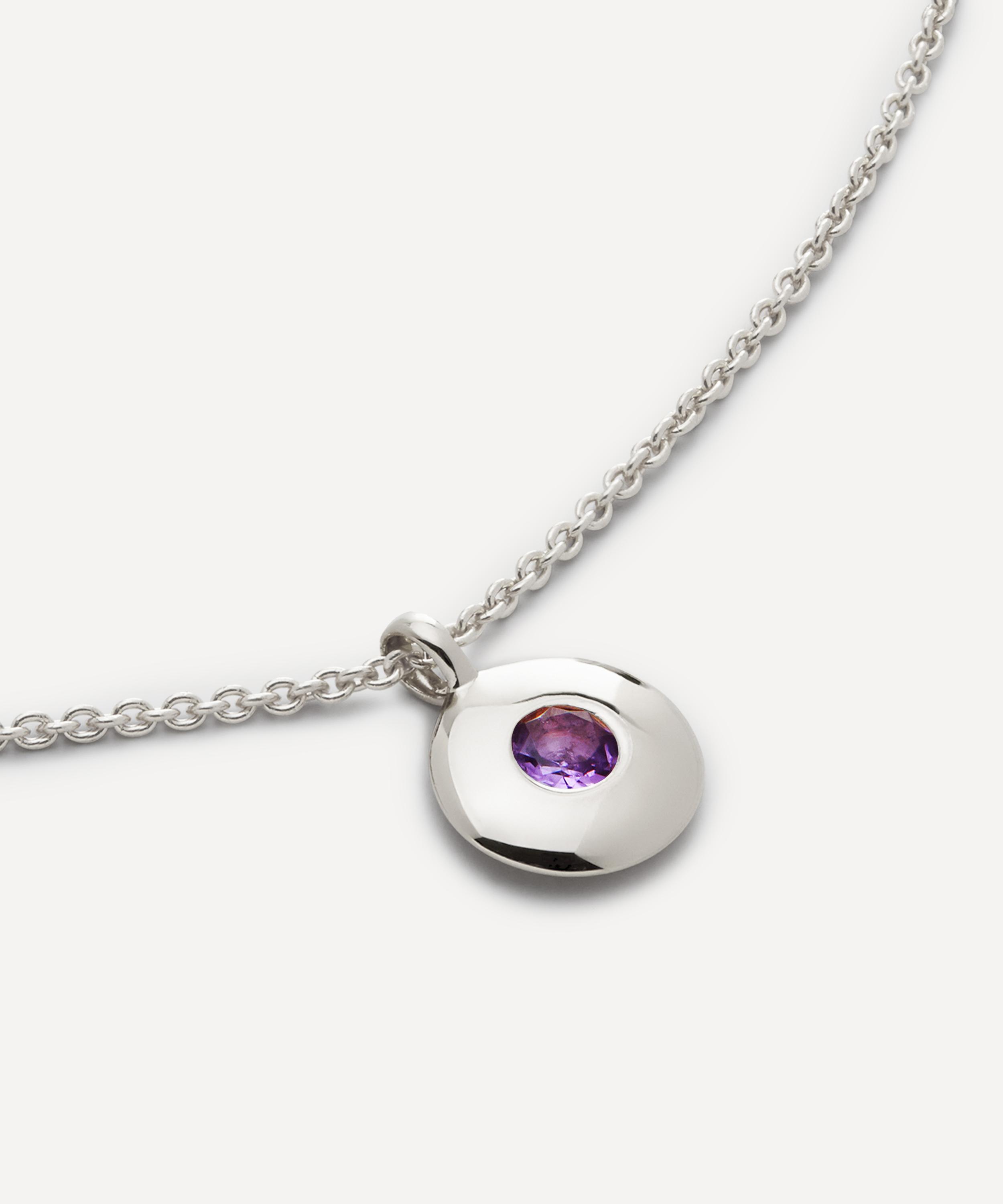 Crafted from sterling silver, it features a fine link chain and polished pebble pendant, adorned with a round cut amethyst – perfect for anyone born in the month of February. Boasting a fine keepsake to treasure for years to come, treat yourself or make it a wonderfully thoughtful and personalised gift for someone special.