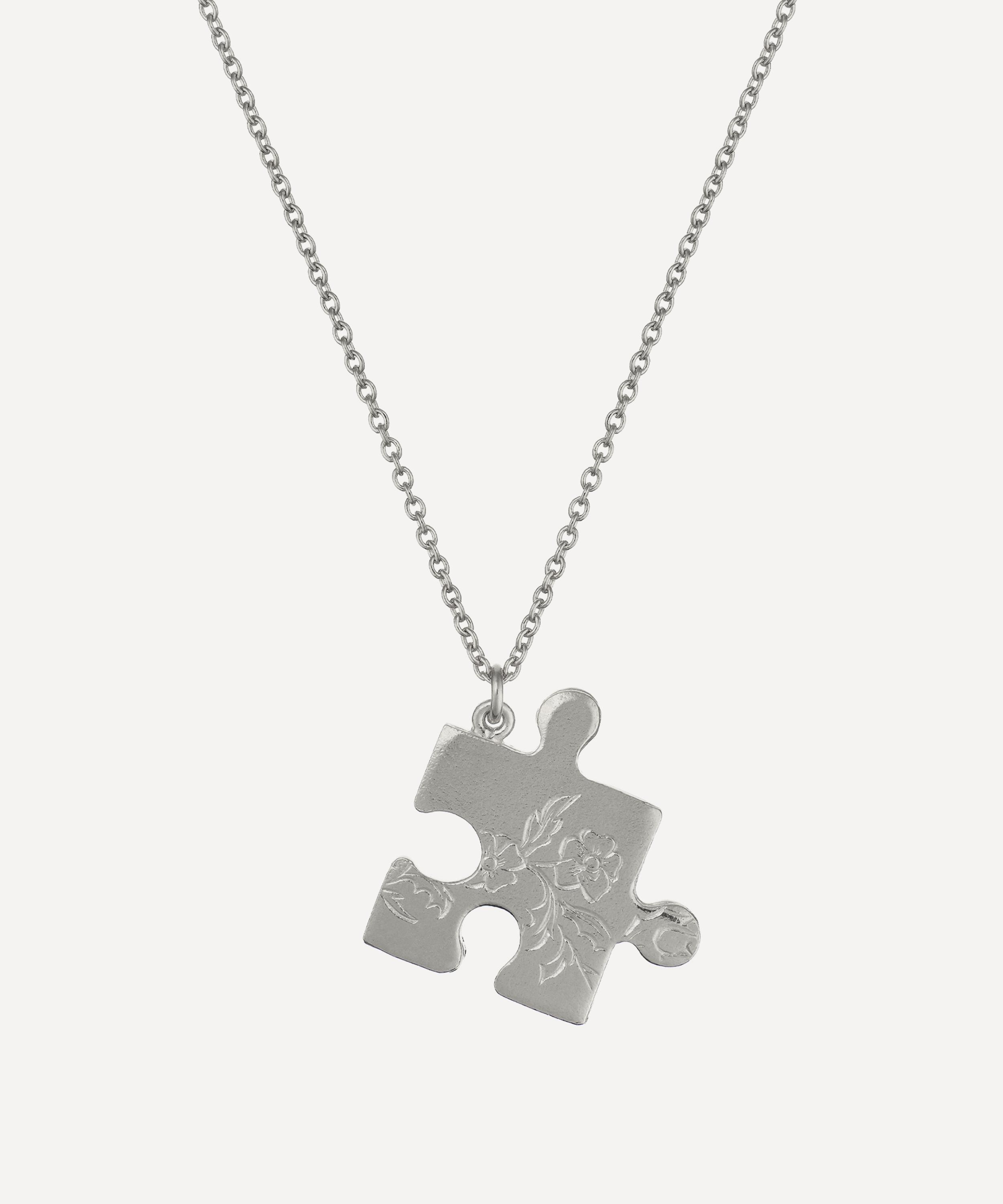 Full of character and sweet symbolism, this pendant necklace from Alex Monroe will have you stand out from the crowd. Crafted from sterling silver, it features a puzzle piece decorated with an engraved floral motif. Complete with a cable chain, it makes for a beautiful addition to any accessories rotation, perfect for anyone looking for something unique to express their personality.