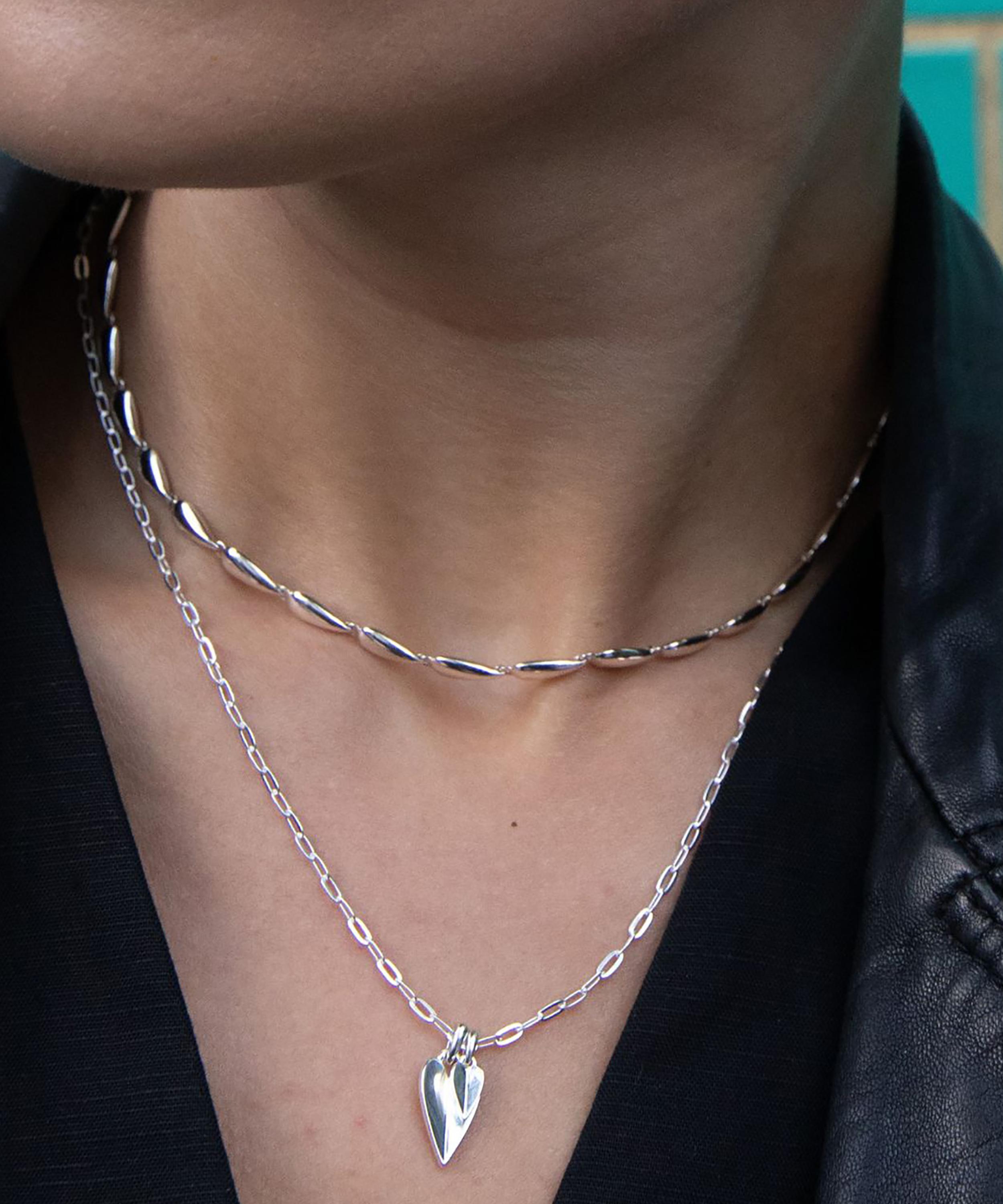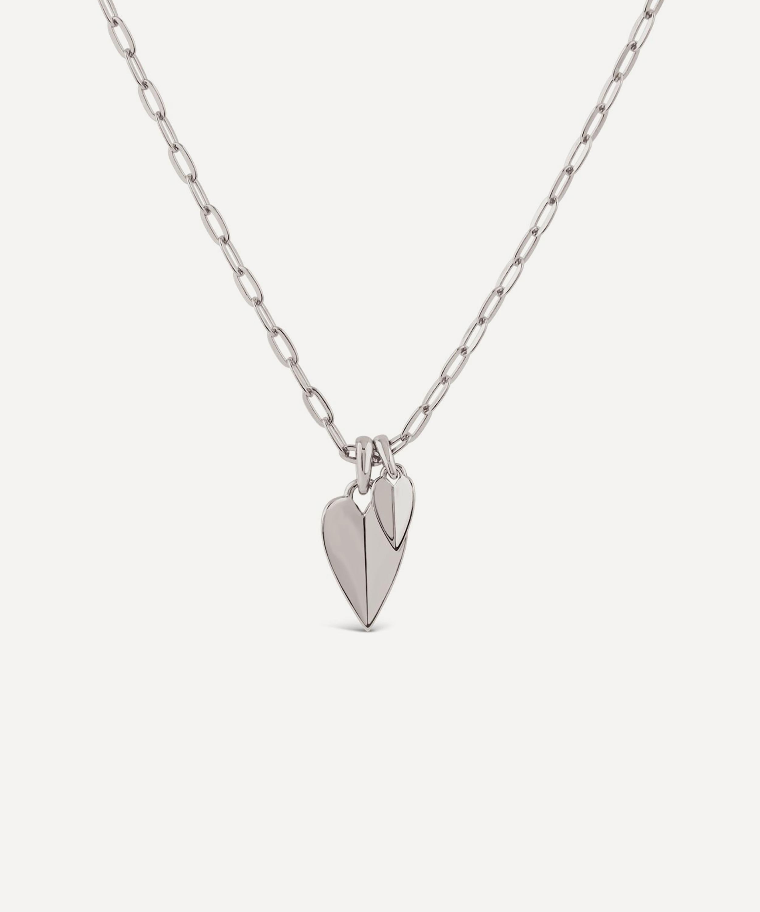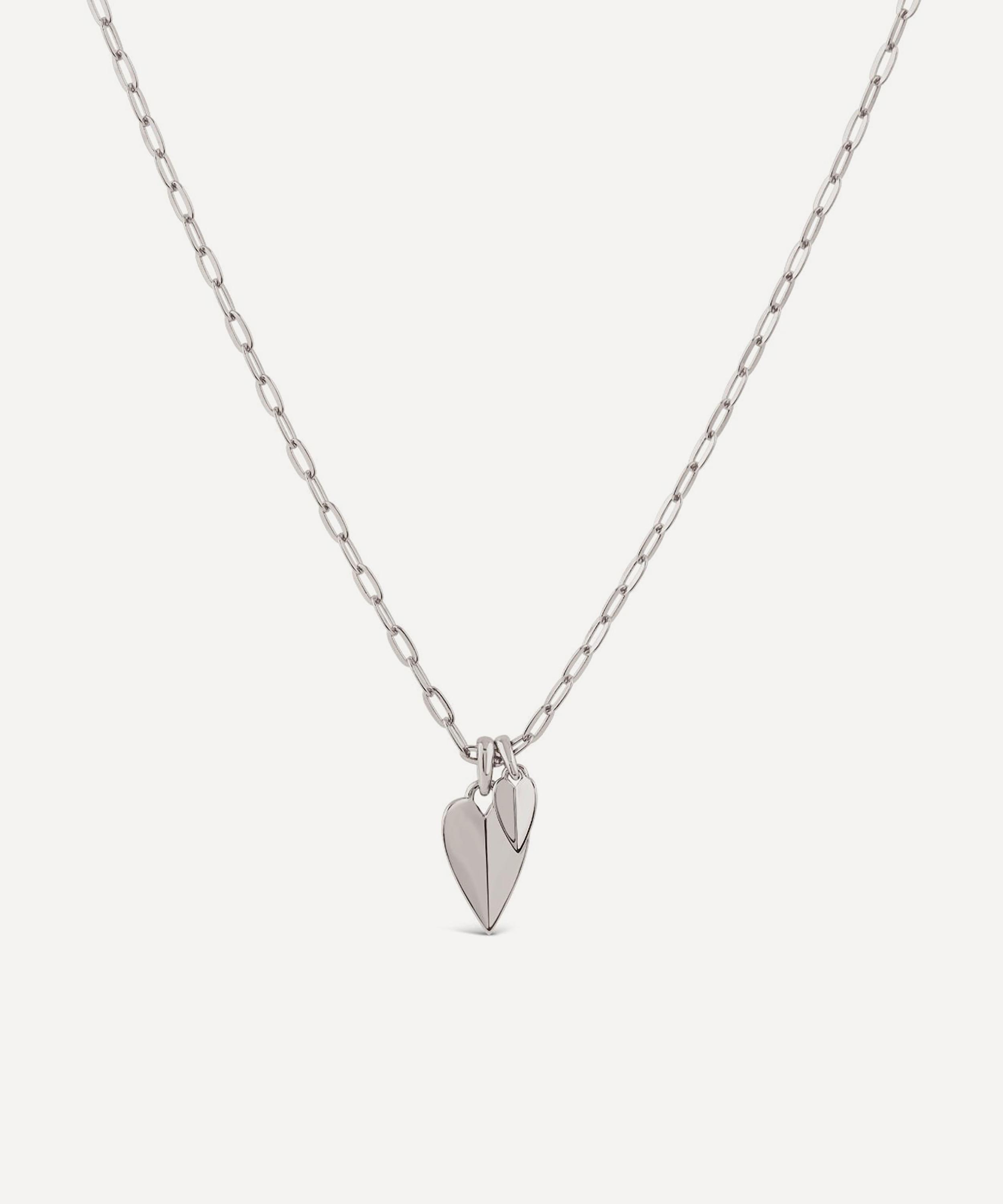 Crafted from sterling silver, it combines sophisticated luxury with playful design, featuring a hammered trace chain adorned with two folded heart pendants. Made to be treasured and cherished for generations to come, it’s ideal for both casual and formal looks – try pairing it with other pieces from the collection for a coordinated finish.