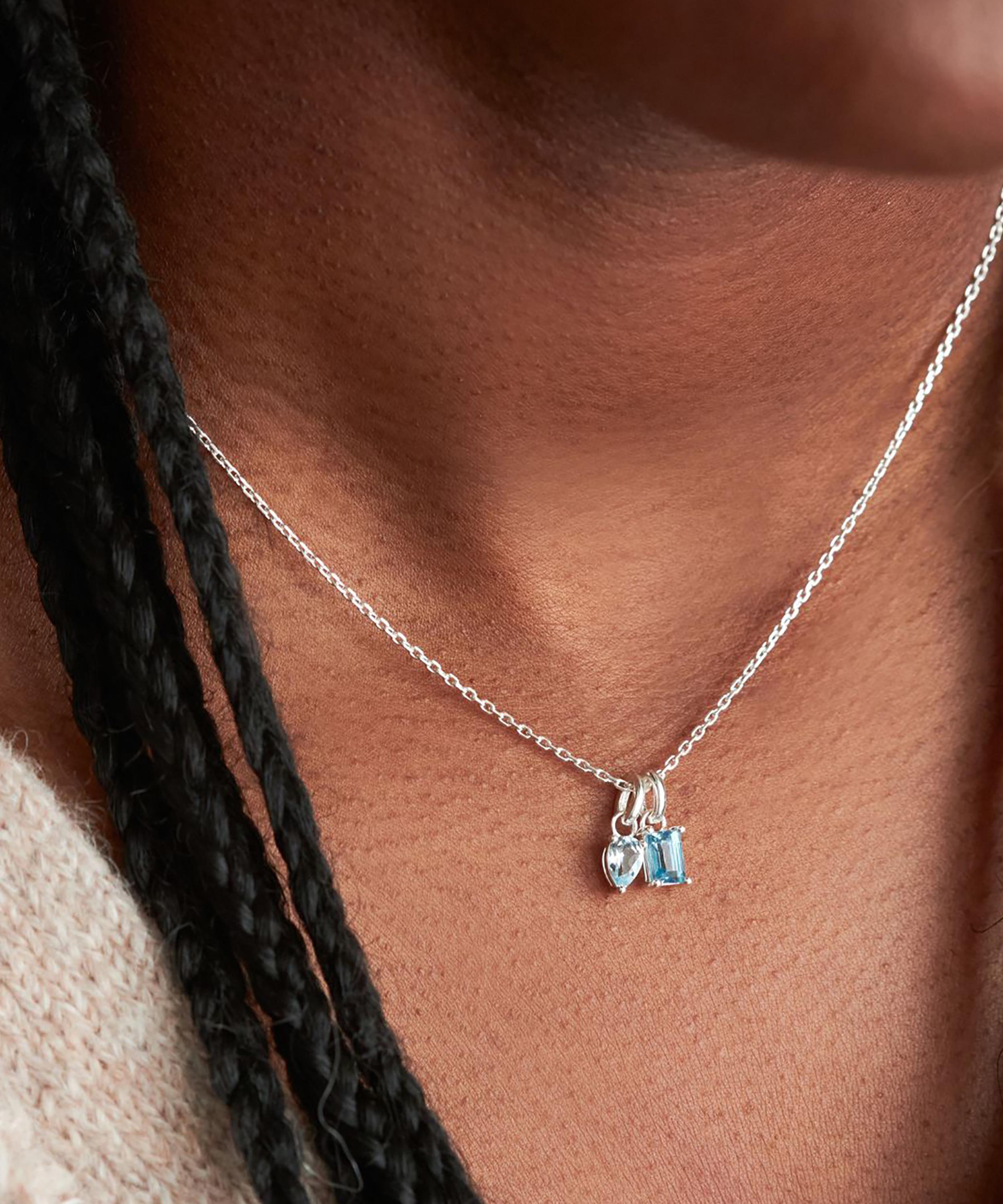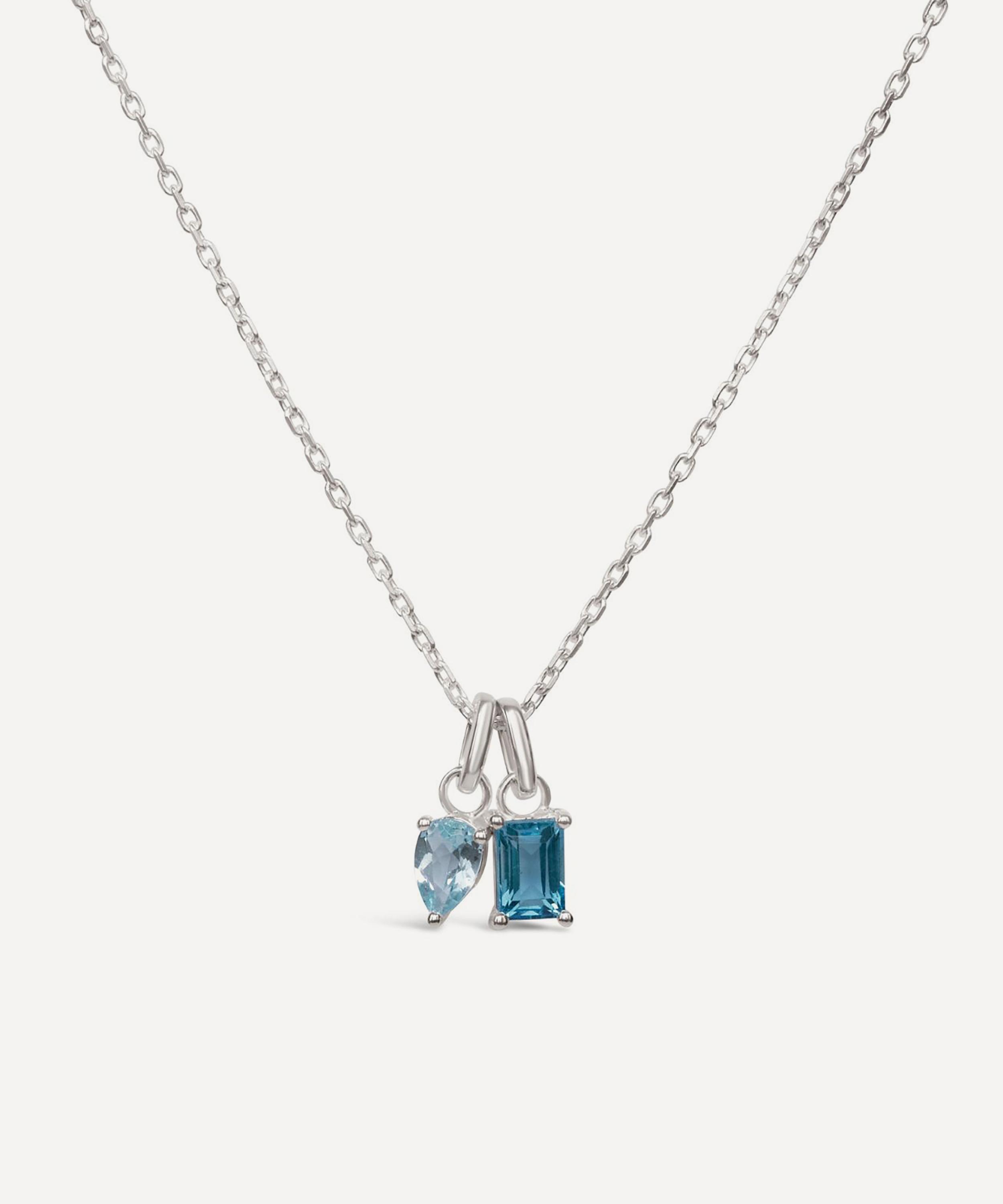 Infuse your look with the colourful decadence of the Duo pendant necklace from Dinny Hall’s Gem-Set collection – a modern approach to Art Deco glamour. Crafted from sterling silver, it centres around a contrasting duo of gemstones, composed of an emerald cut Swiss blue topaz and a pear cut Sky blue topaz, juxtaposed by a diamond cut trace chain. Style as a beautiful solo piece, or layer with other necklaces to create a unique stack.