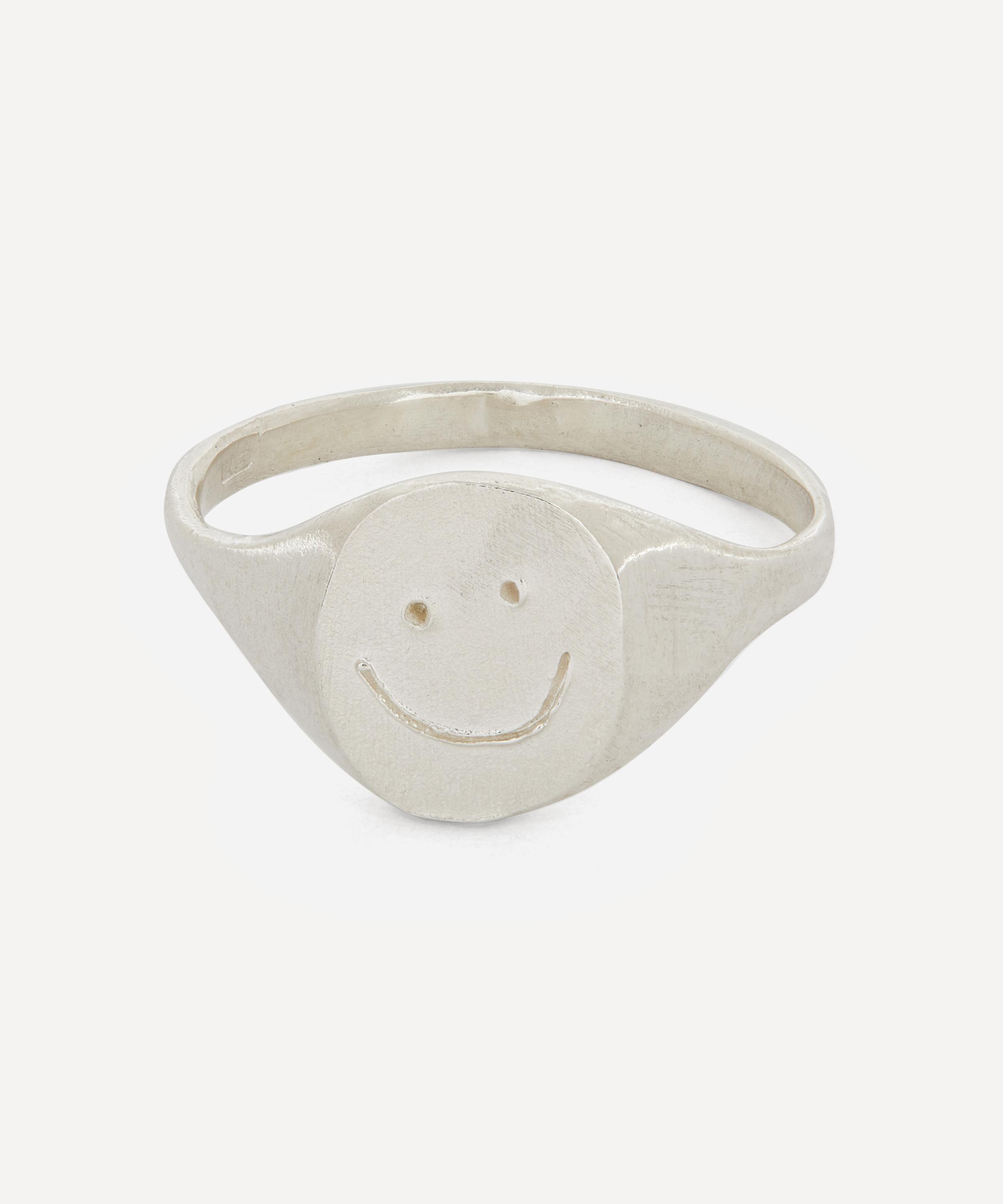 Handmade in Melbourne from sterling silver, this small signet ring features a happy face graphic, as well as logo and hallmarking to the inner band. The designer’s experimental design process means every piece is unique - often varying in colour, shape and texture for an organic finish that's perfect for injecting a burst of individuality into your everyday jewellery line-up.