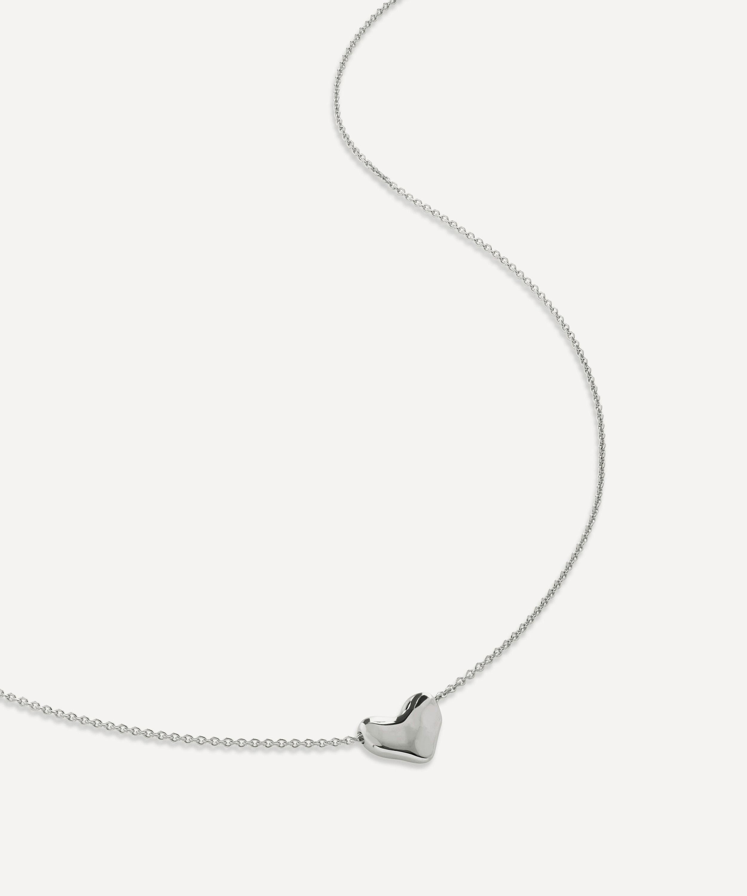 Cast from a heart-shaped pebble for an organic silhouette, this heart necklace from Monica Vinader is handcrafted from sterling silver.